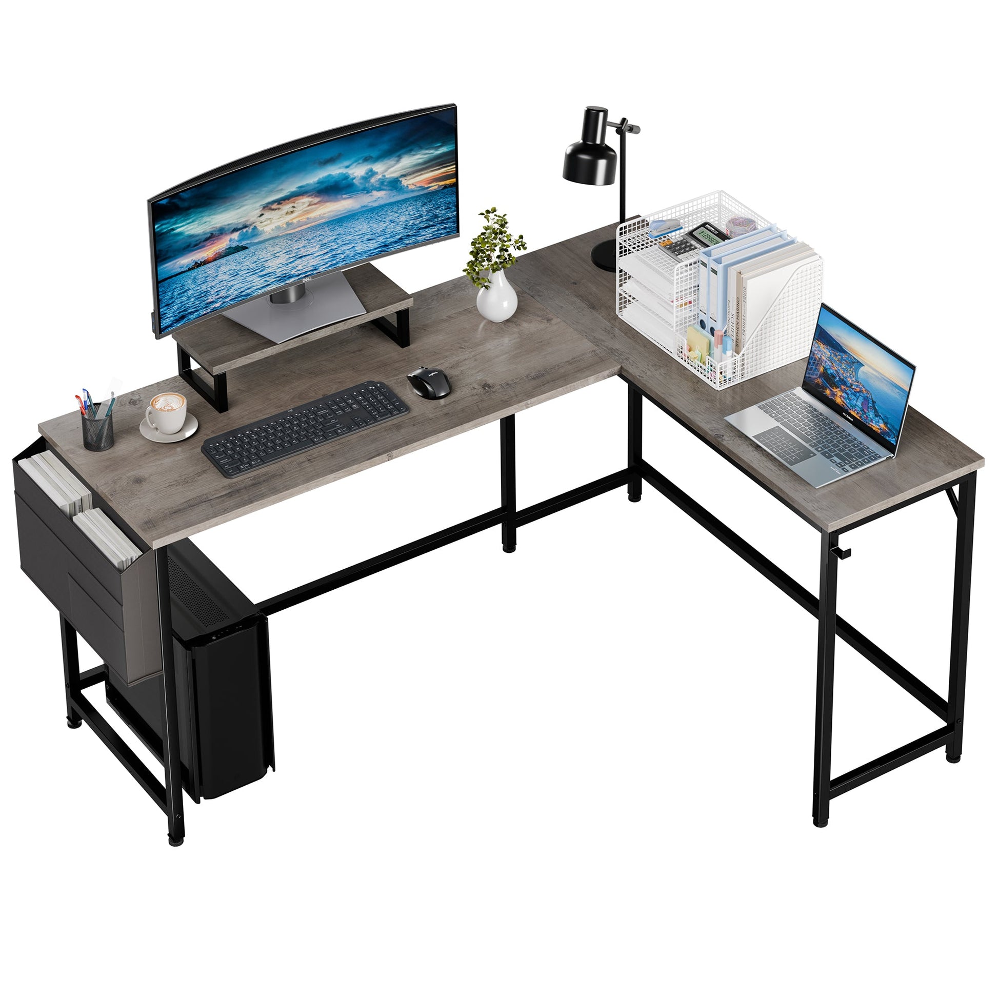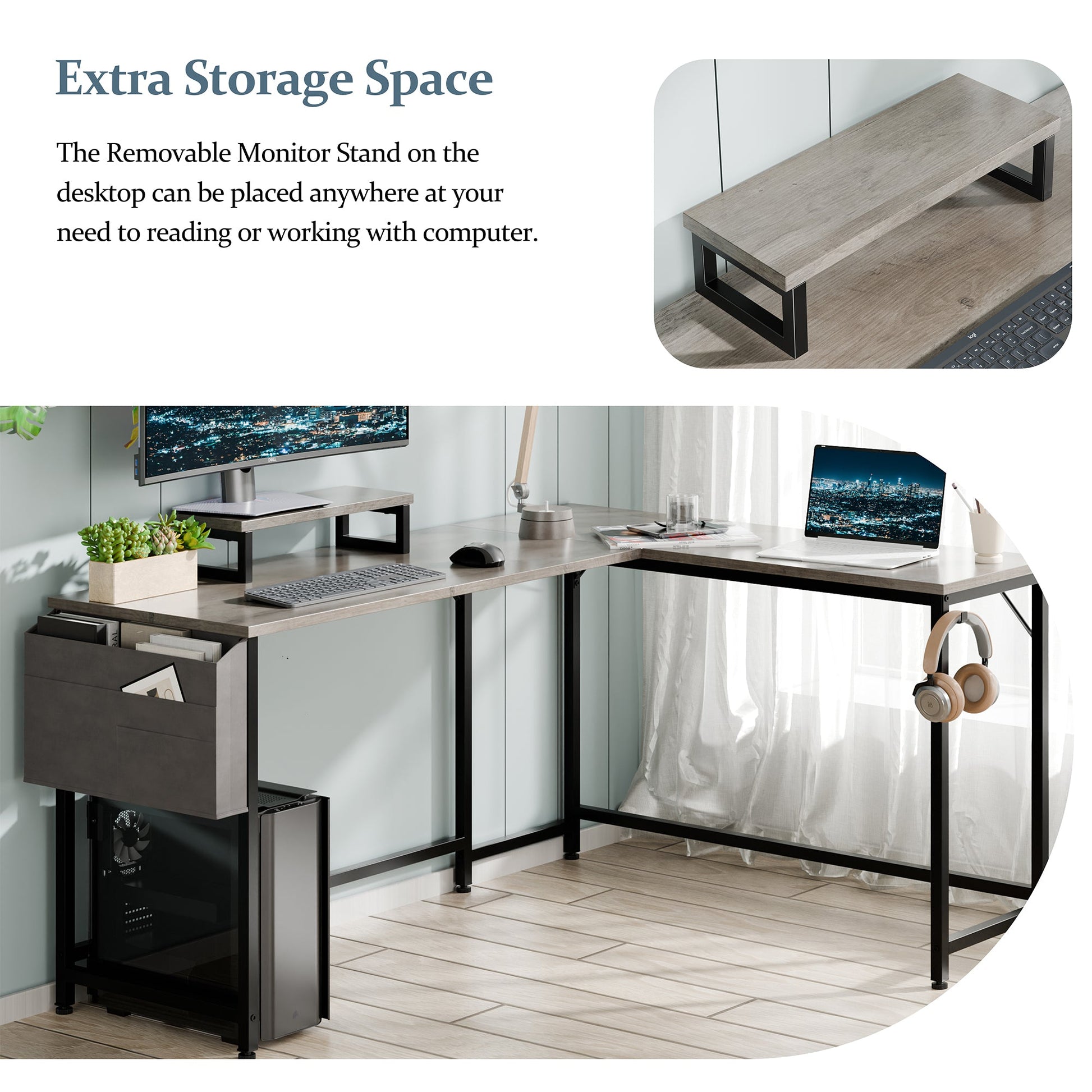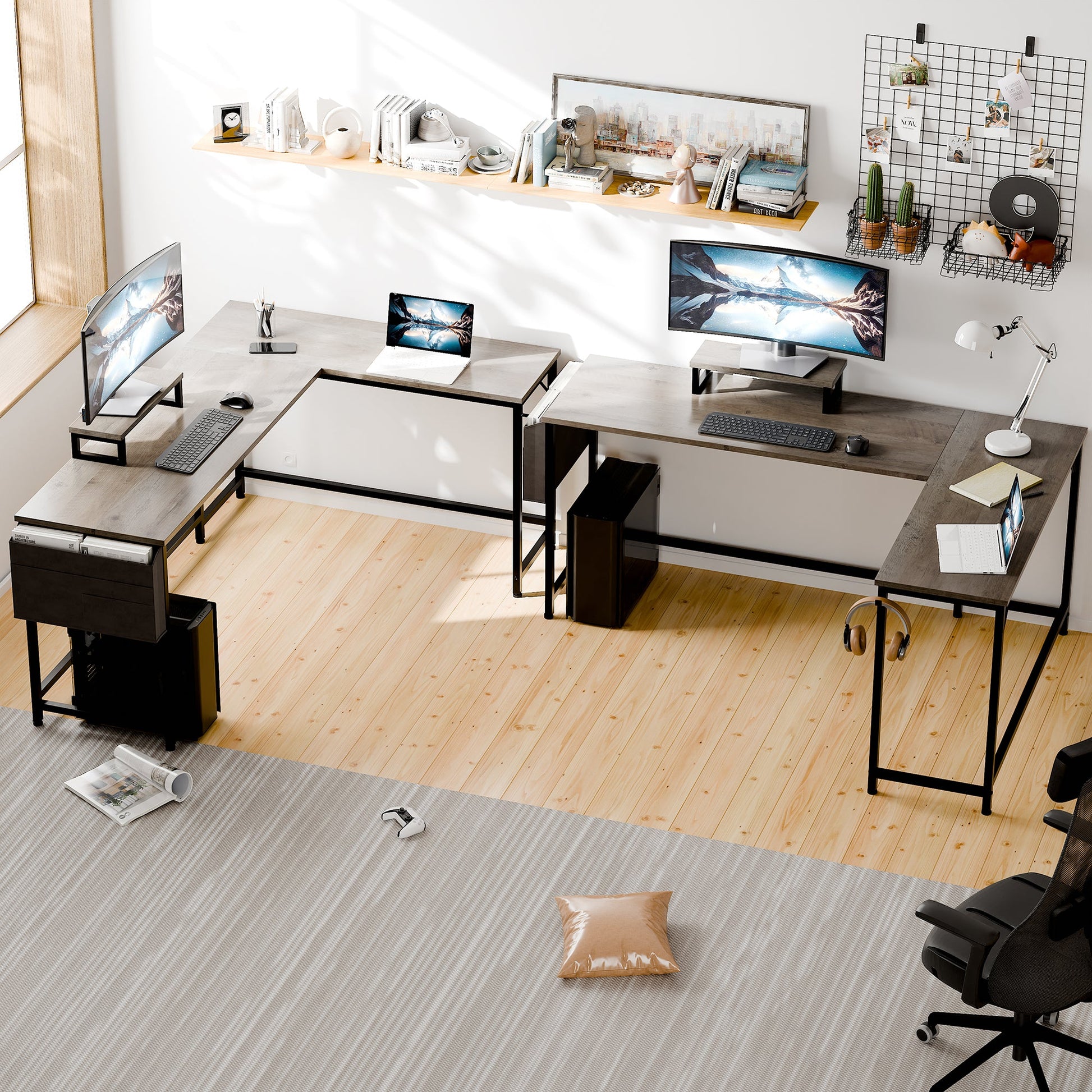 Our computer desks offer the best of both worlds. It can be transformed into an L-shaped corner desk for tight spaces, or a spacious 11-person long desk for larger rooms. With ample legroom and flexible storage shelves, this workstation is perfect for your home office. Enjoy added benefits like a detachable monitor stand, storage pockets, and hooks for organization. This home desk is constructed with a sturdy steel frame and a thick top for durability and style. Easy assembly and excellent support.