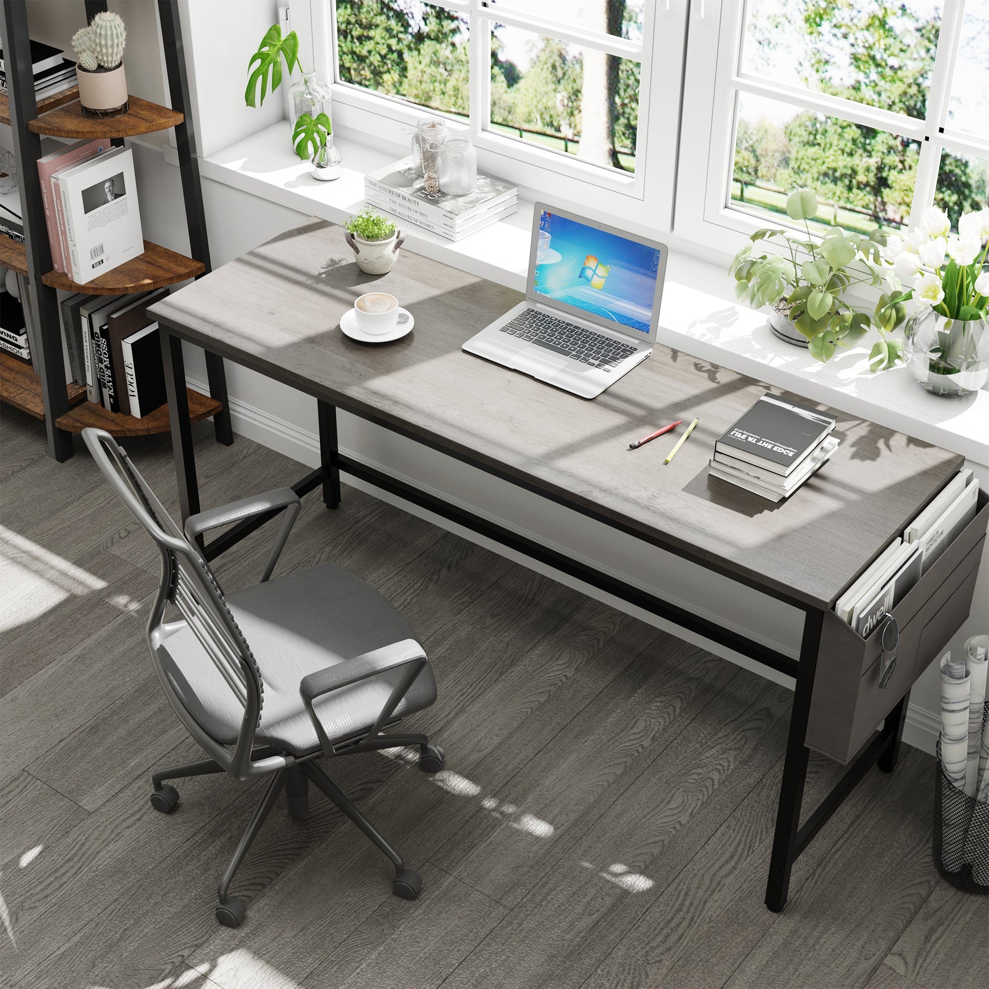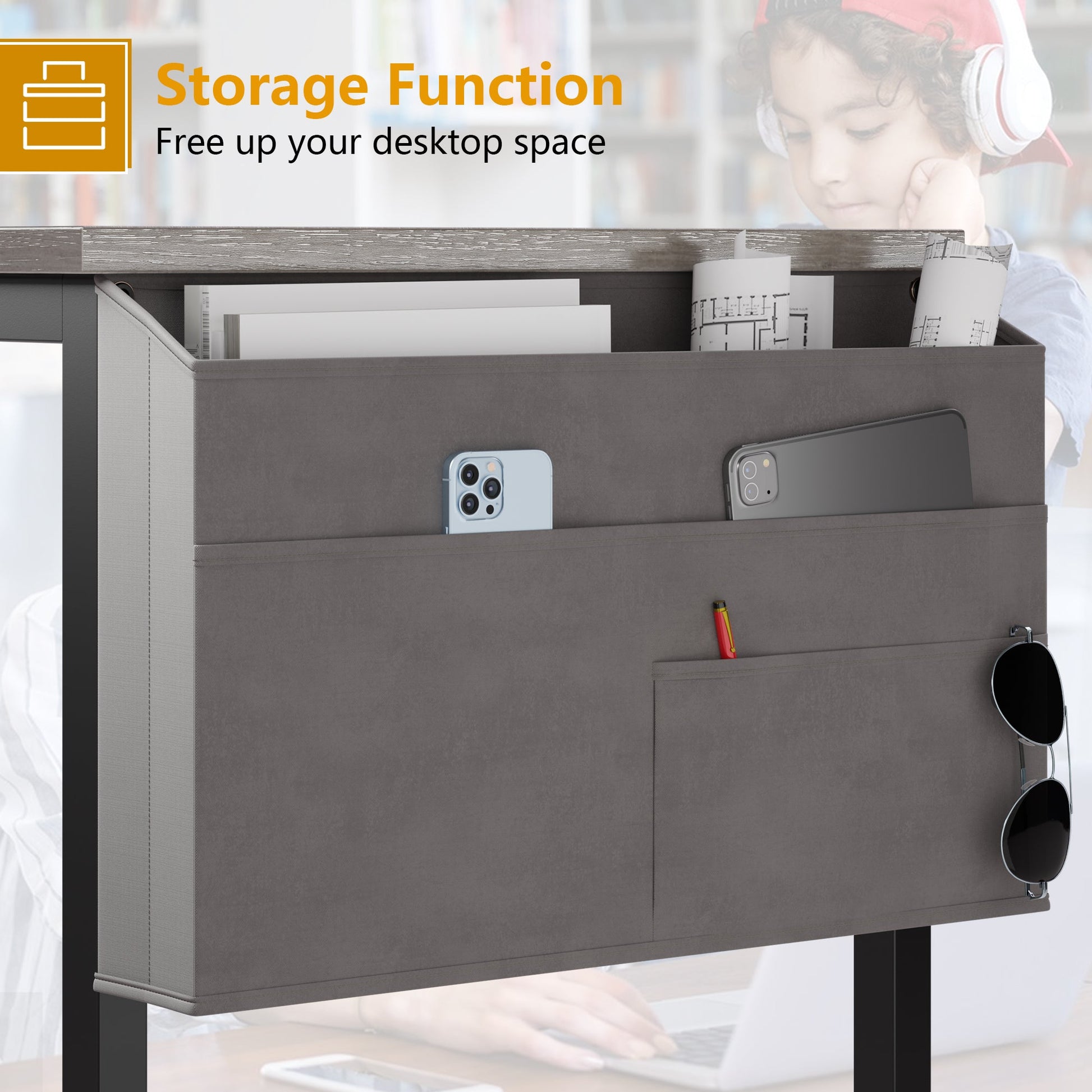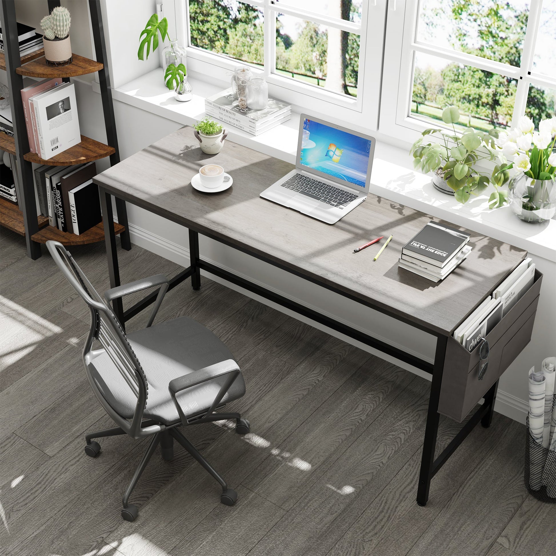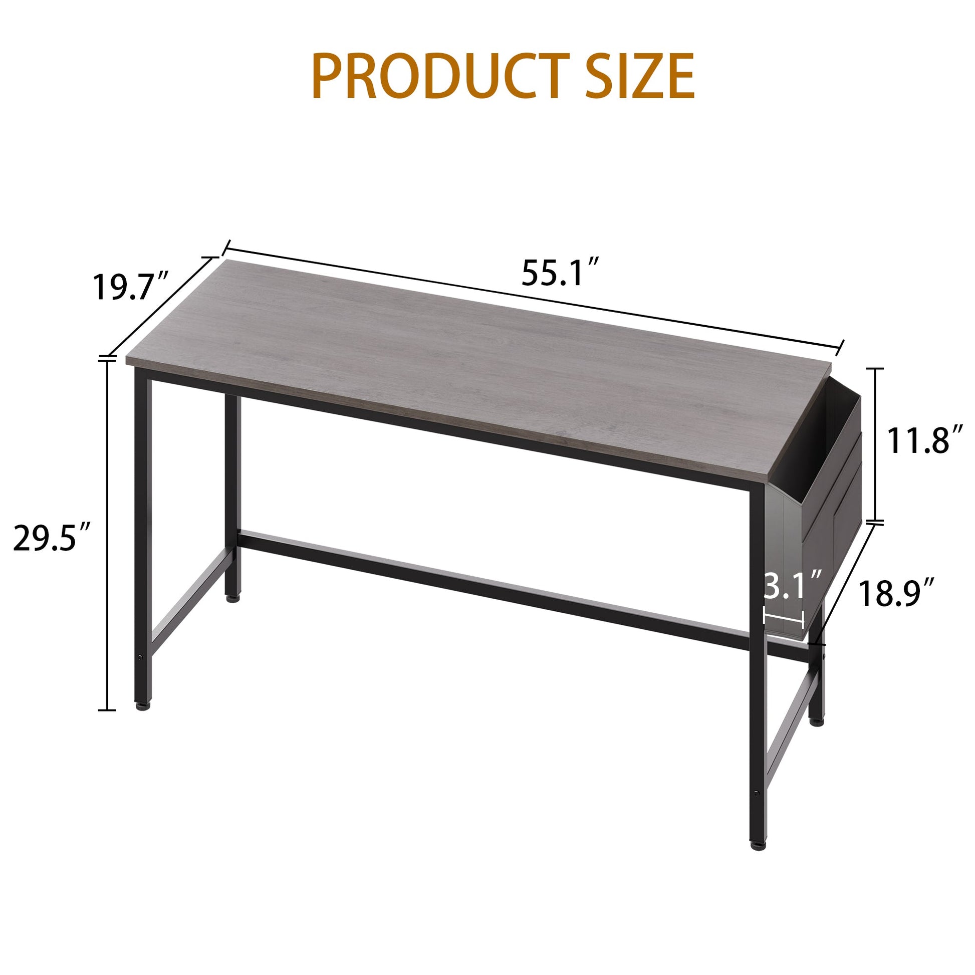 Walsunny 55 inch Home Office Desk with Storage Bag, Study Workstation Modern Simple Design, Student Writing Desk, Office Working Desk, Gray