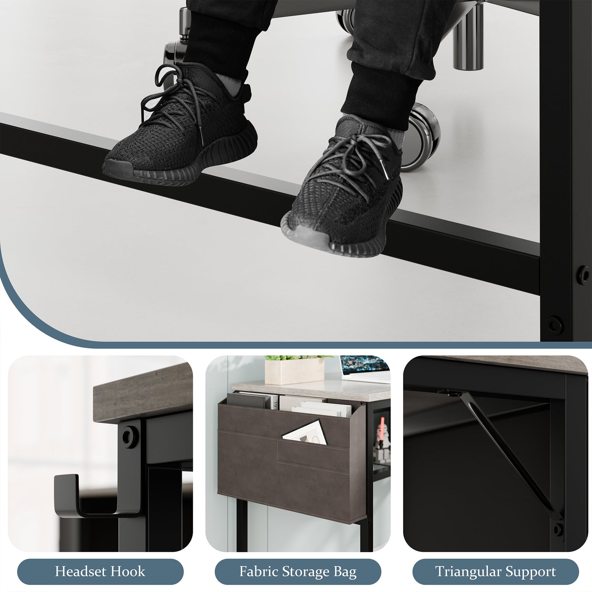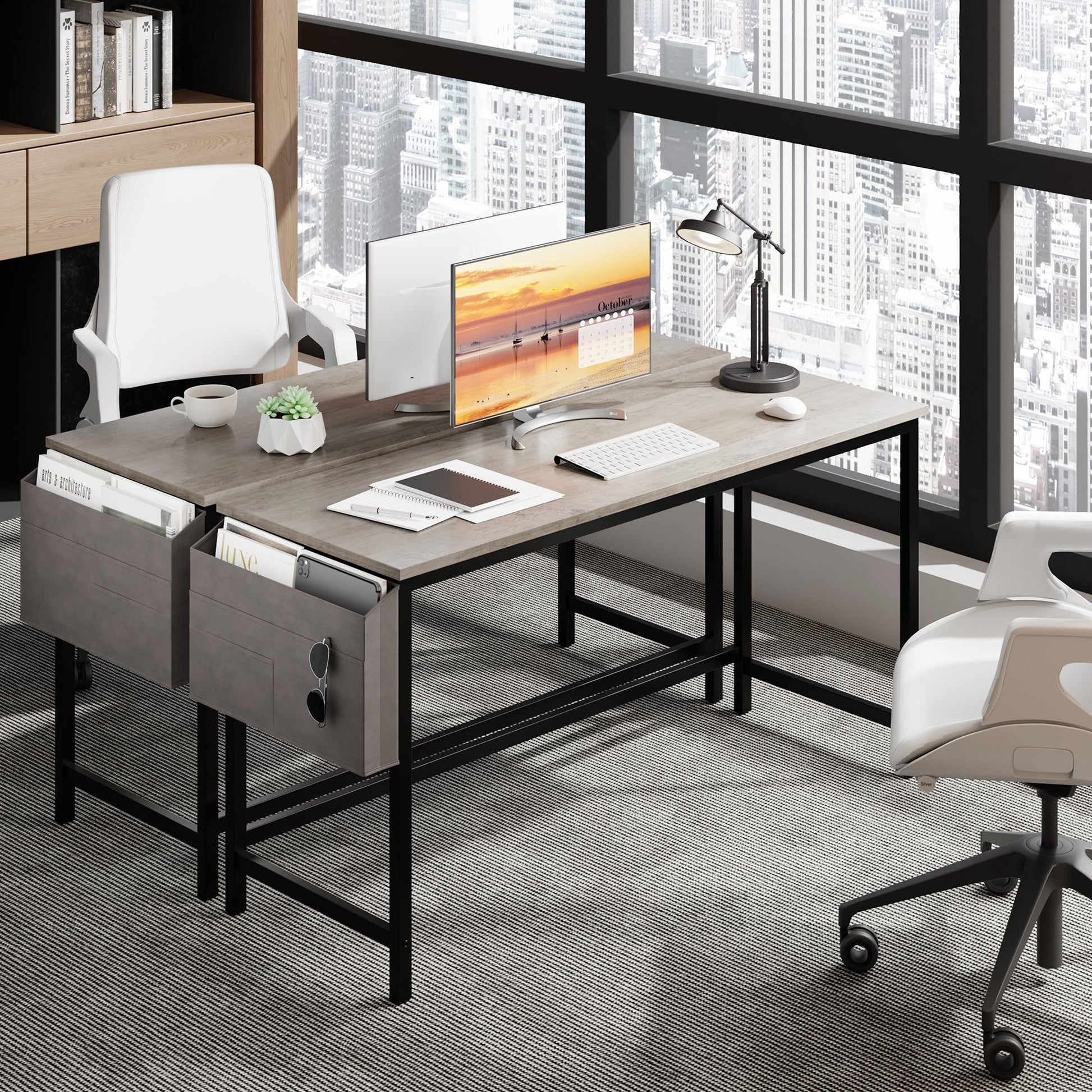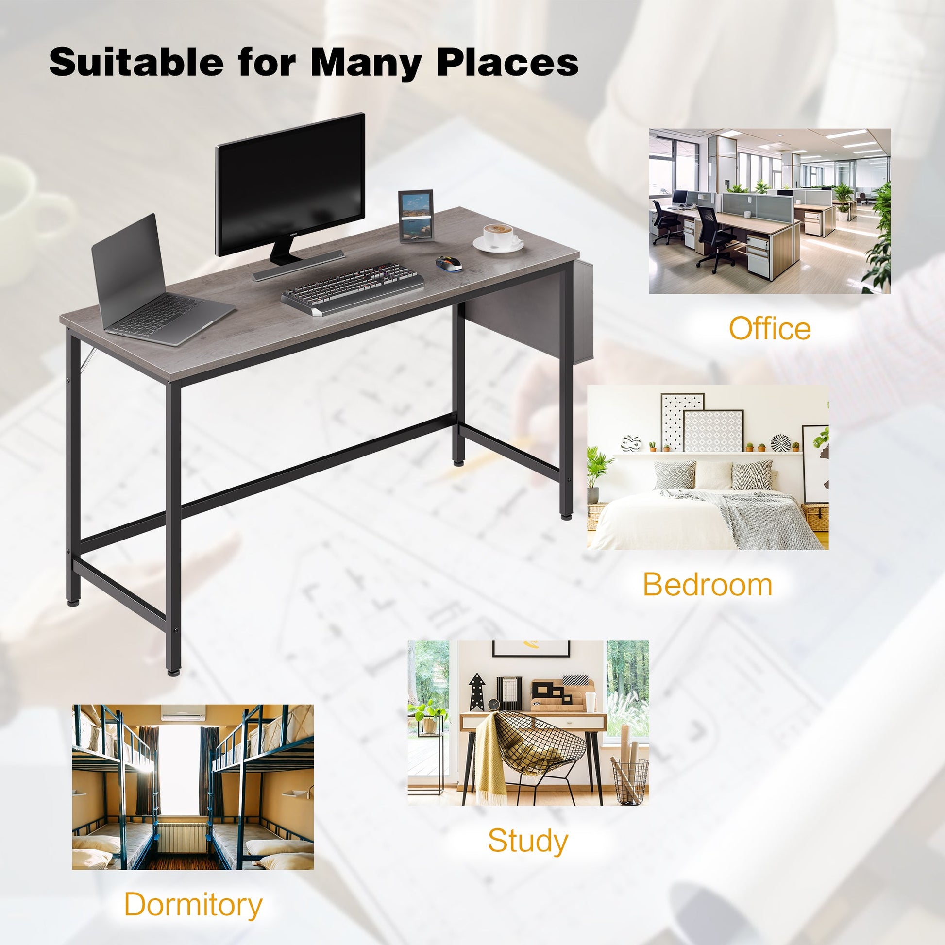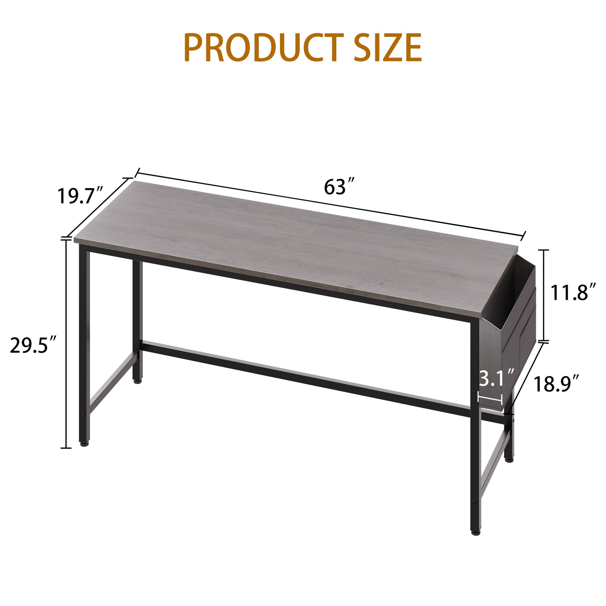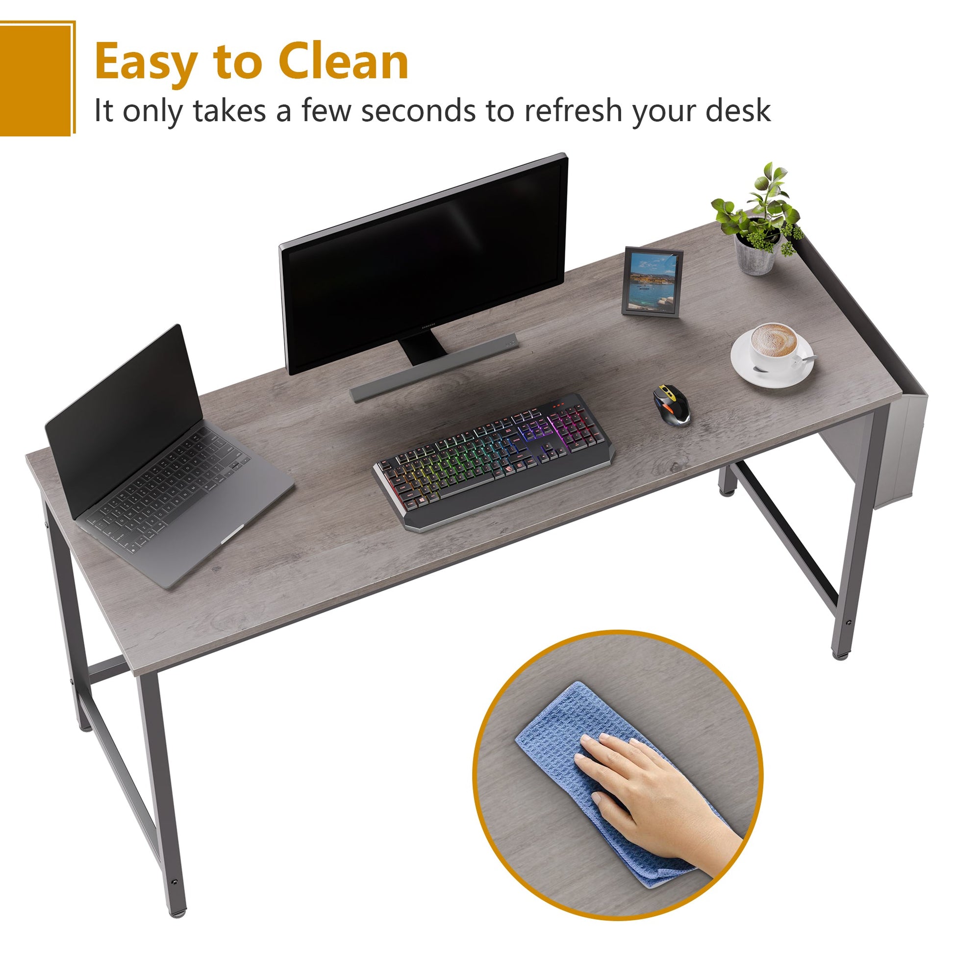 Walsunny 55 inch Home Office Desk with Storage Bag, Study Workstation Modern Simple Design, Student Writing Desk, Office Working Desk, Gray