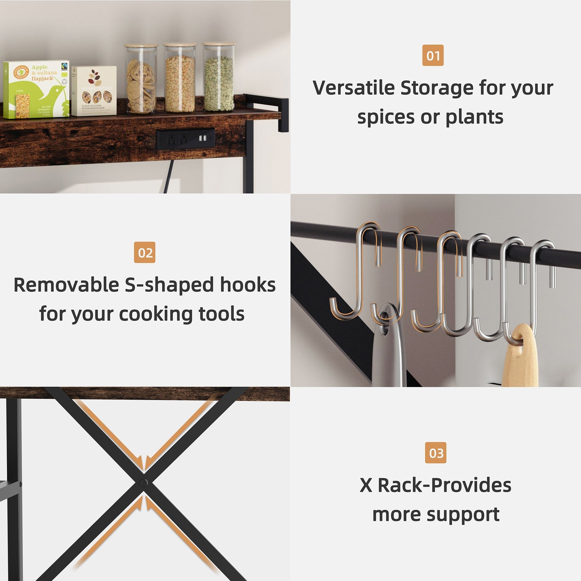 Walsunny Kitchen Bakers Rack with Power Outlet, Coffee Bar Table 4 Tiers(Clearance)