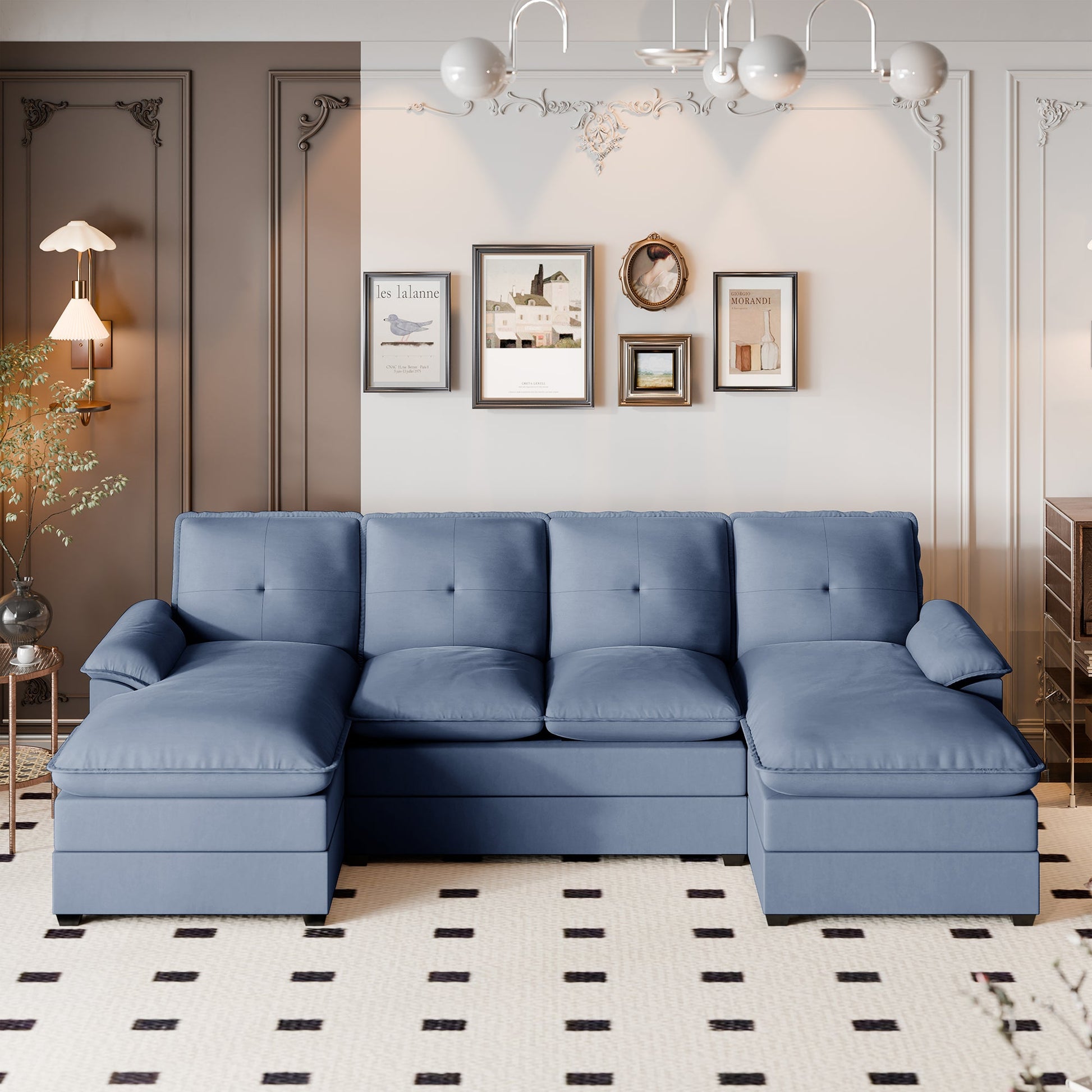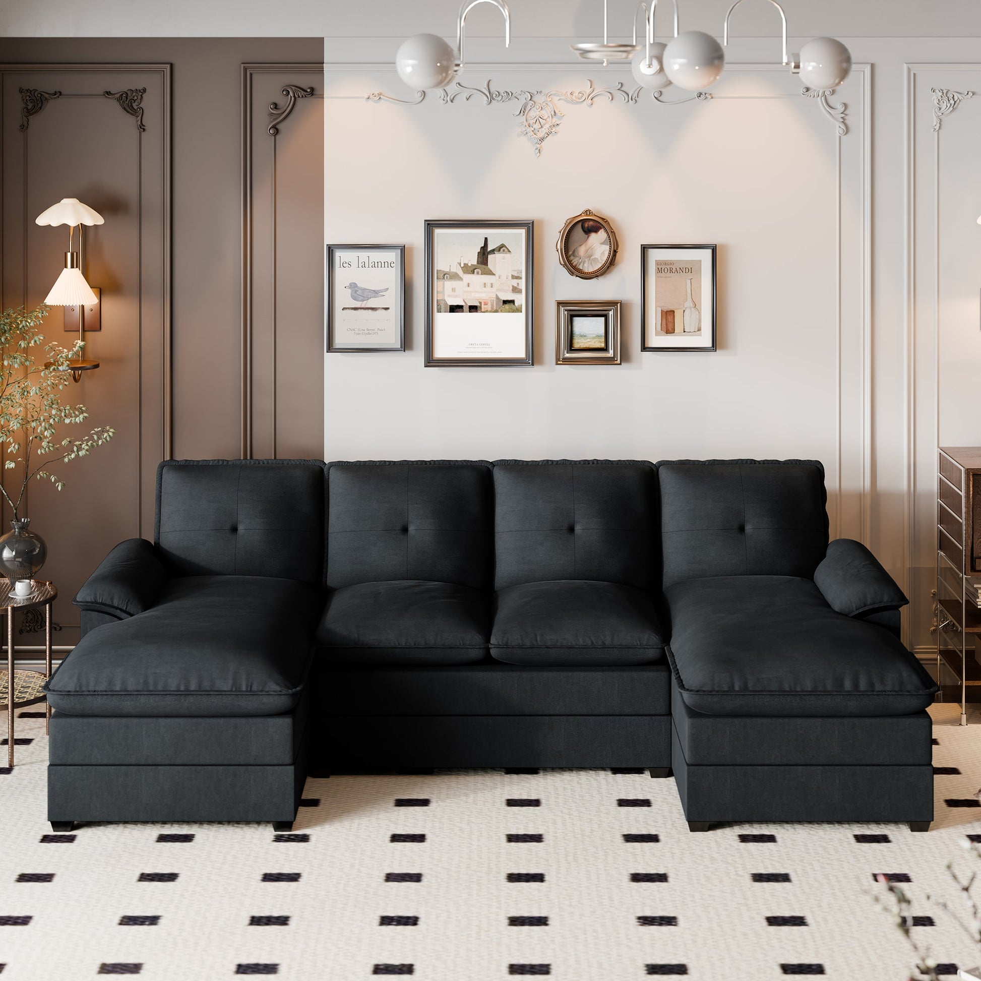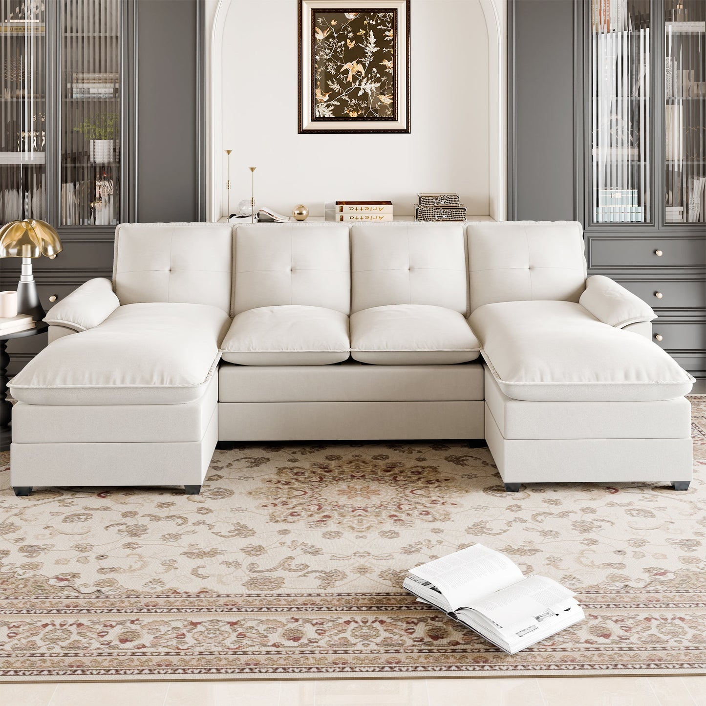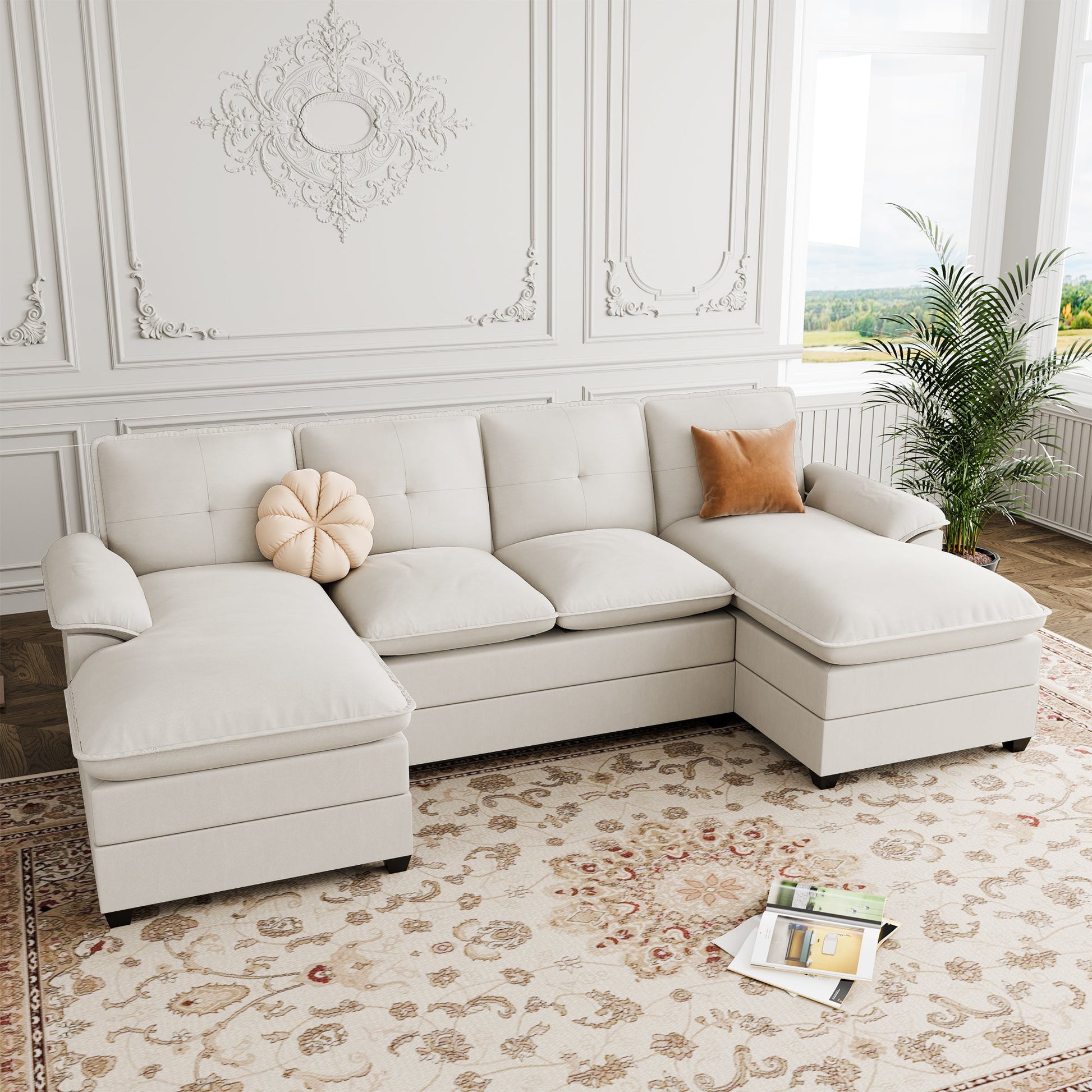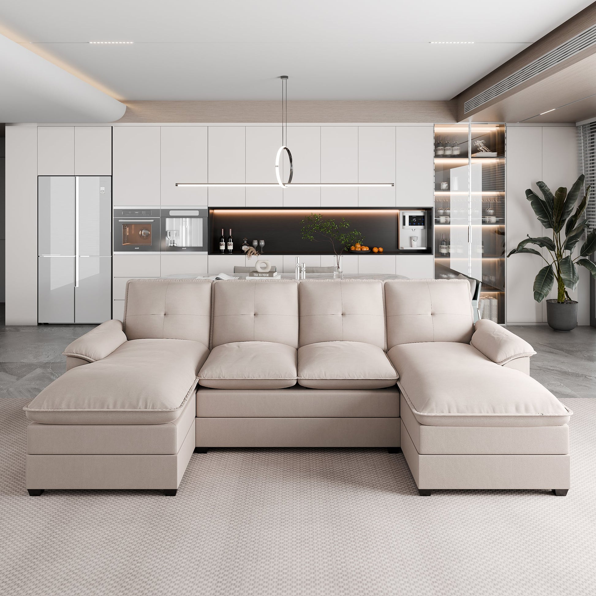Walsunny 109'' 4-Seat U Shaped Modern Sectional Sofa With Double Chaise for Apartment, Studio, Office