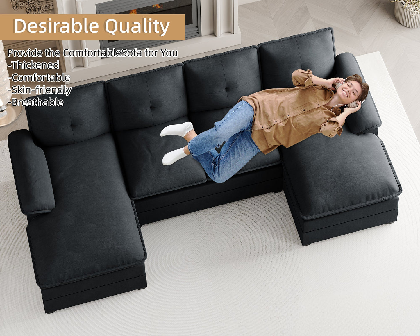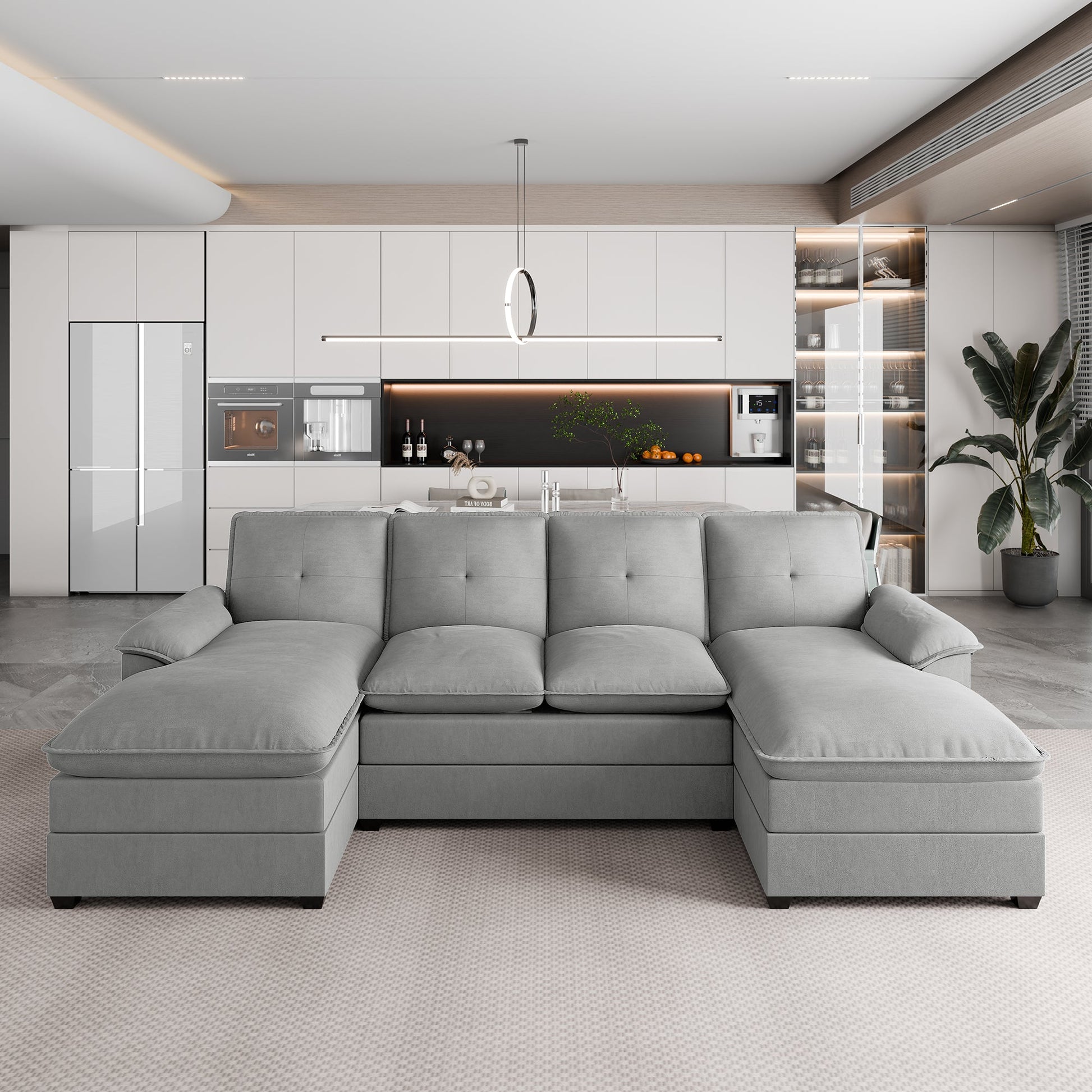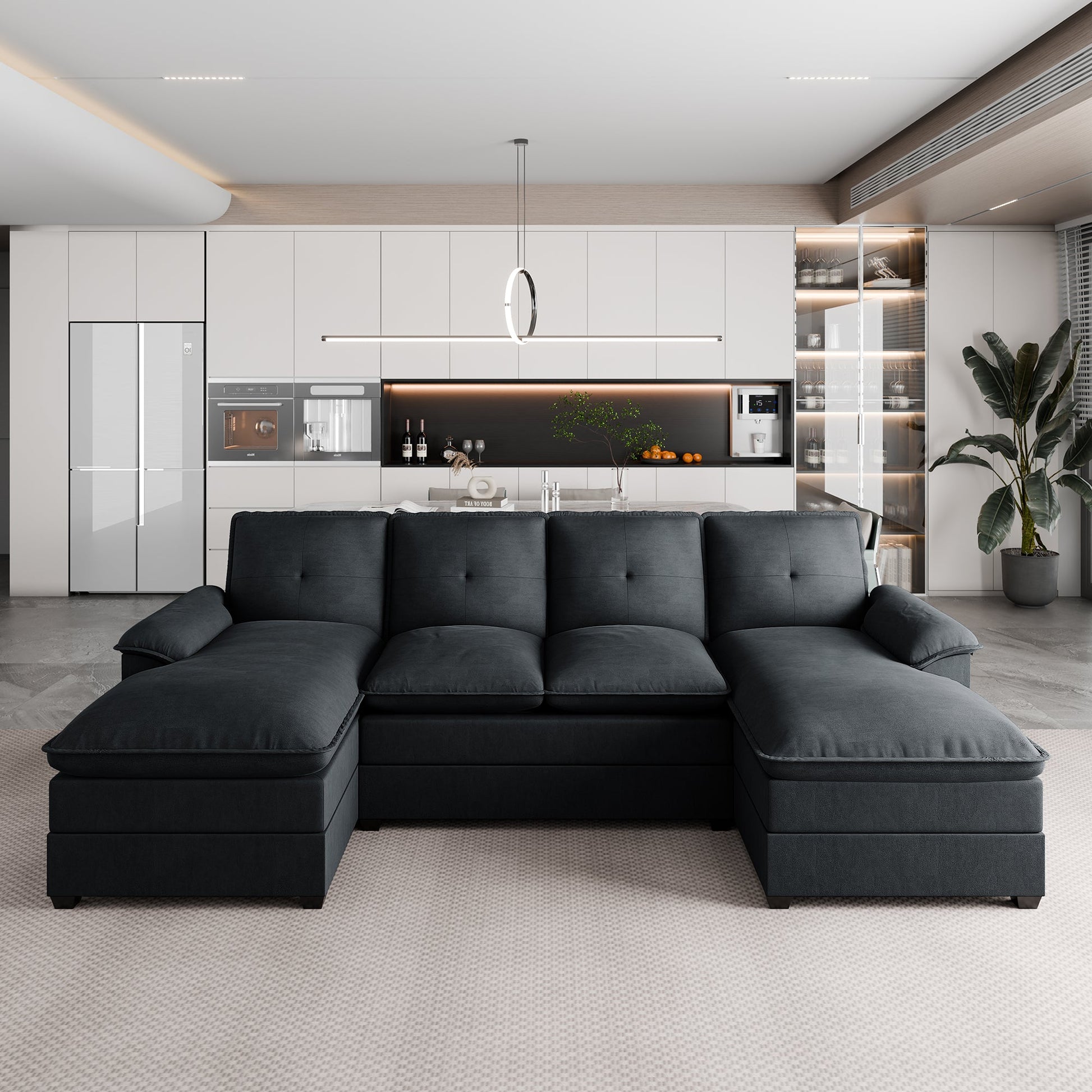 This U-shaped couch is the epitome of modern elegance, transforming any space into a haven of warmth and sophistication. Perfect for your living room, apartment, or office, it’s the ultimate addition for those seeking both style and comfort. After a busy day, lie back, sip a cup of coffee, or enjoy a chat with loved ones in front of the TV, enveloped in the couch’s inviting embrace.