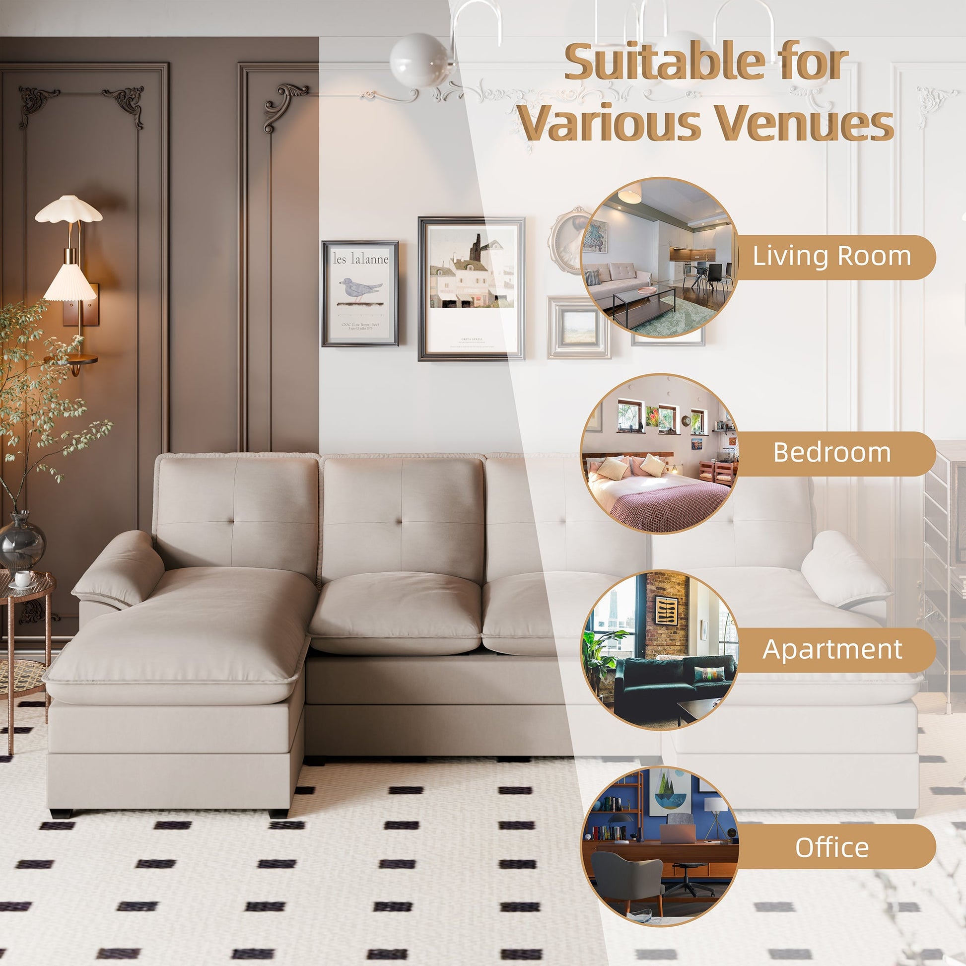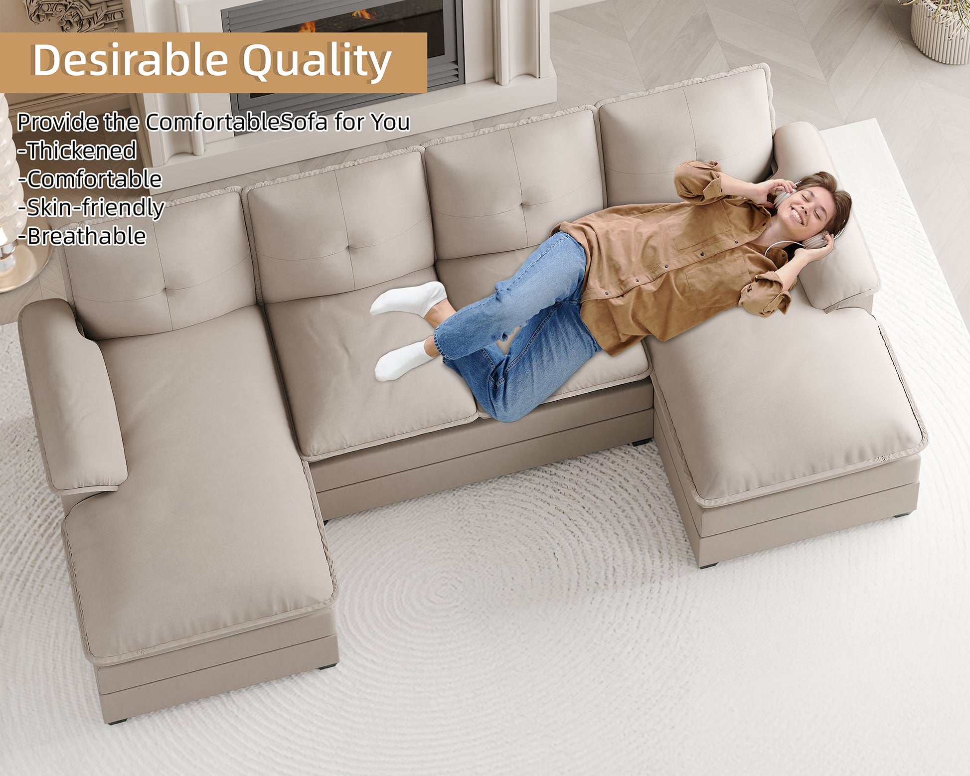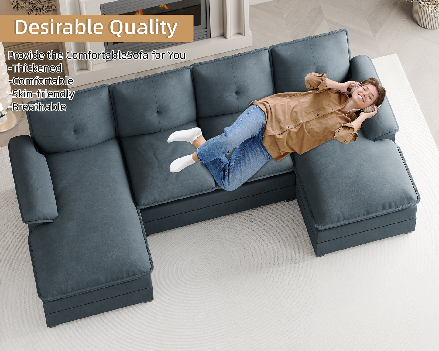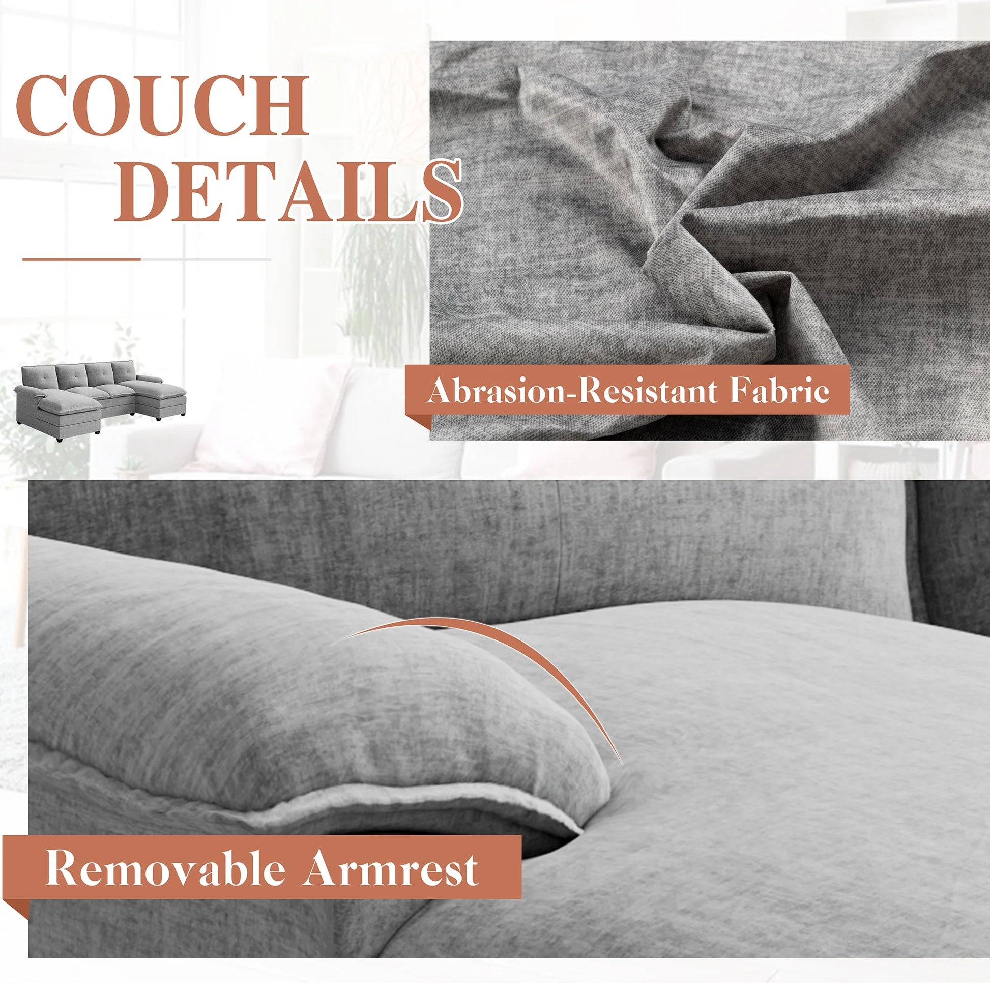 This U-shaped couch is the epitome of modern elegance, transforming any space into a haven of warmth and sophistication. Perfect for your living room, apartment, or office, it’s the ultimate addition for those seeking both style and comfort. After a busy day, lie back, sip a cup of coffee, or enjoy a chat with loved ones in front of the TV, enveloped in the couch’s inviting embrace.