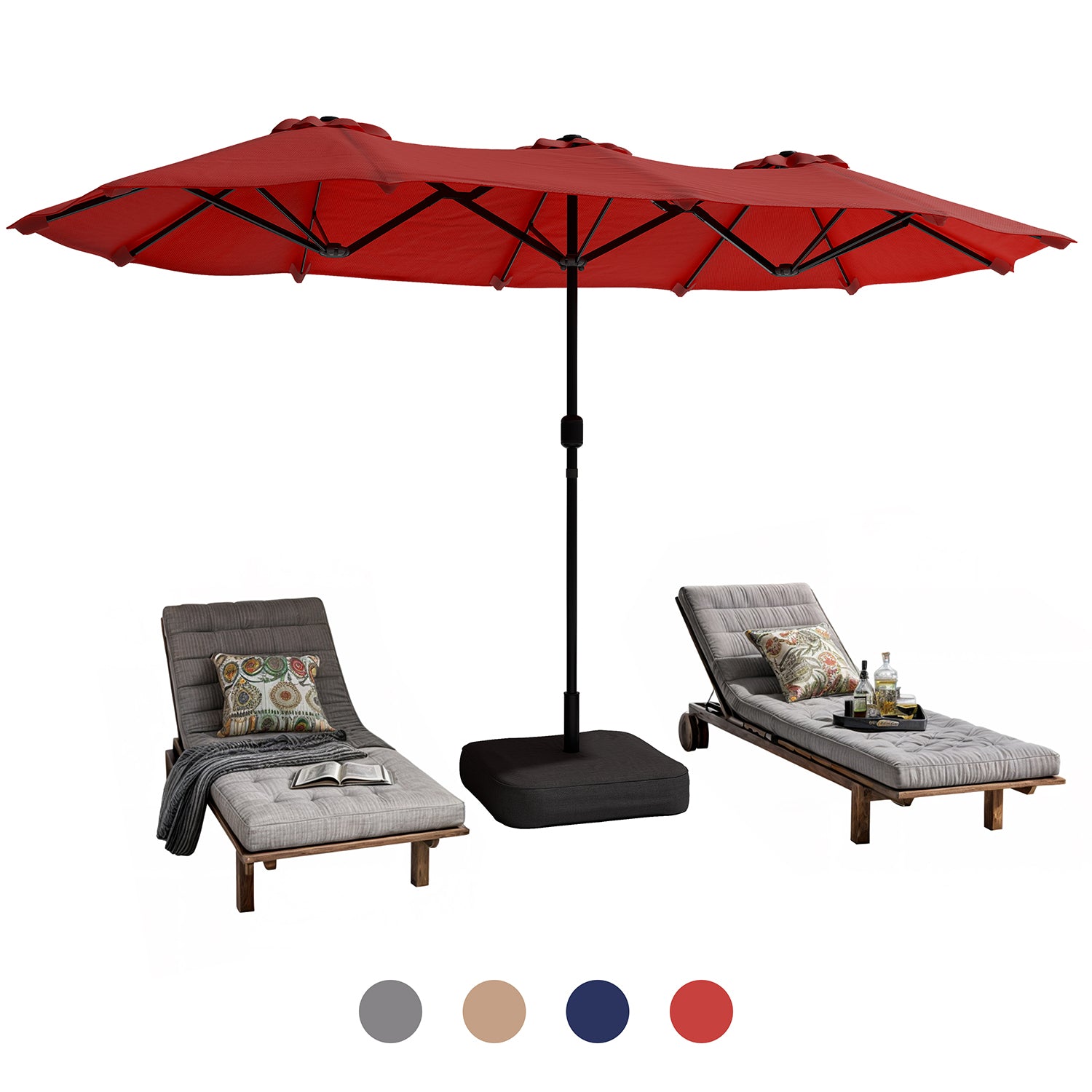 - EXTRA-LARGE SHADING AREA: This double umbrella outdoor patio can be used with 4-6 person patio dining set or outdoor furniture set. Ideal for family gatherings, outdoor dining or relaxing, it can provide ample shade area for your family and friends.