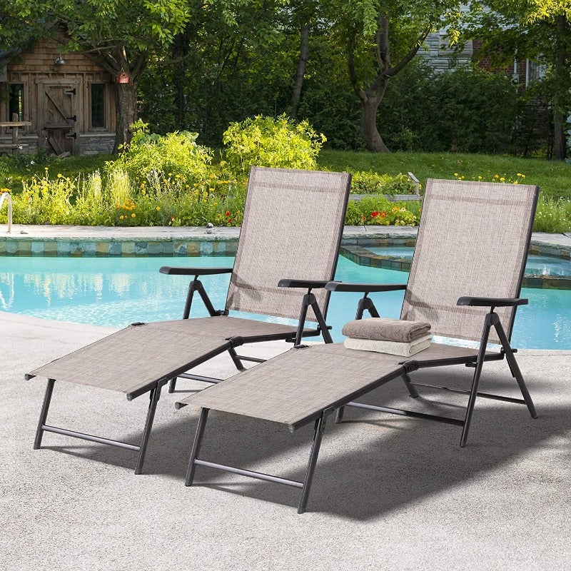 Walsunny 2 Pieces Patio Chaise Lounge, Texilene Folding Reclining Set
