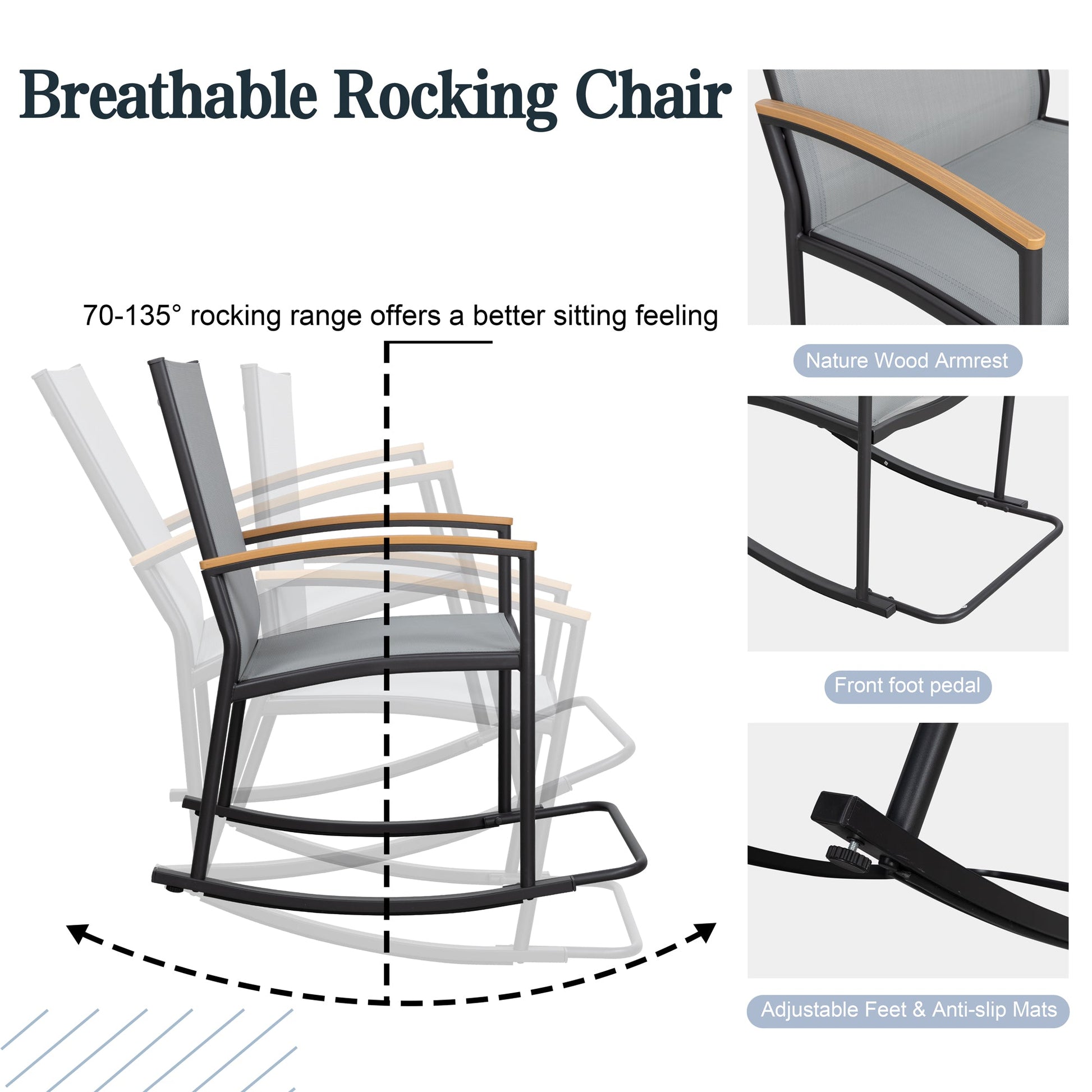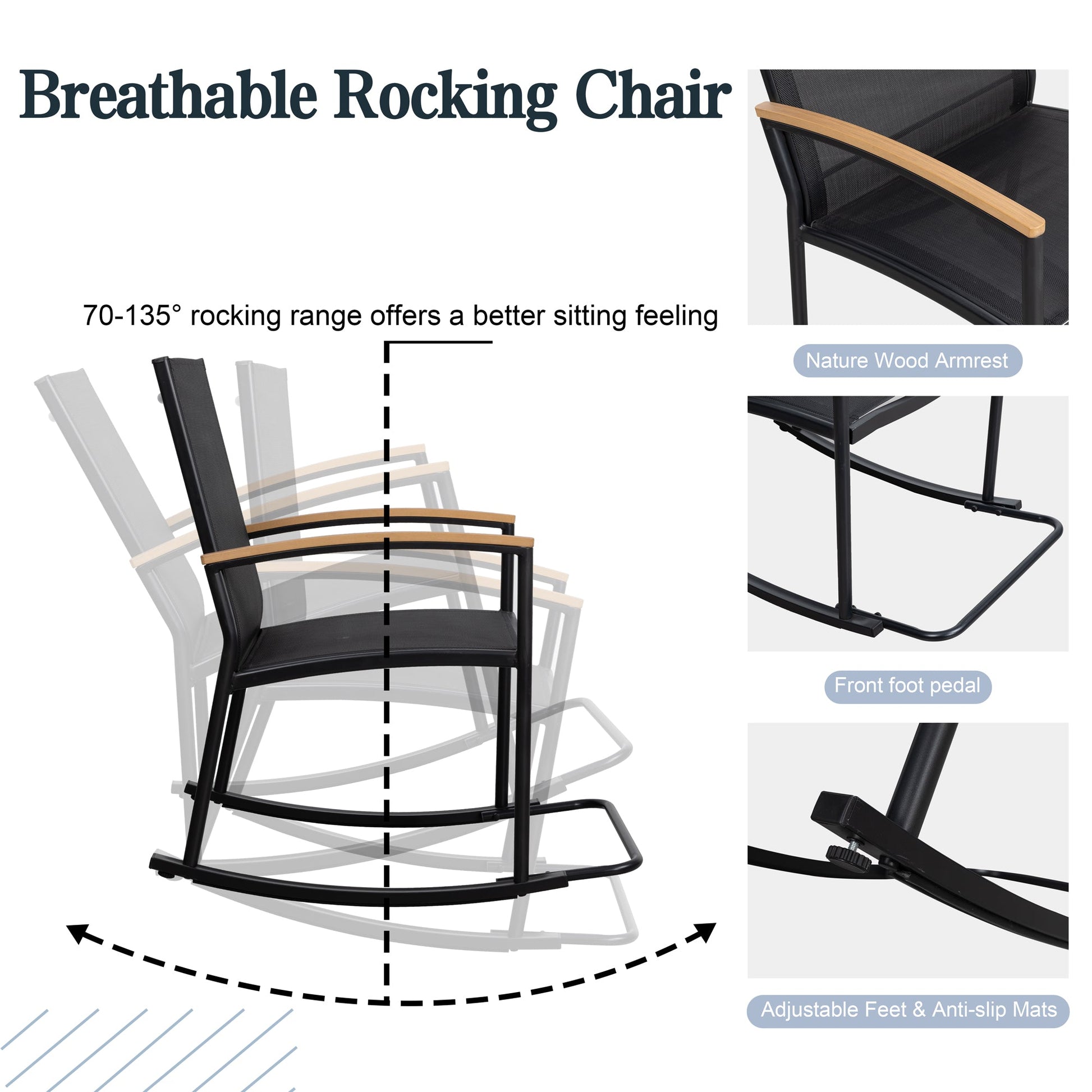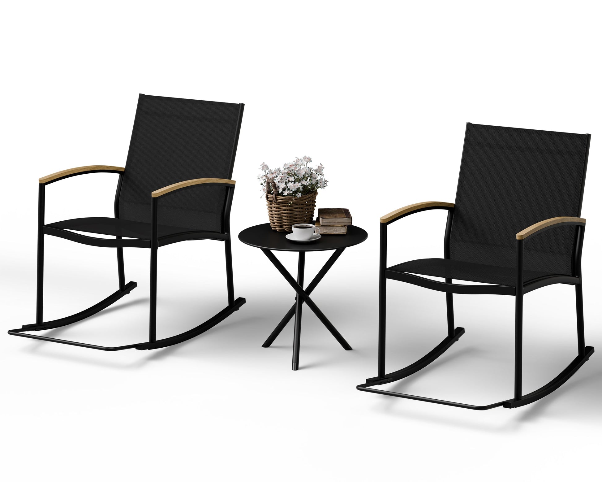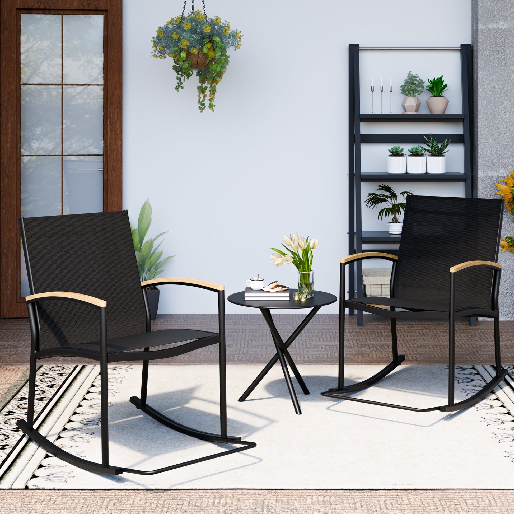 Walsunny 3 Pieces Patio Set Outdoor Patio Furniture Sets Modern Rocking Bistro Set Textilene Chair Conversation Sets Black