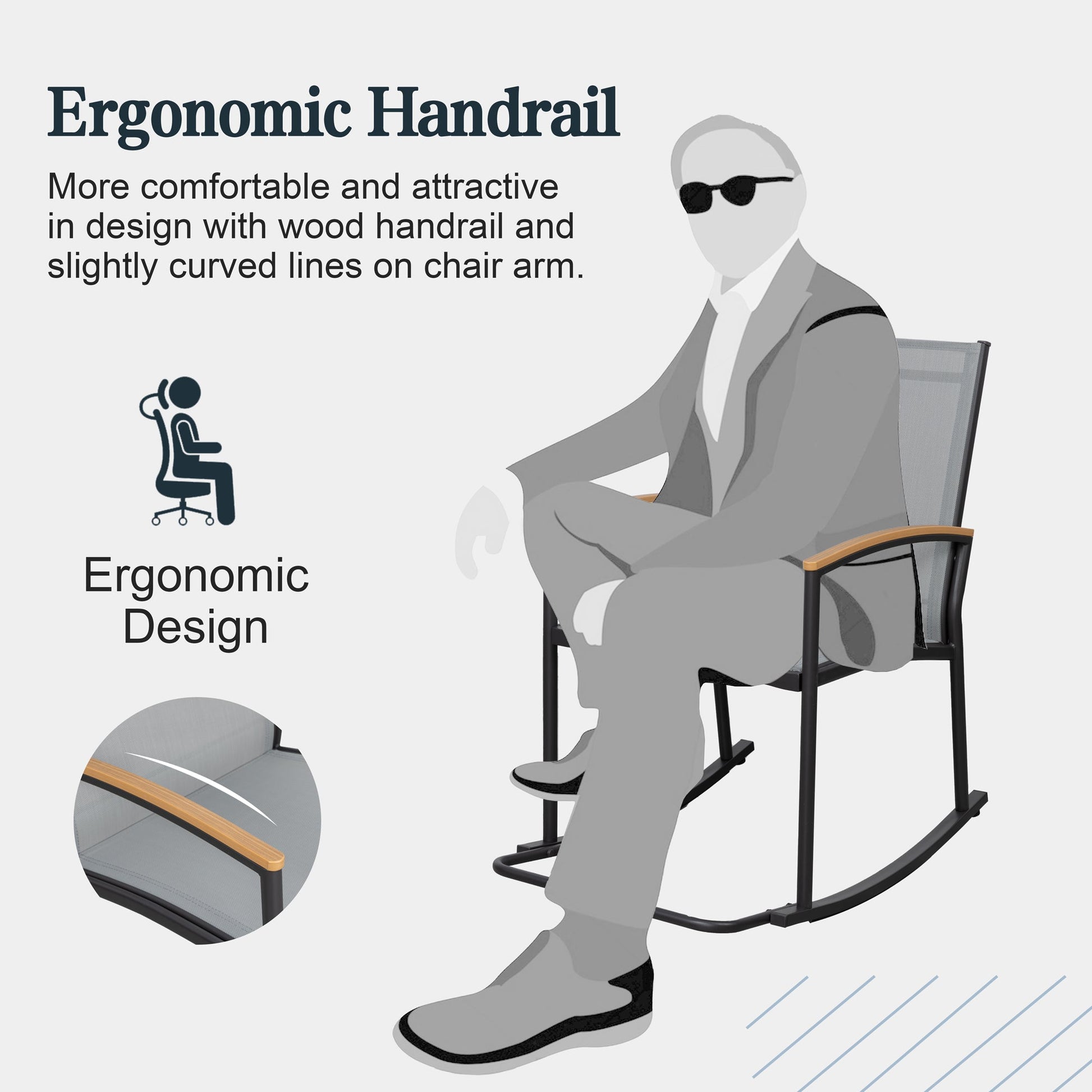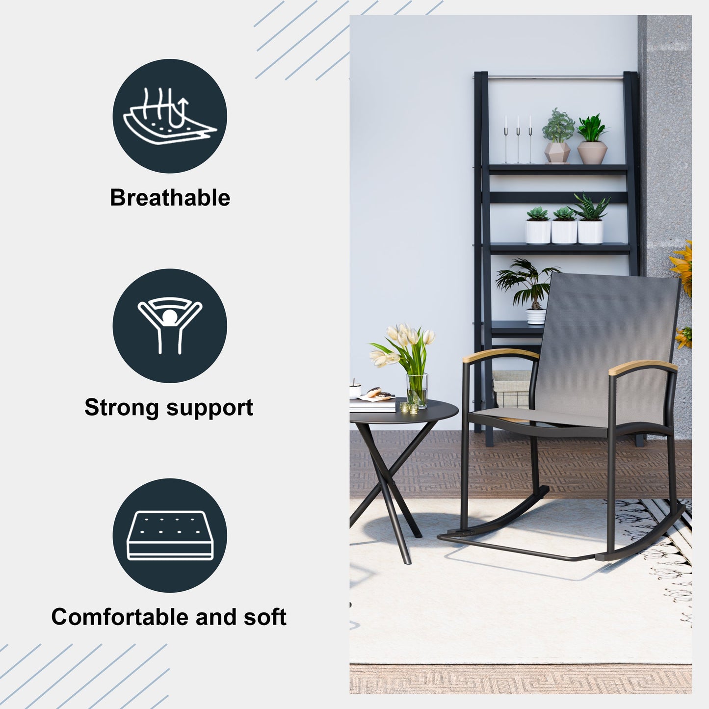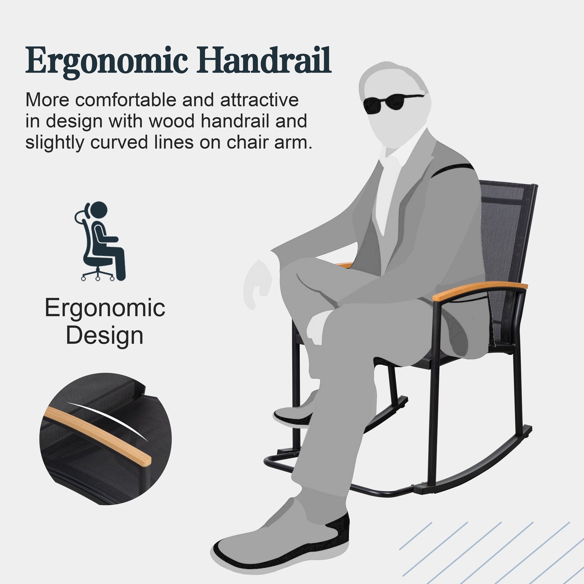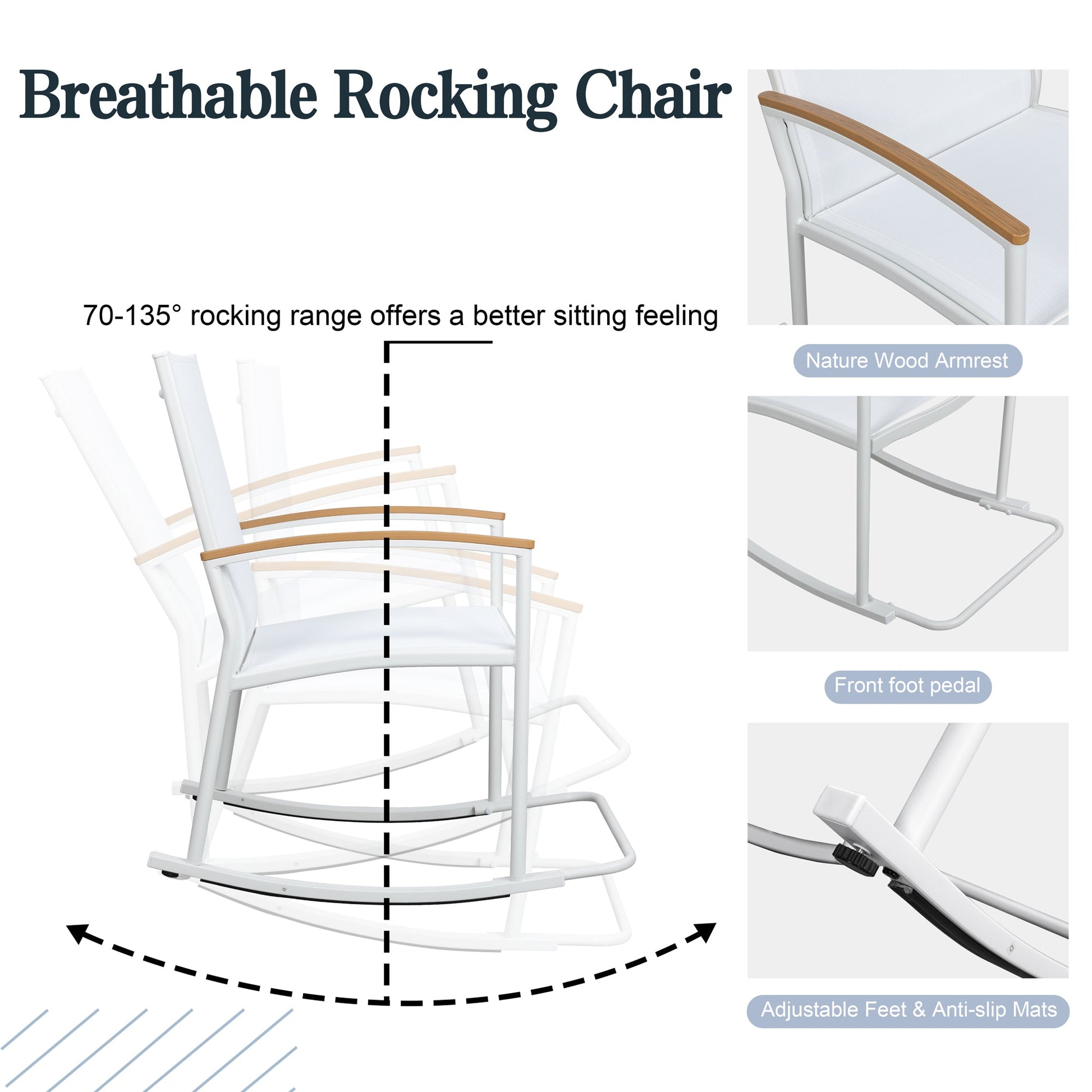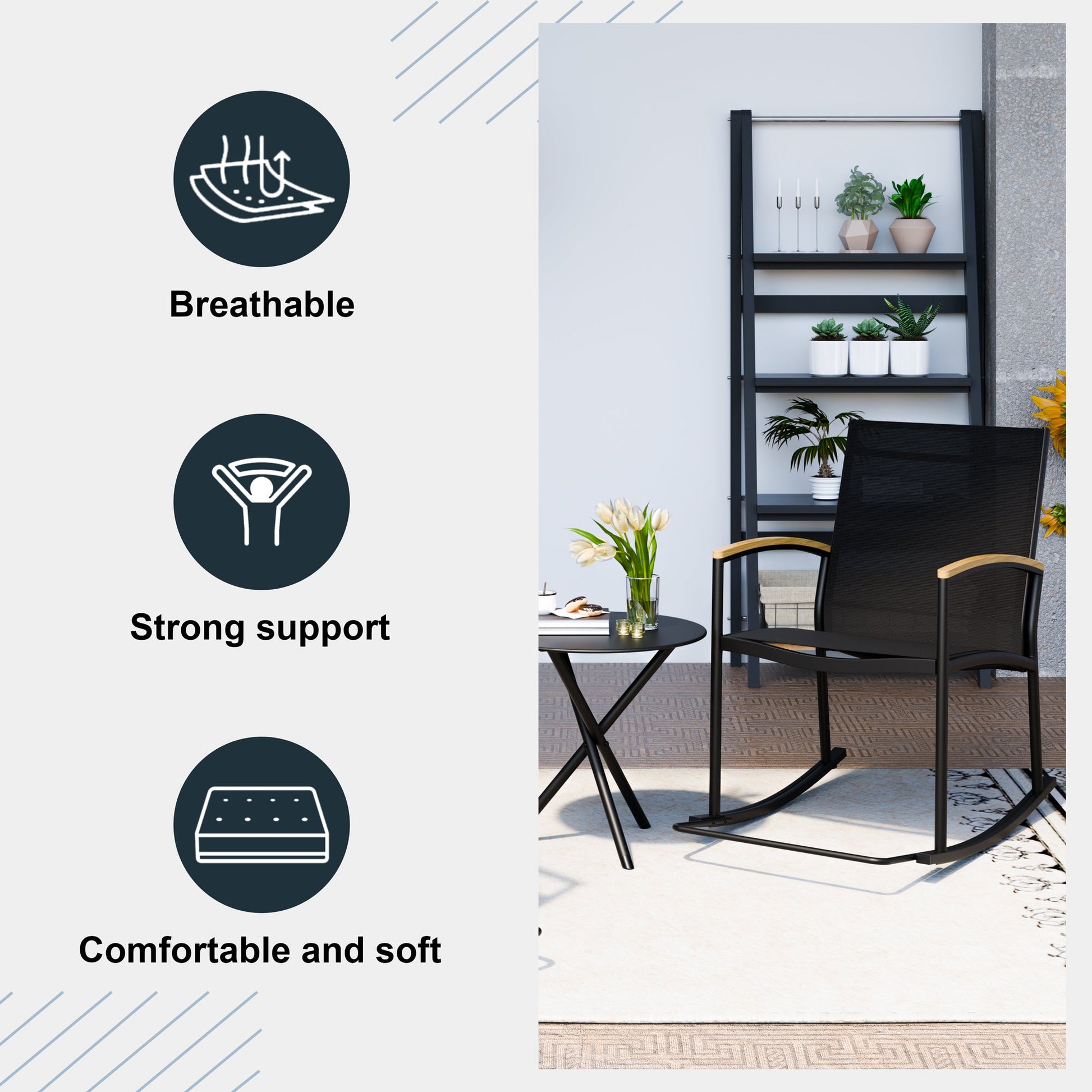 Walsunny 3 Pieces Patio Set Outdoor Patio Furniture Sets Modern Rocking Bistro Set Textilene Chair Conversation Sets Black