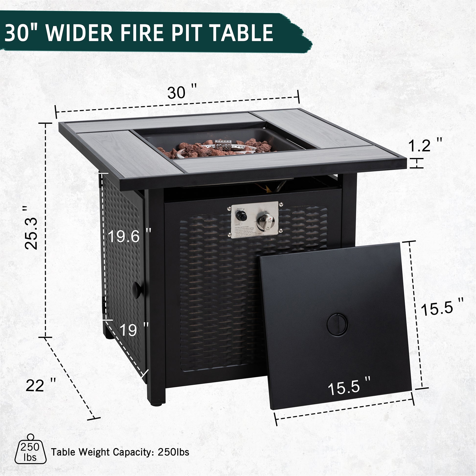 - DIMENSIONS OF PROPANE FIRE PIT: Overall Table Size: 30" L x 30" W x 25.3" H. Our product is delivered with 1 boxes.