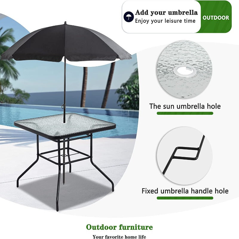- Tempered Glass Table With Sun Umbrella Hole