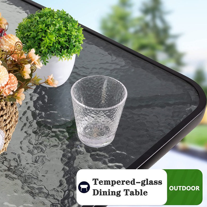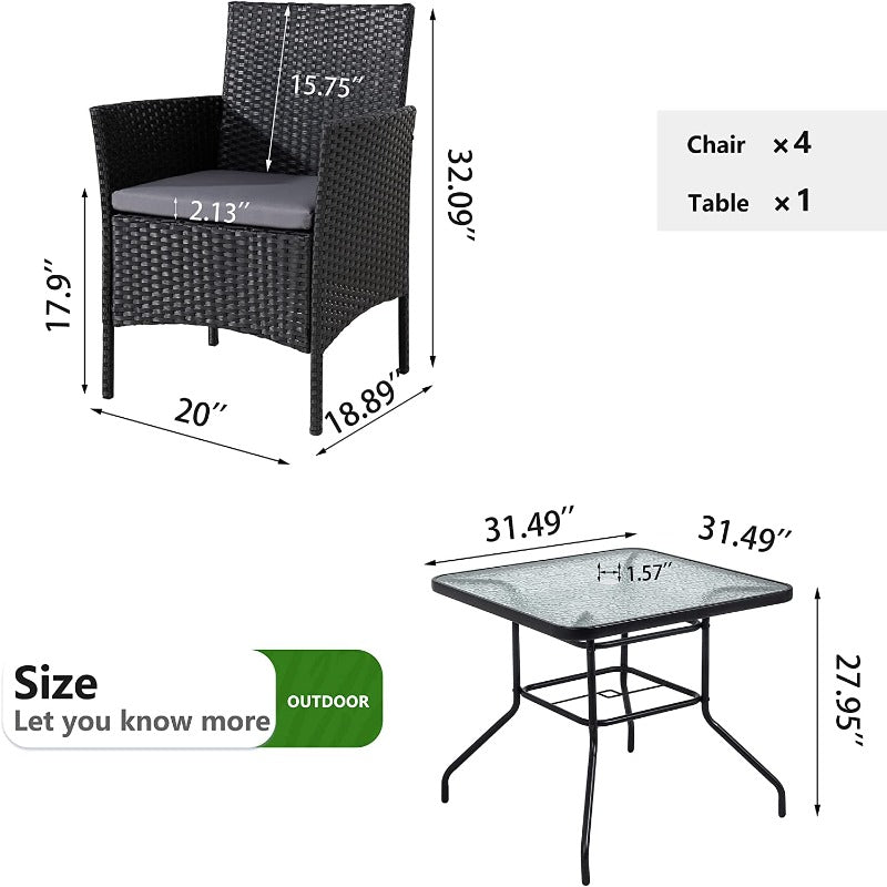 Walsunny 4 Pieces/5 Pieces Patio Dining Set, Square Glass Table