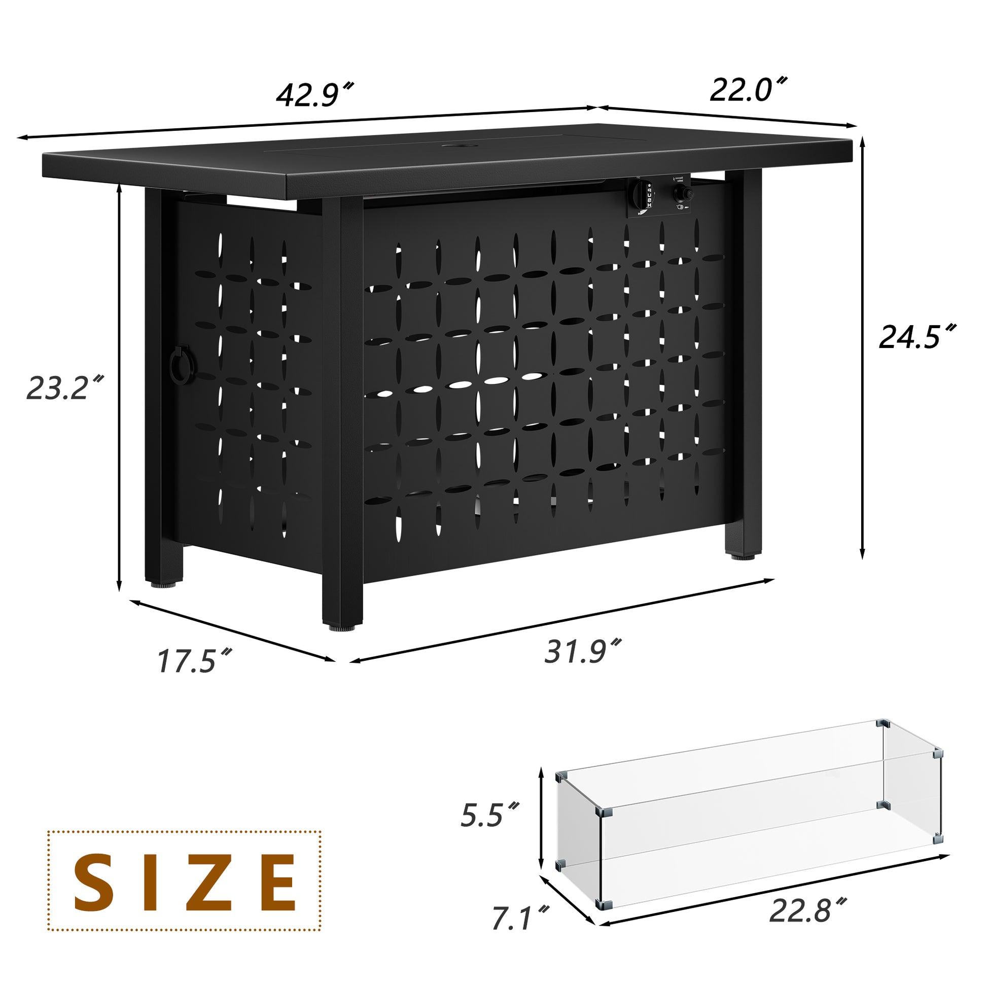 Walsunny 43 inch Gas Fire Pit Table 40,000 BTU Outdoor Rectangular Propane Fire pit Table with Glass Wind Guard and Waterproof Cover