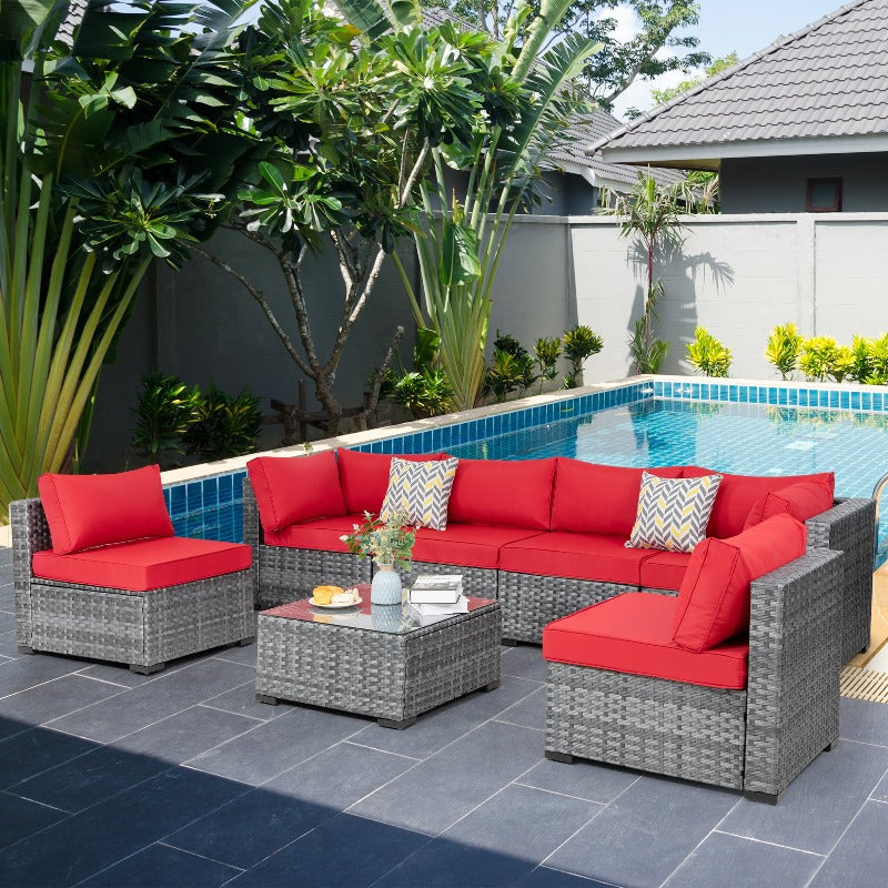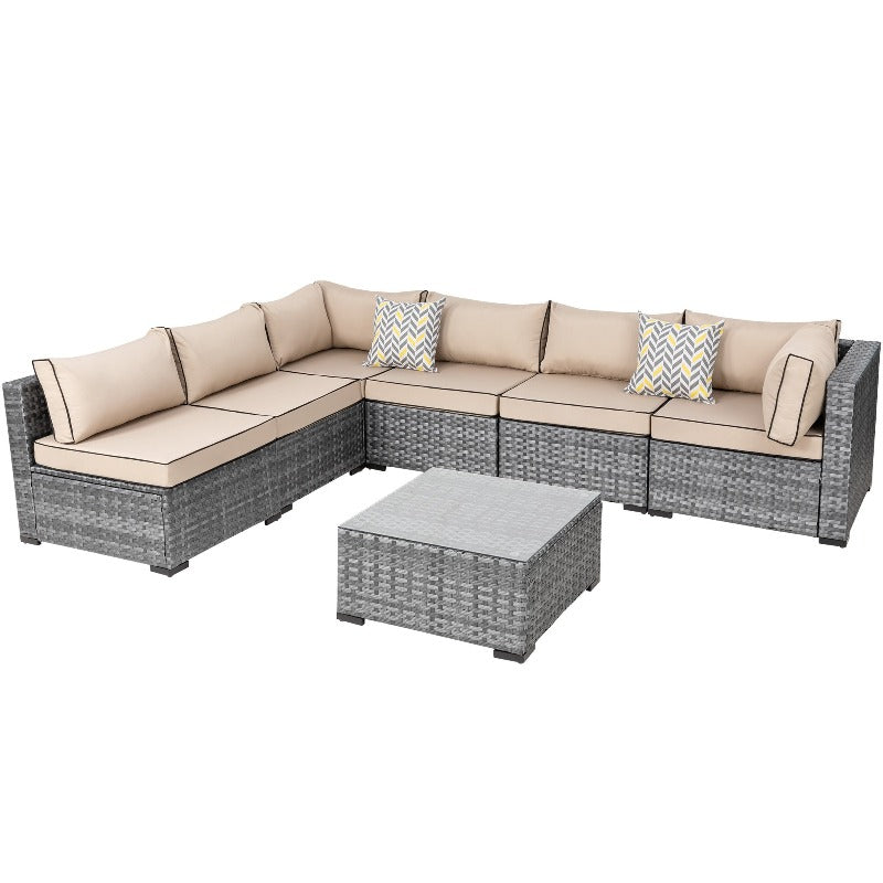 Walsunny Patio Furniture 7 Pieces Outdoor Sectional Sofa Set, Silver Wicker