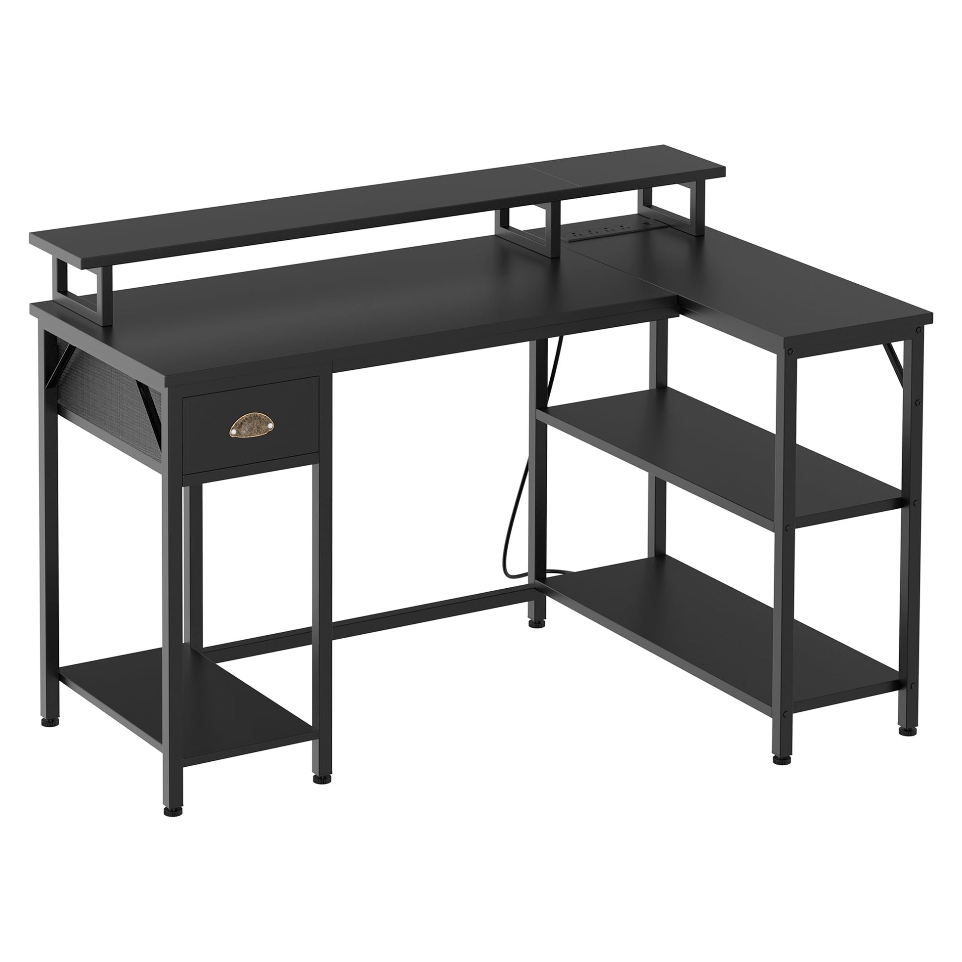 - 【Modern Design】Modern table design, stable structure. The L-shaped design also comes with power outlets and oversized storage space for your office needs.