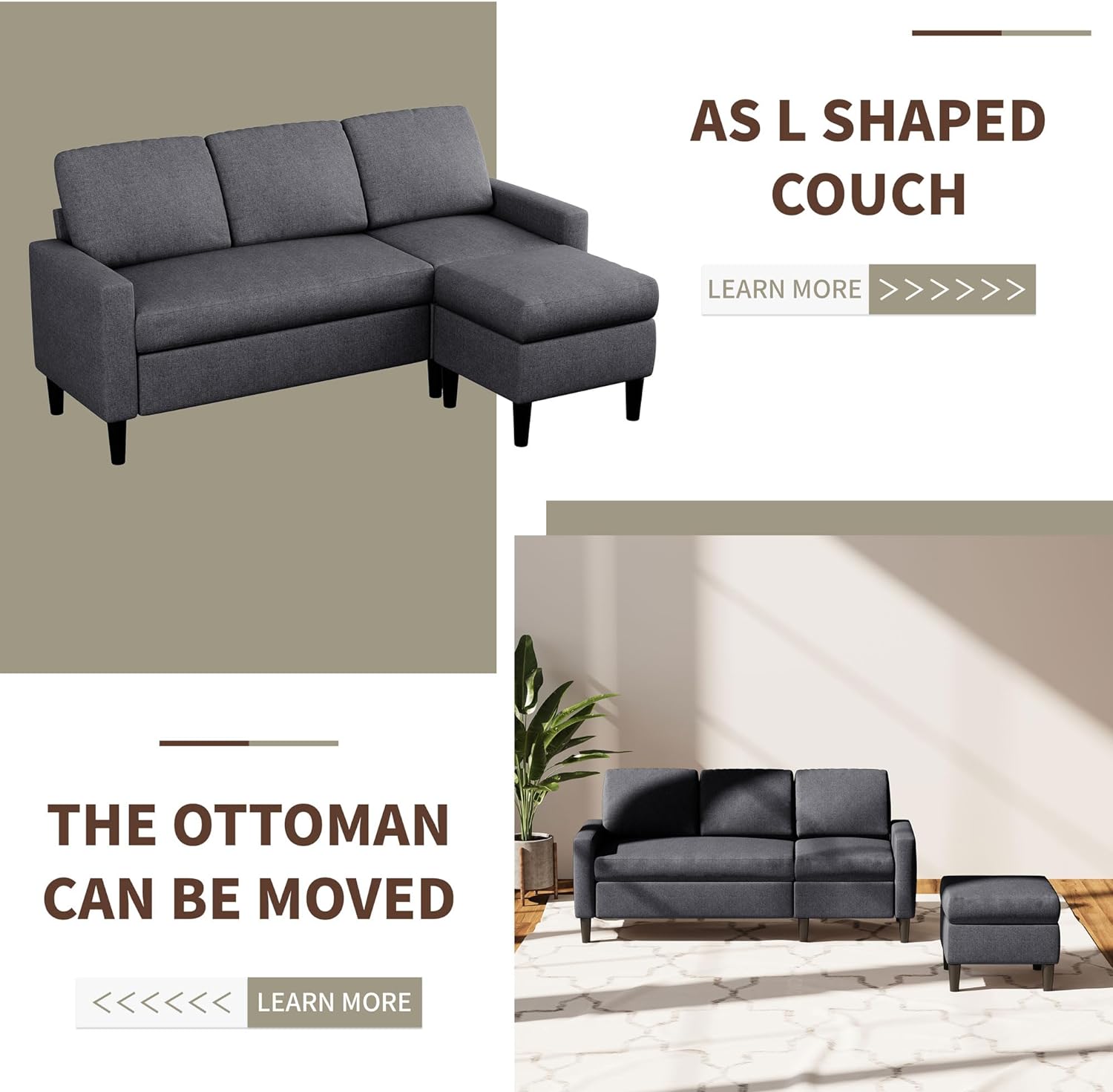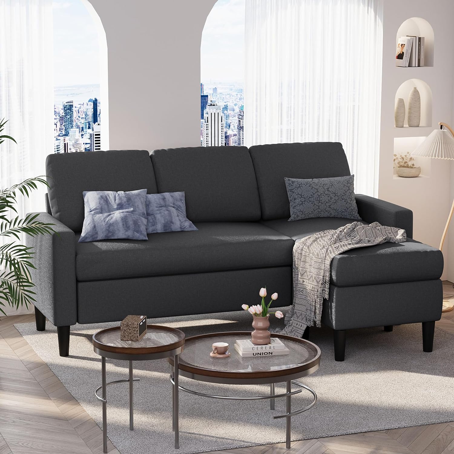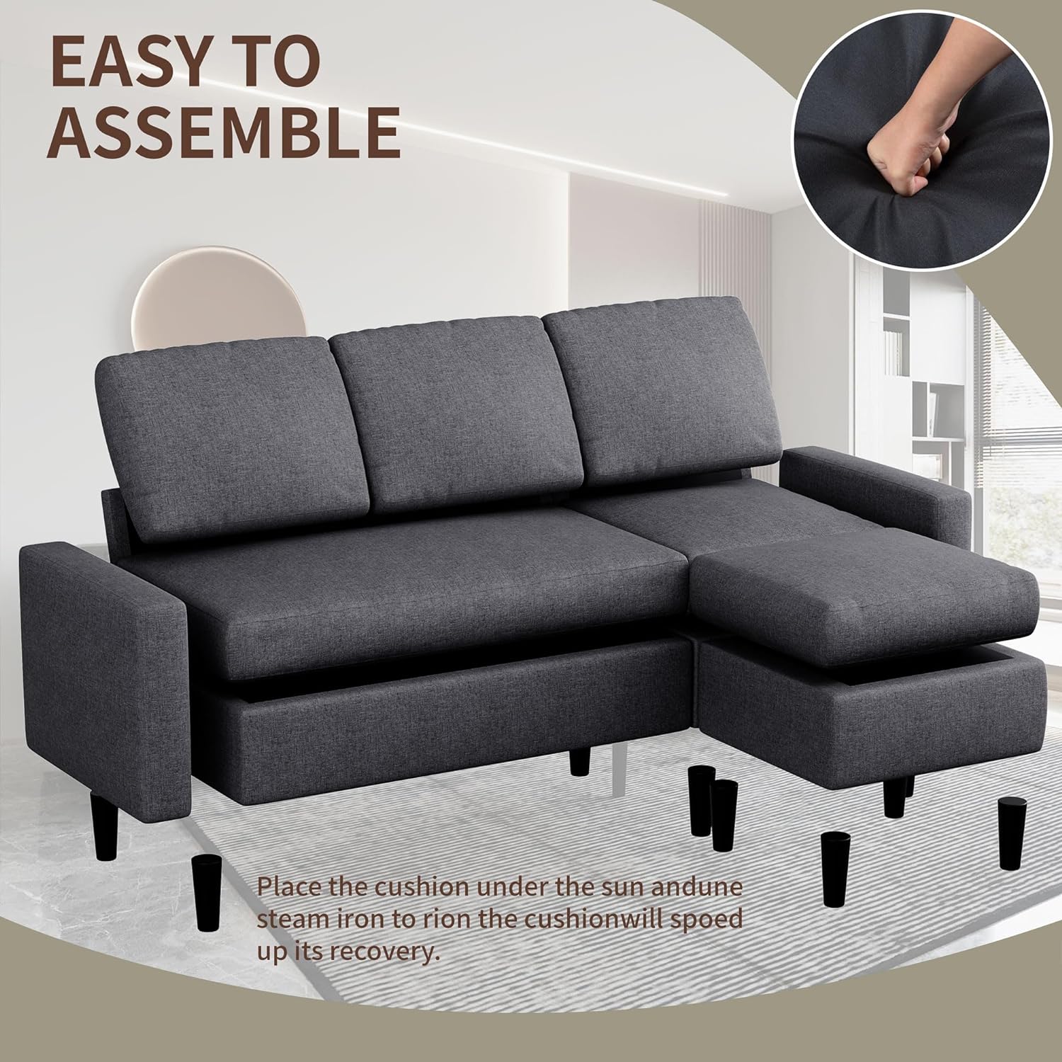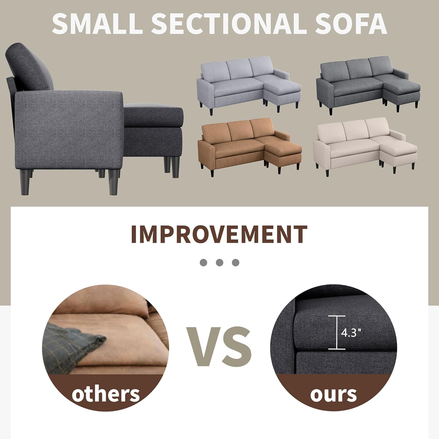 Walsunny 3-Seat L Shaped Sectional Sofa Couch with Modern Linen Fabric for Small Space
