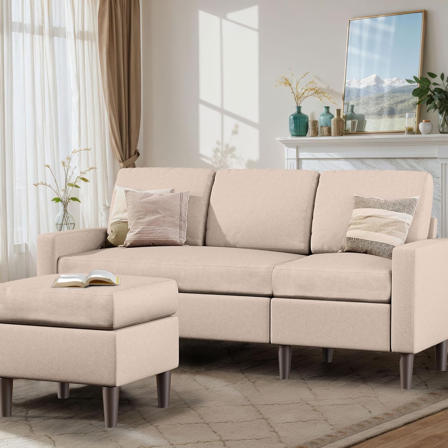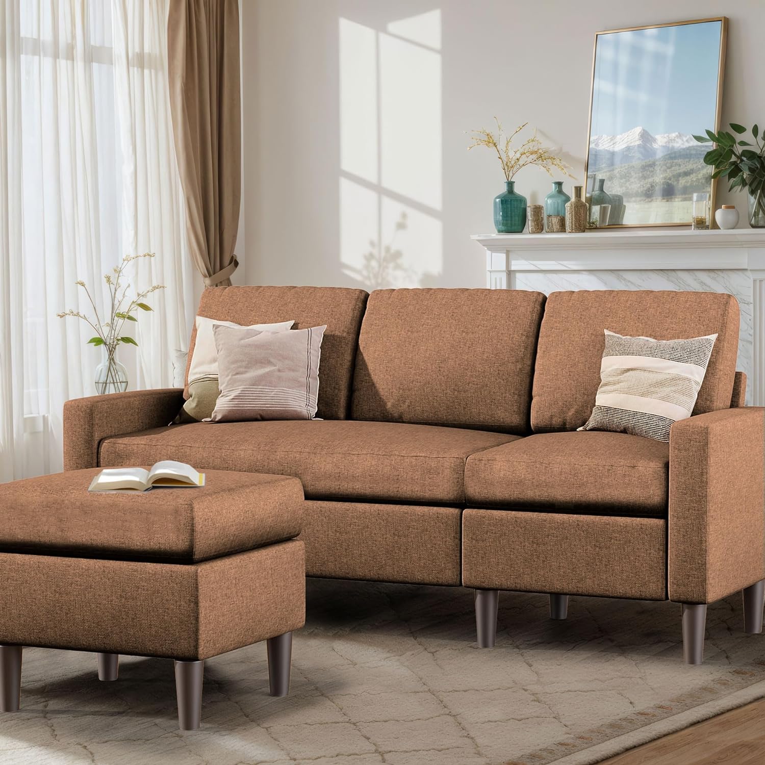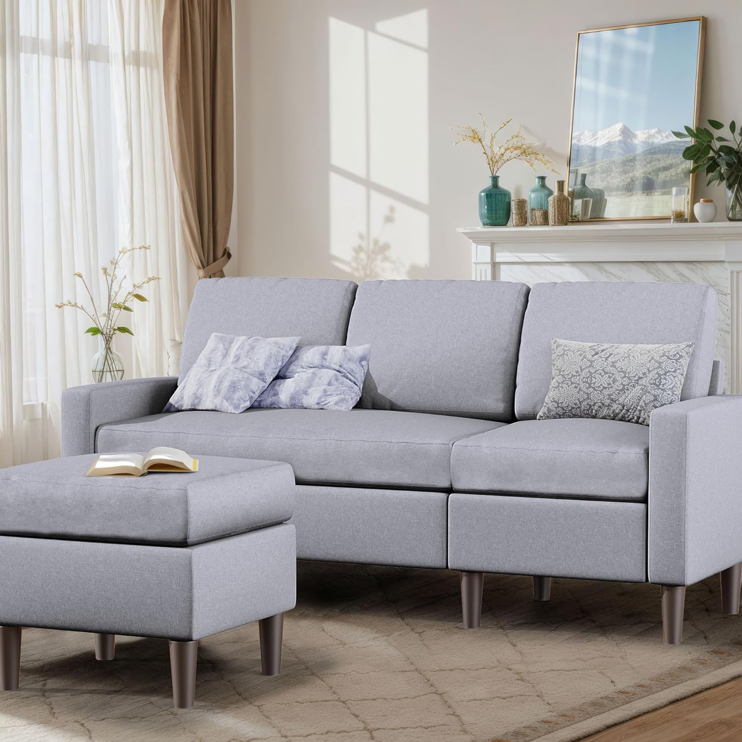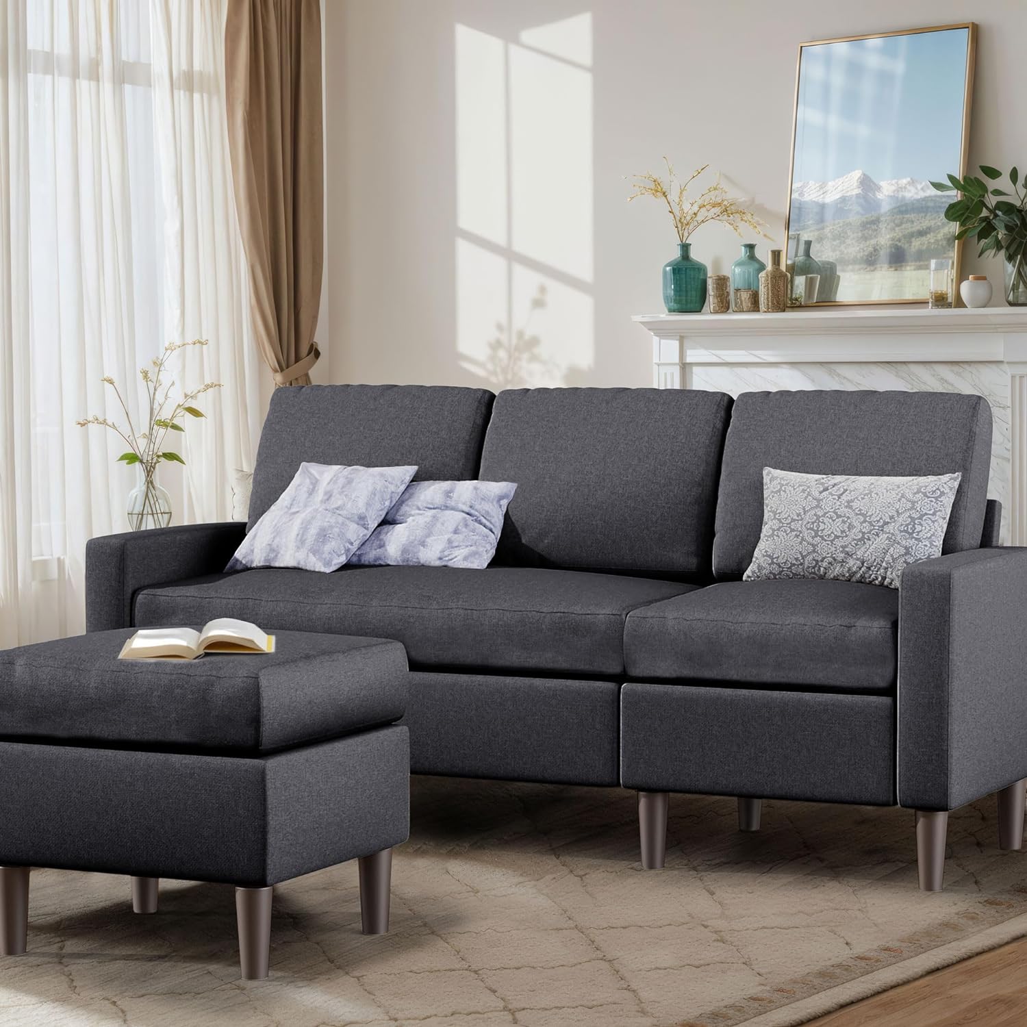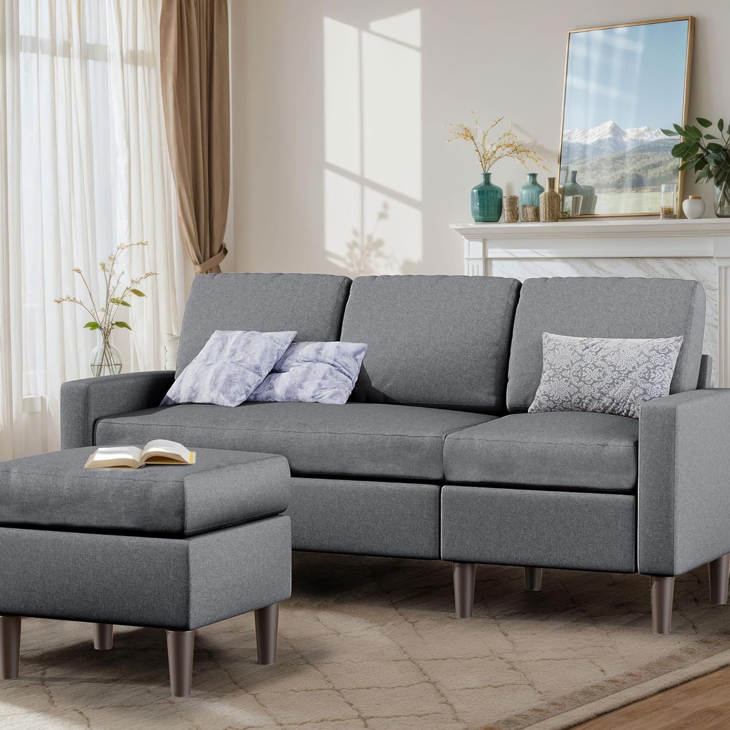 Walsunny 3-Seat L Shaped Sectional Sofa Couch with Modern Linen Fabric for Small Space