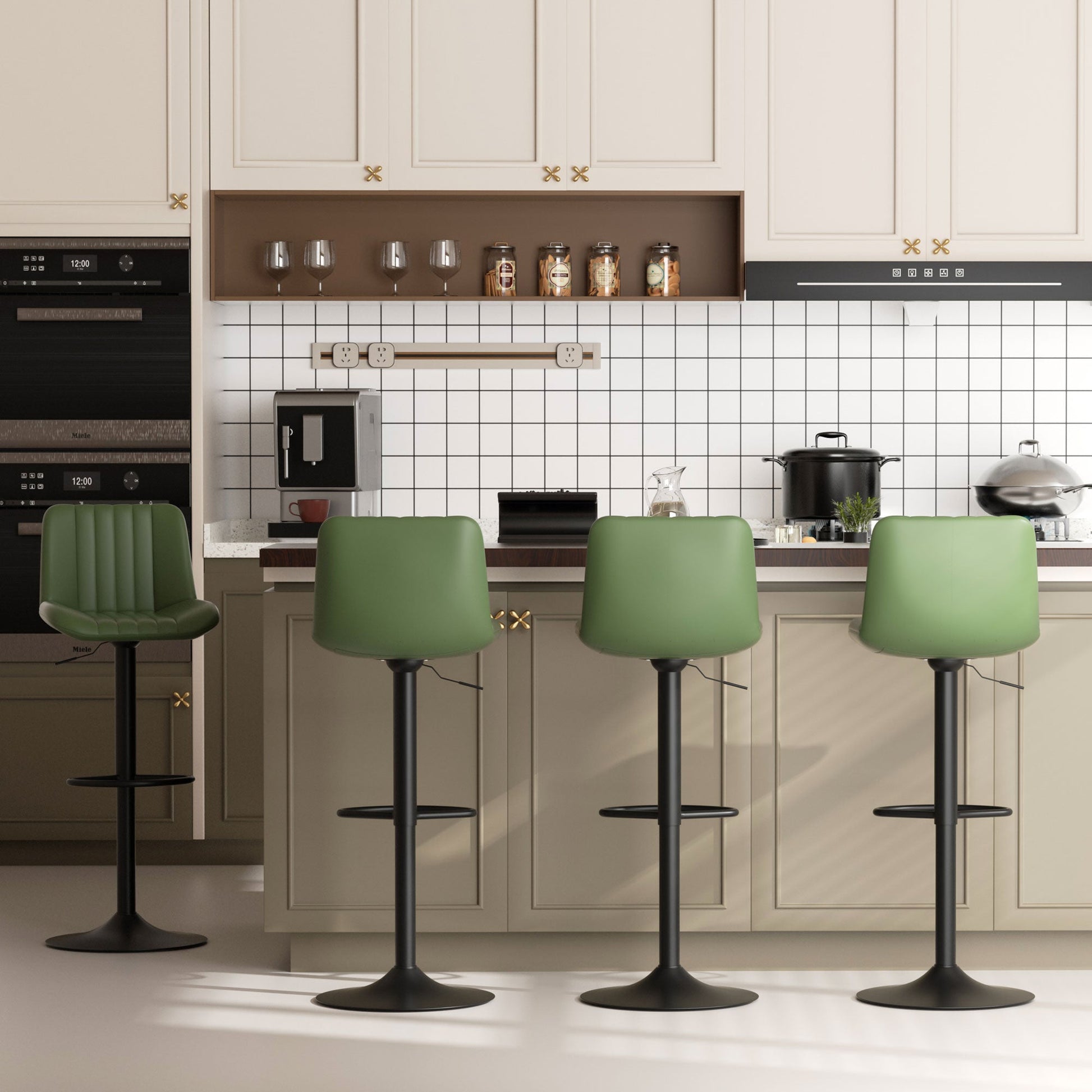 Make a bold statement with our fashionable bar stools, available in four stunning colors: green, brown, black, and grey. The faux leather finish exudes classic elegance and timeless appeal, making these stools a standout addition to any setting. Whether you're decorating a sophisticated restaurant, a trendy bar, or a modern student apartment, these stools add a touch of luxury and style.