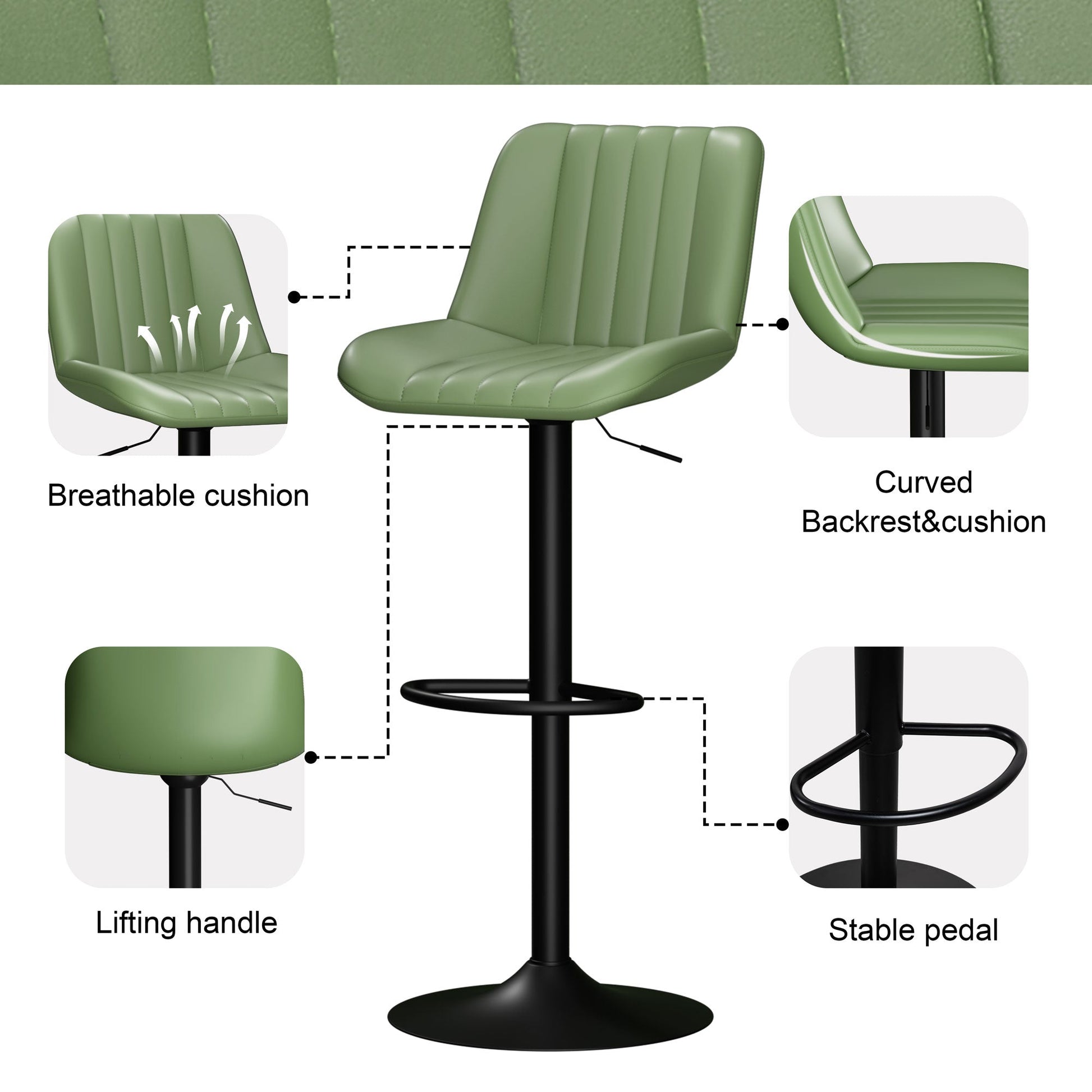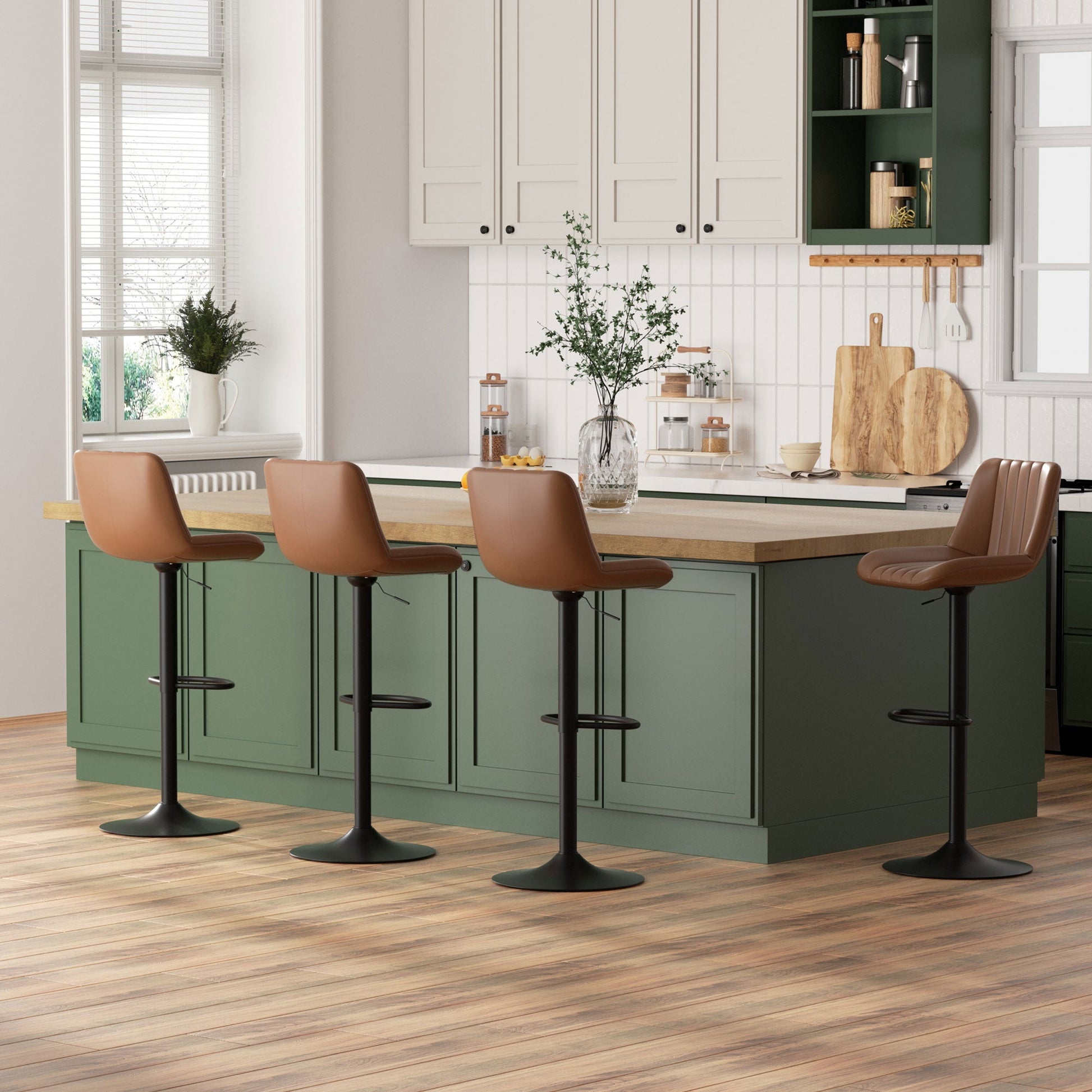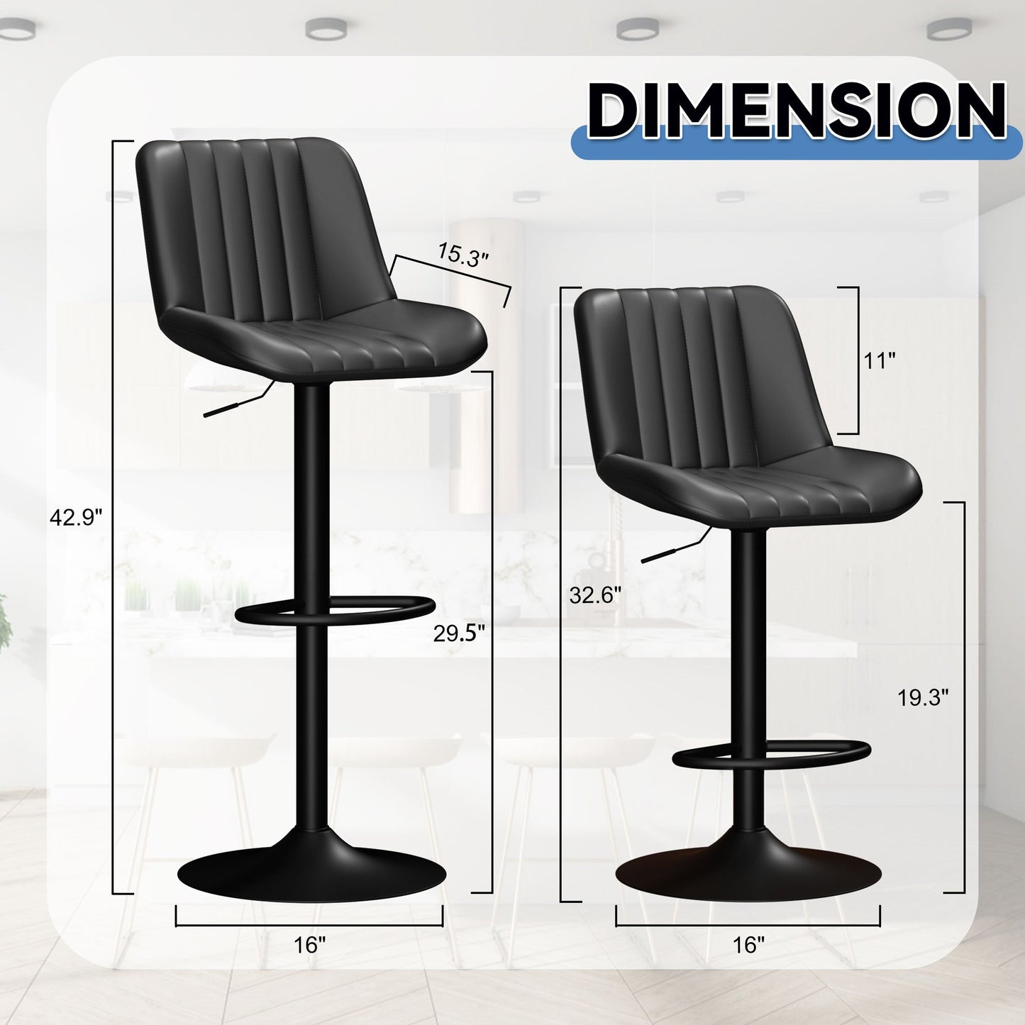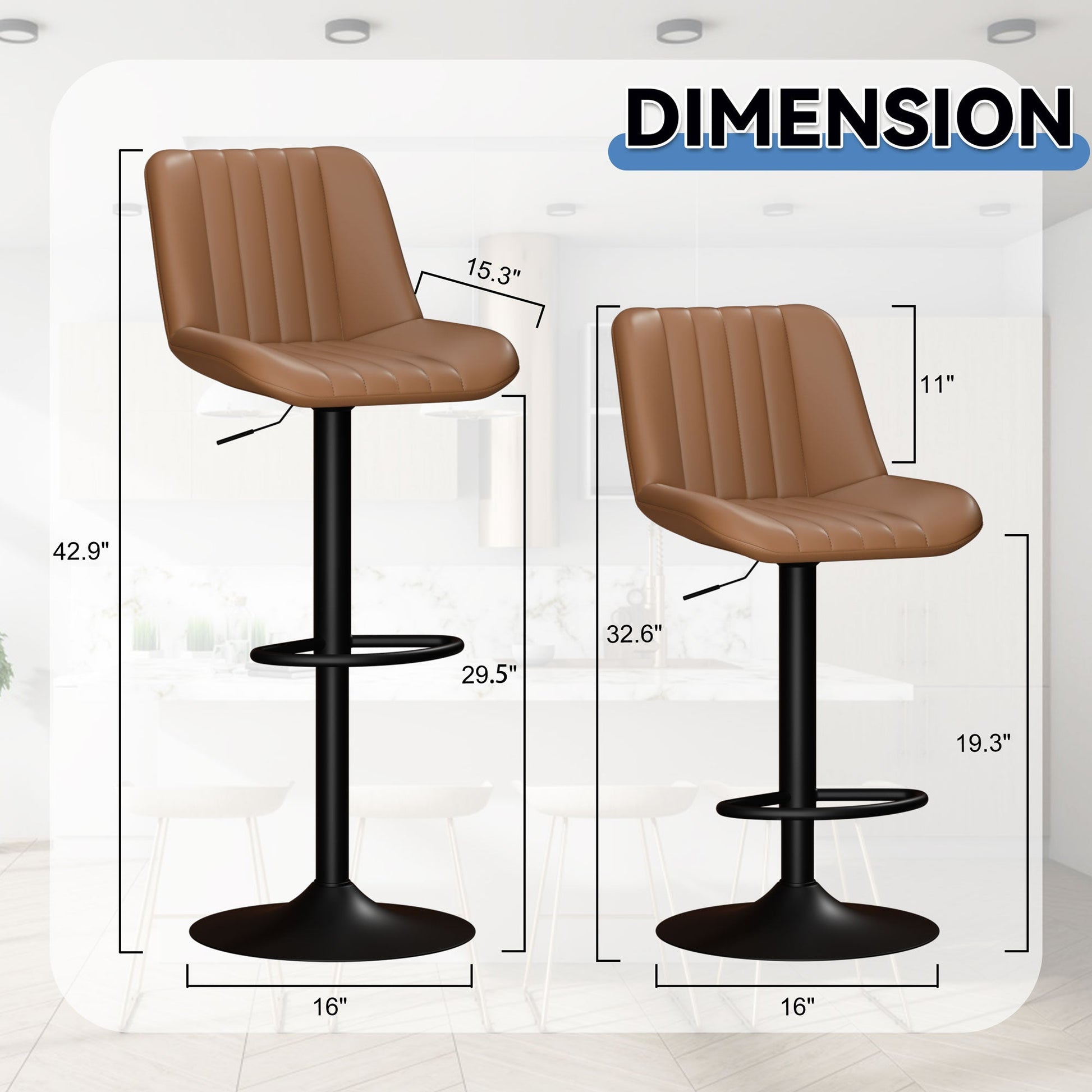 Walsunny Bar Stools Set of 2,Adjustable Leather Counter Height with High Backrest,Bar Chairs for Kitchen Island Dining,Room Bar