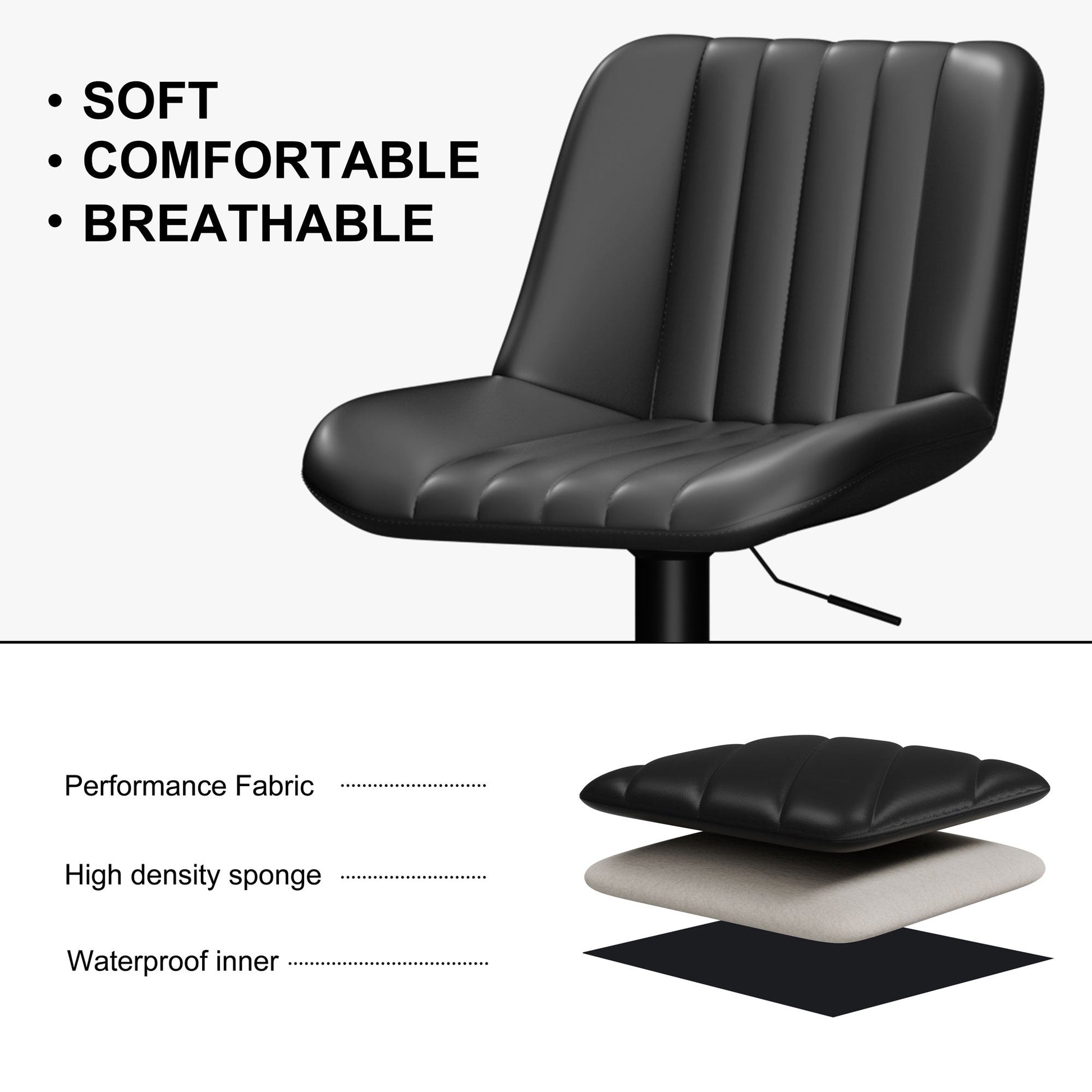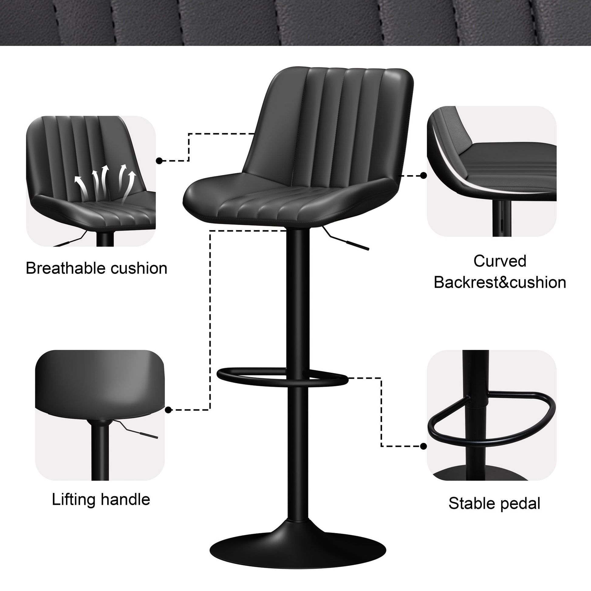 Immerse yourself in the perfect blend of style and durability with our high-quality bar stools. Crafted with high-elasticity foam seat cushions, these stools promise exceptional comfort. The 360-degree swivel feature allows for effortless conversation and interaction, whether you're hosting a lively gathering at a restaurant, enjoying a meal in a student apartment dining area, or sharing drinks at your home bar. The adjustable height function caters to various needs, making these stools versatile for any occasion.