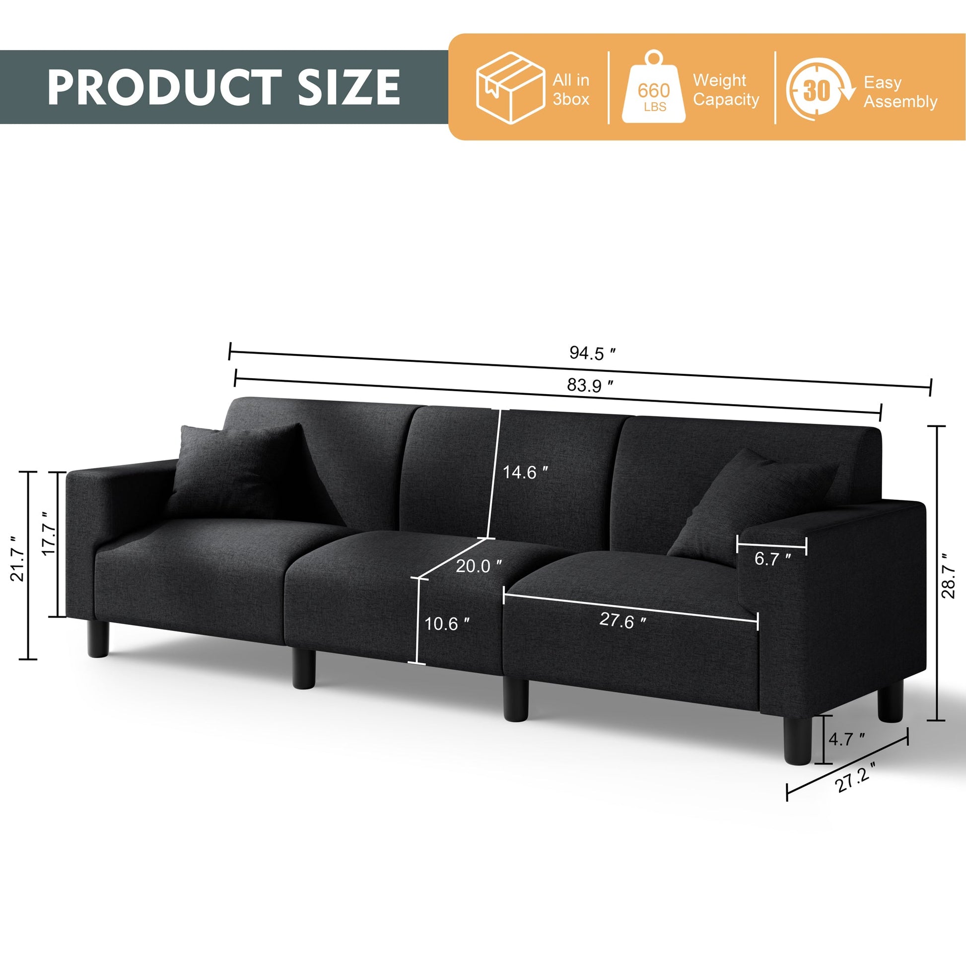 Walsunny 94'' Convertible Sectional Sofa Couch with 3 Seats
