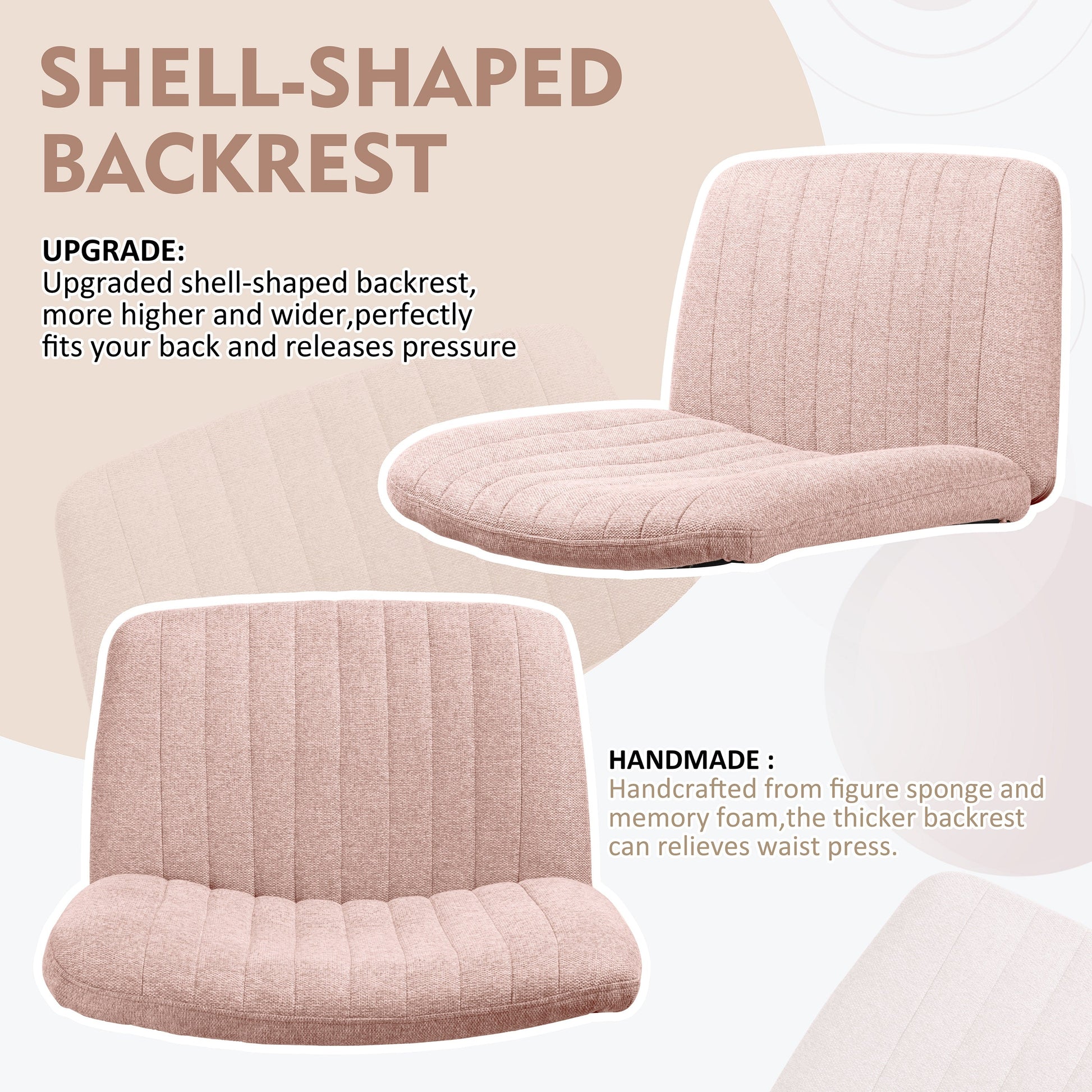 【Elegant & Cozy】This desk chair with no wheels has a black lacquered criss-cross aluminum base with non-slip natural rubber feet on each support leg to prevent scratches and slips. The high quality cozy fabric and stylish shell-shaped backrest is taller and wider to perfectly fit your back and release pressure, providing a comfortable sitting experience even after long hours of sitting.