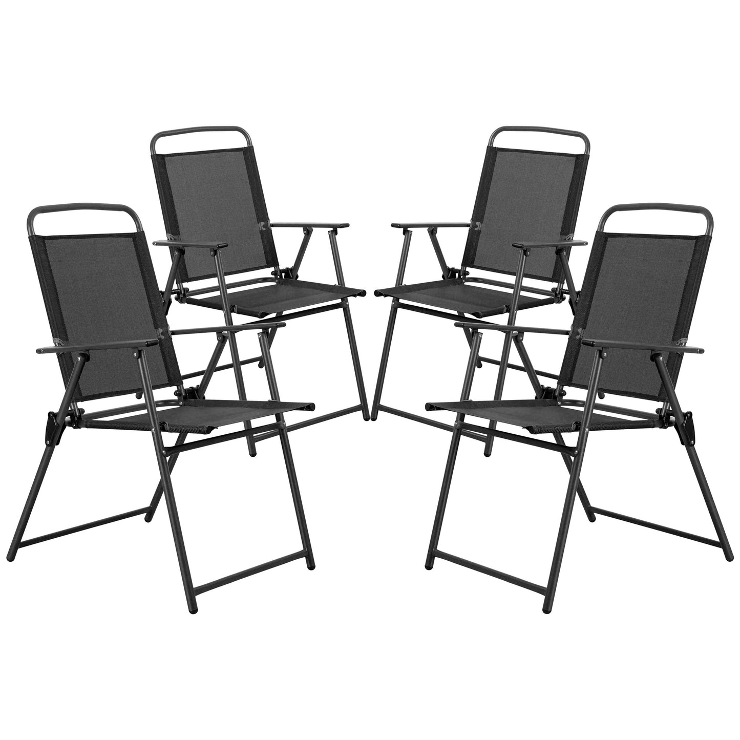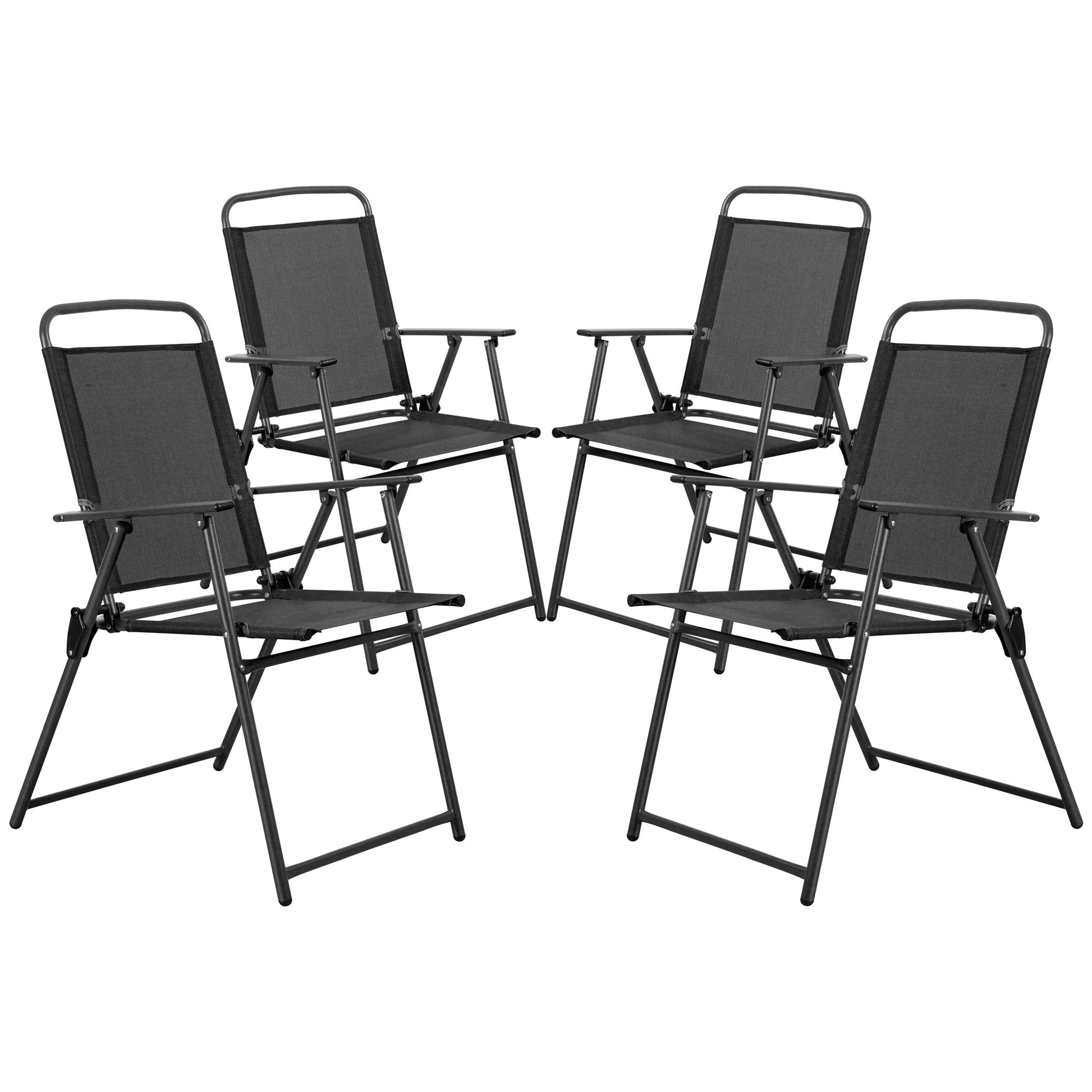- [Sturdy& Durable Material] Made of powder-coated steel, the chairs are weather and rust proof for long lasting use; Featuring a sling Textilene fabric, the 4 folding chairs are breathable, sweat absorption and flash drying