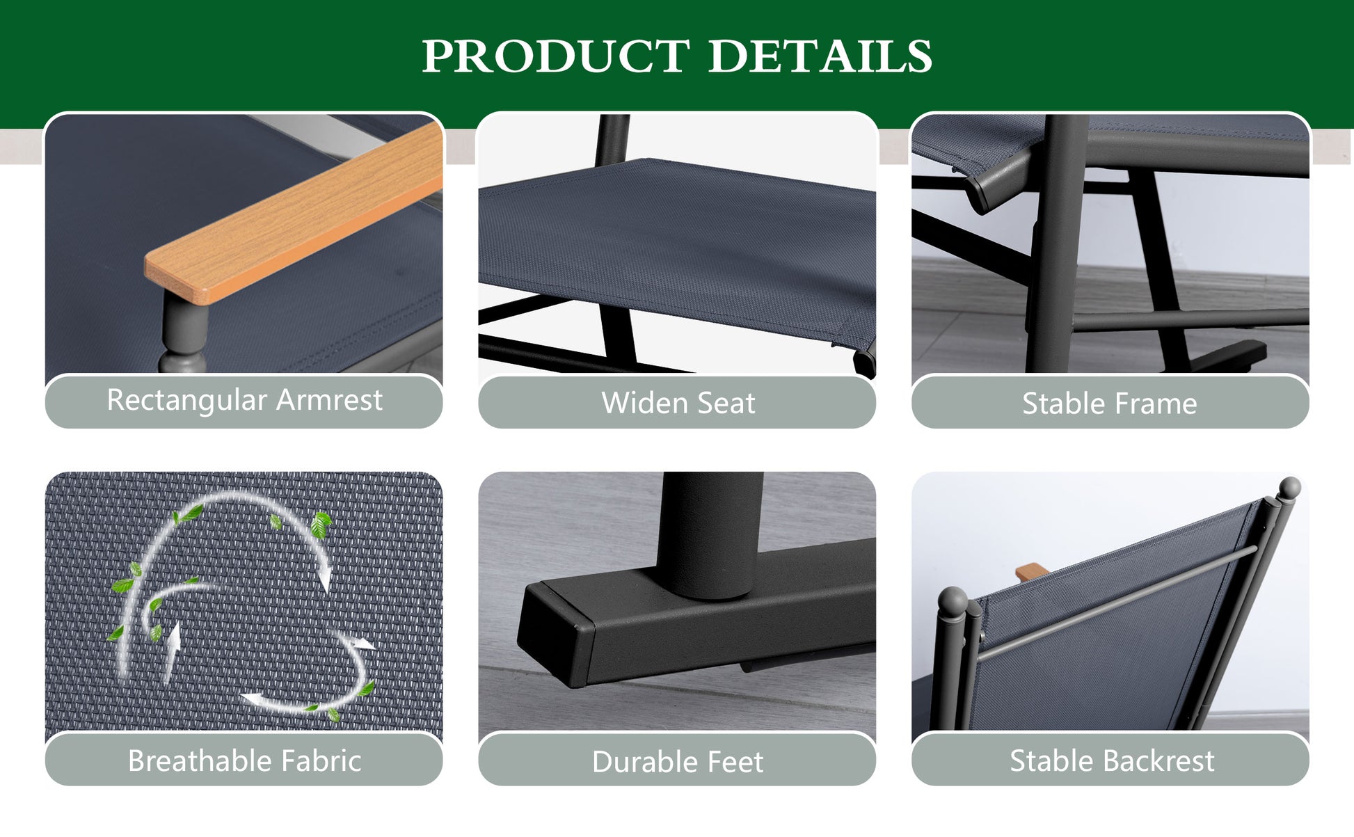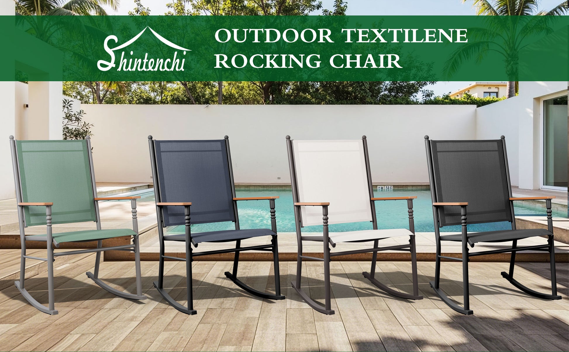 This outdoor rocking chair features a high-quality metal frame, which is durable and has a high load-bearing capacity. The seat and back of this rocking chair are made of all-weather breathable fabric. This patio rocking chair has armrests to provide support for your arms. The metal rocking chair with armrests is easy to move. The arc of this garden rocking chair has been tested many times to provide a smooth rocking rhythm, ensuring safety while maximizing body relaxation. The rocking design of this chair helps you sit more comfortably, and you can relax and chat with friends on it. This outdoor rocking chairs for porch has a wide seat that fits most body types. This metal rocking chair is perfect for patios, porches, gardens, swimming pools, lawns, patios, etc.