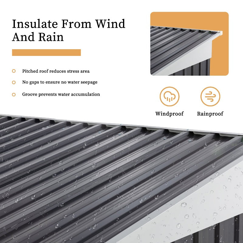 - Multi-Application Outdoor Shed: The metal shed can be used as storage for your garden and backyard, which can better store your tools. You can use this storage shed as a pet house, which can offer a safer and warmer room for pets. This storage shed will satisfy your different requirements in the backyard.