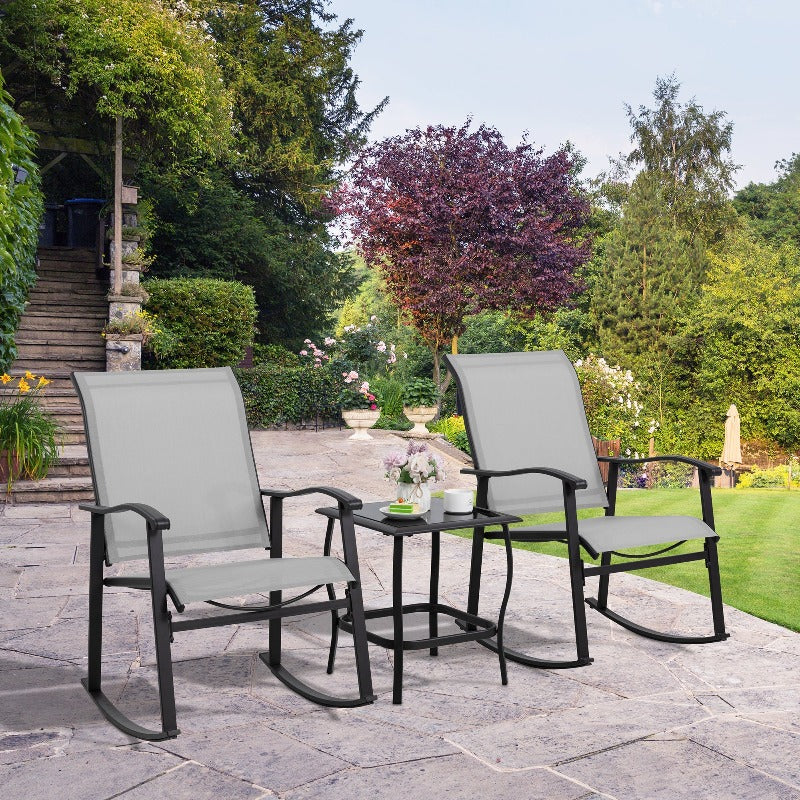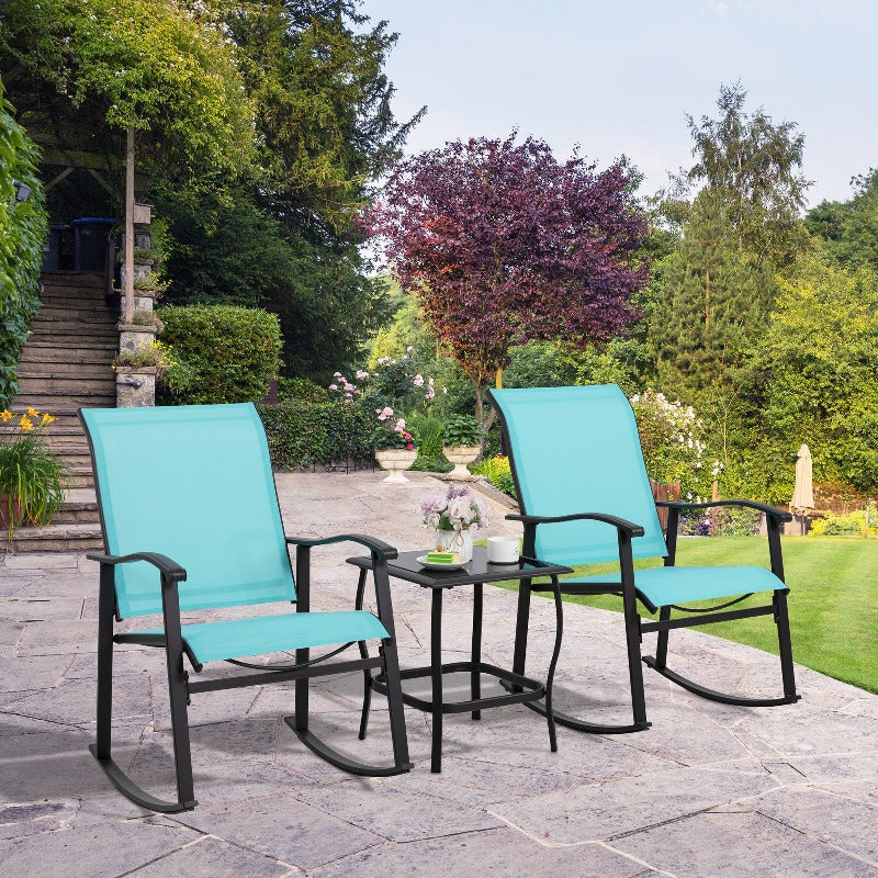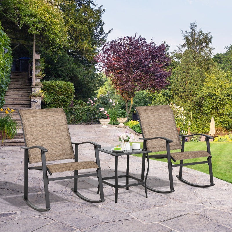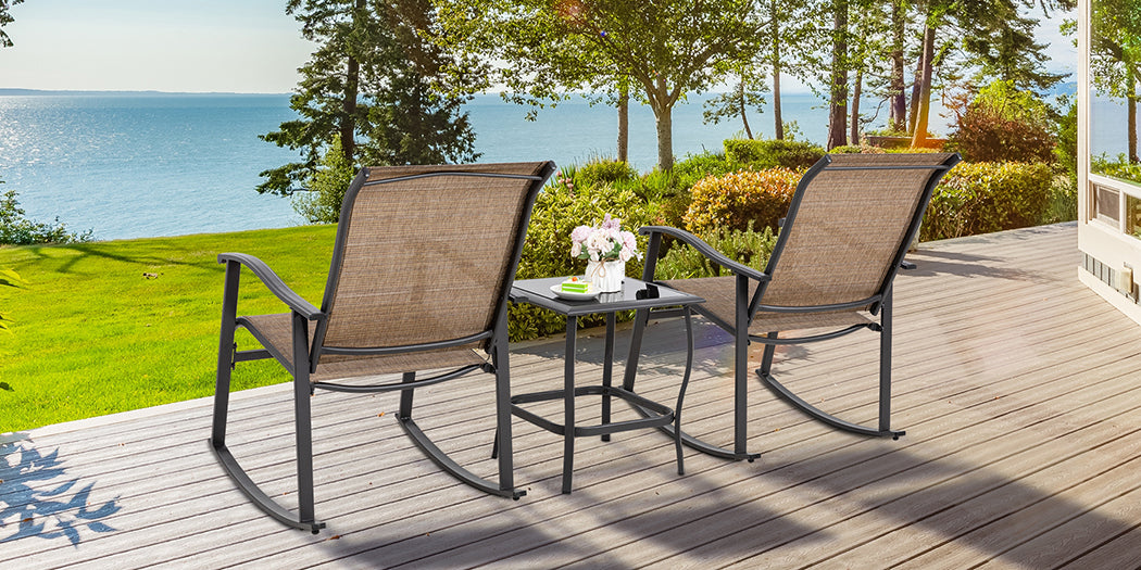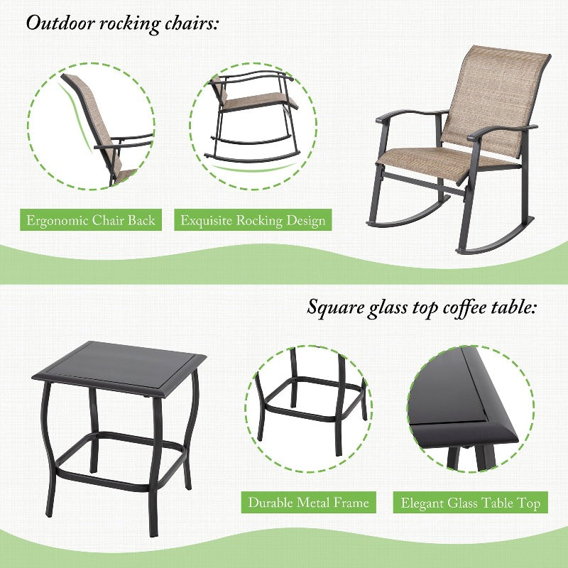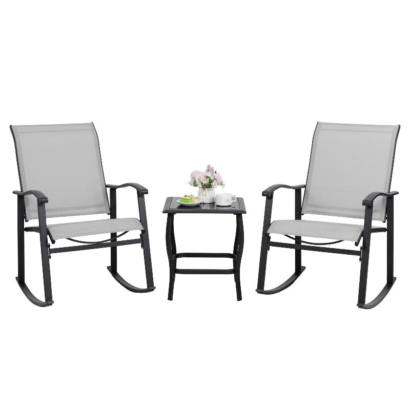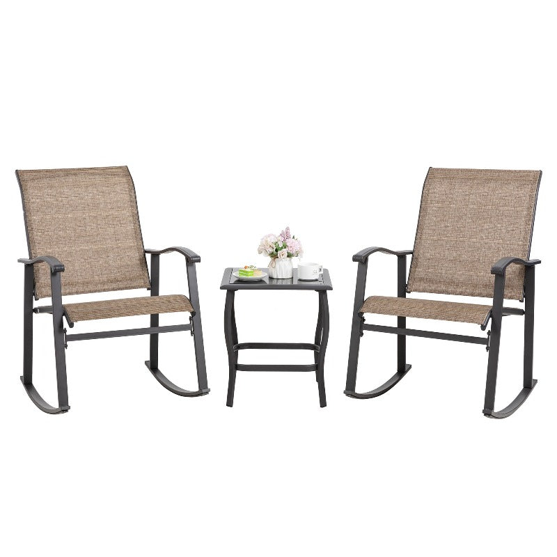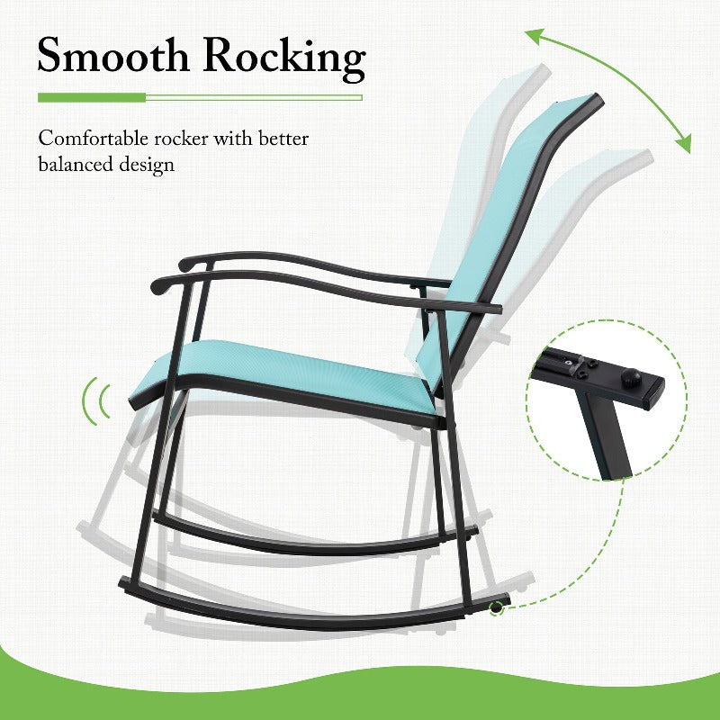 Walsunny Patio Furniture 3 Pieces Textilene Outdoor Bistro Rocking Chair Set