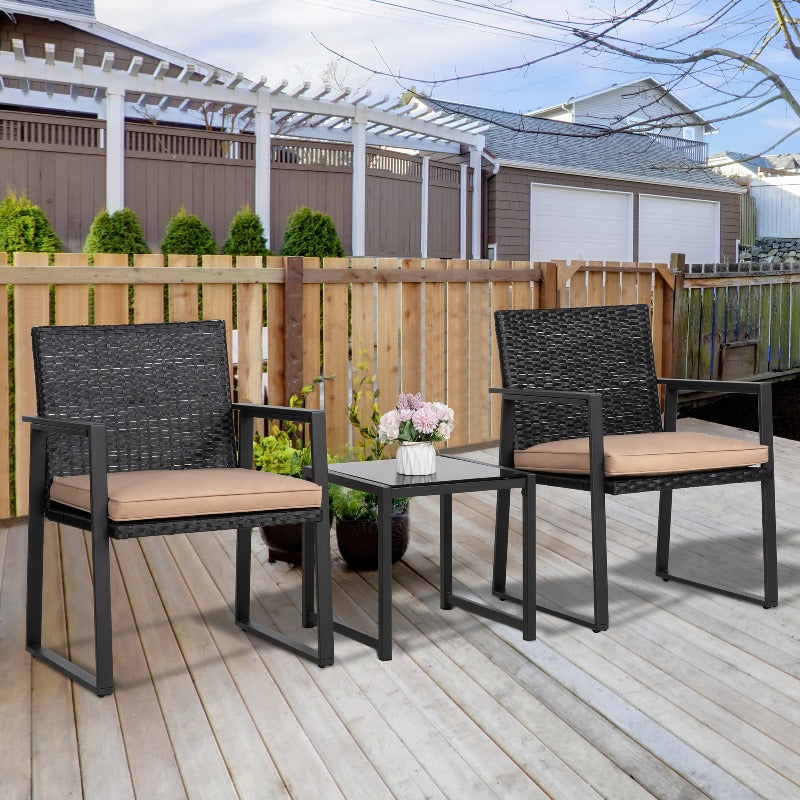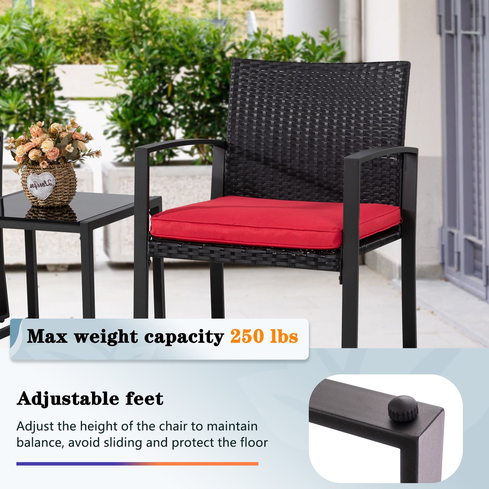 Walsunny Patio Furniture 3 Pieces Wicker Outdoor Bistro Chairs Set