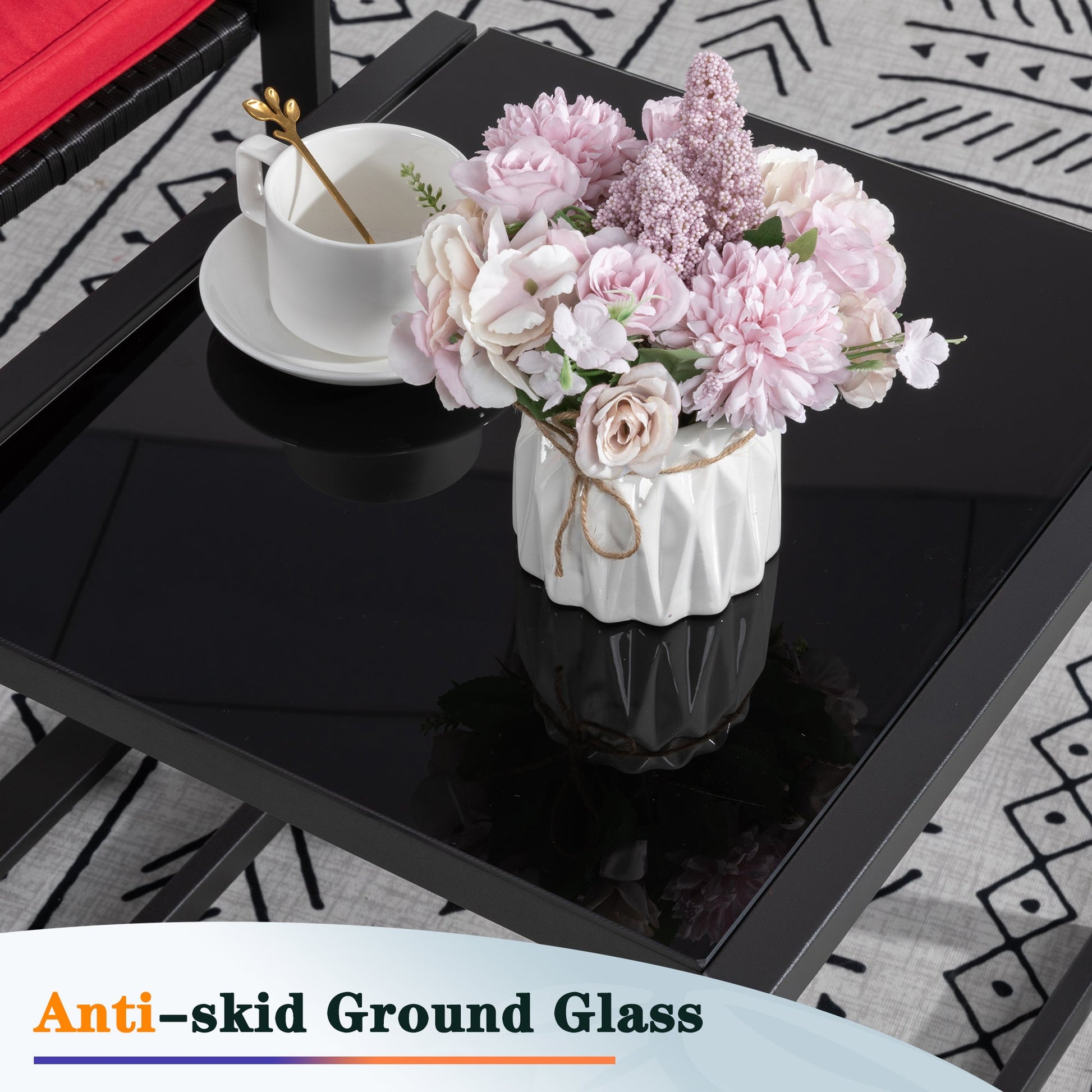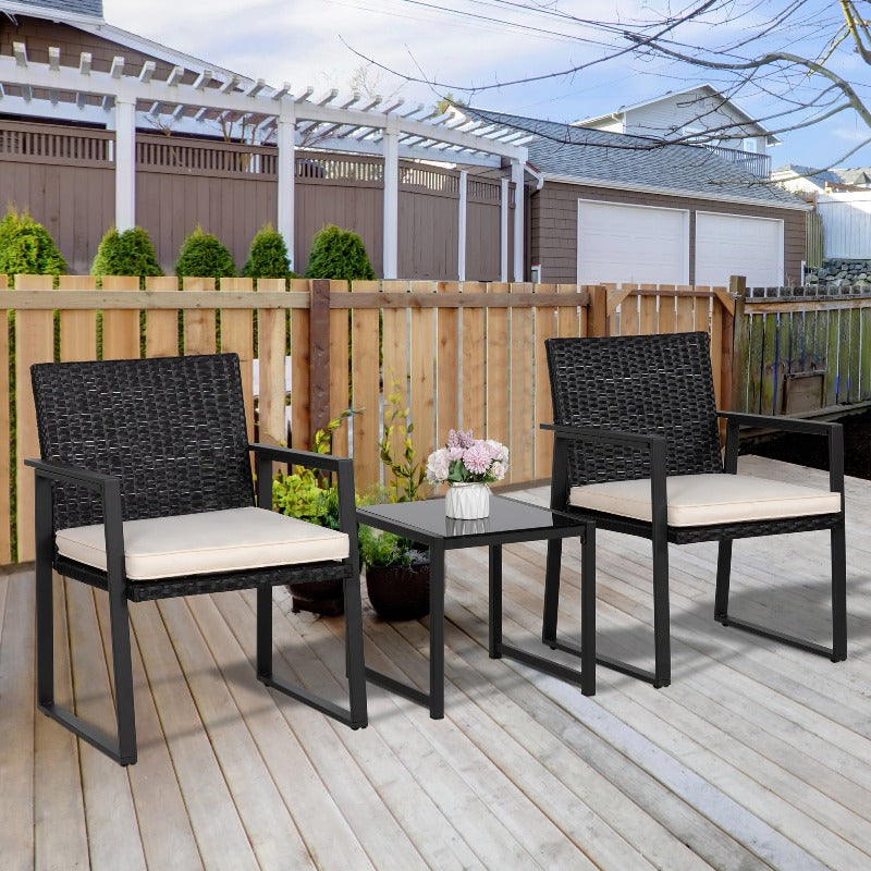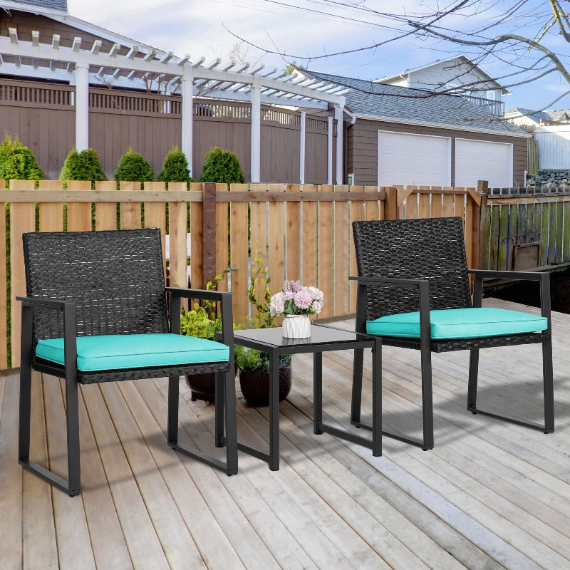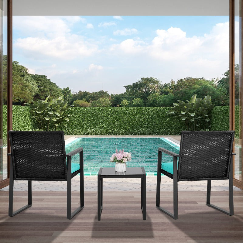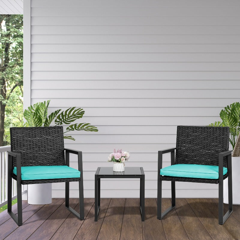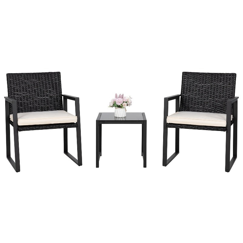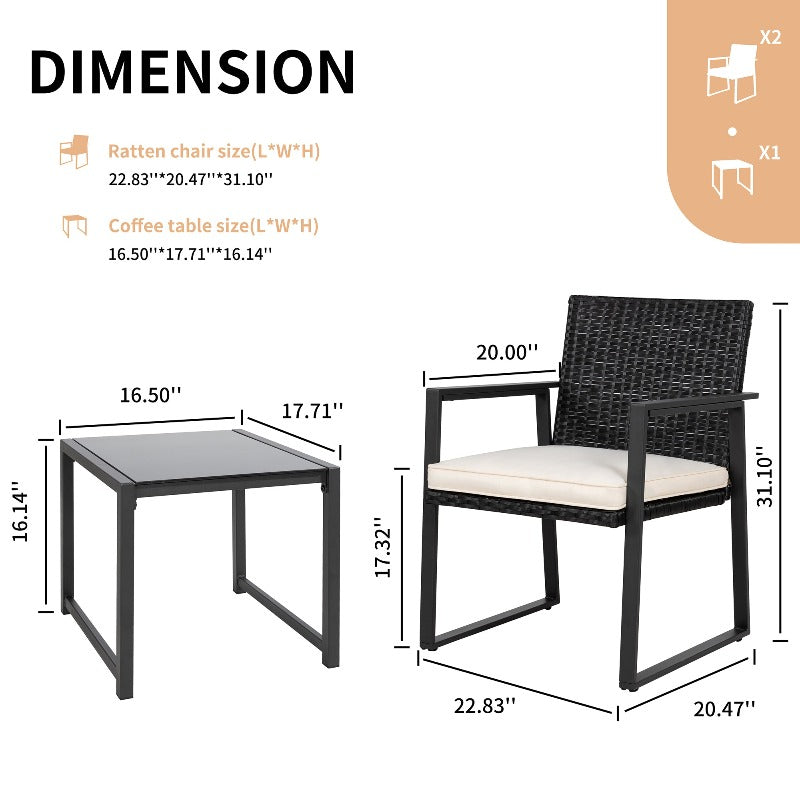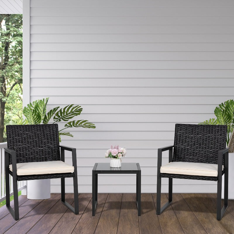 Walsunny patio bistro set Create a beautiful outdoor seating area that you have always dreamed of with this Patio Bistro Set from Walsunny. Constructed from a light weight steel frame and hand woven from the pe black resin wicker fiber meticulously designed to provide you with the most comfortable and relaxing outdoor lounging experience.