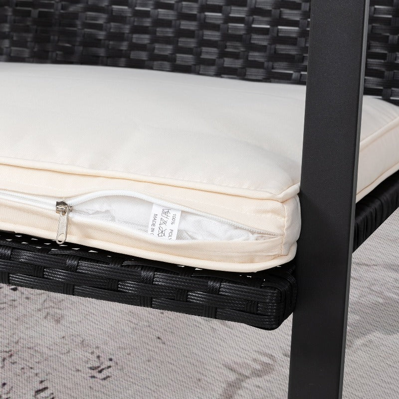 2.Cover or store inside during inclement weather. The wicker frame is weather-resistant, while the cushions are not.