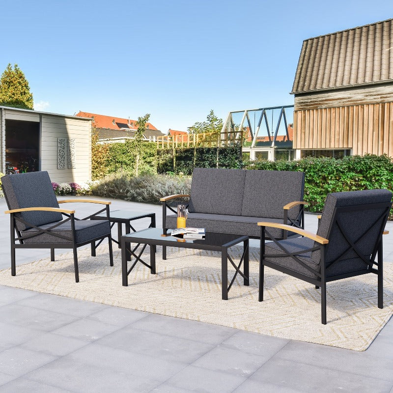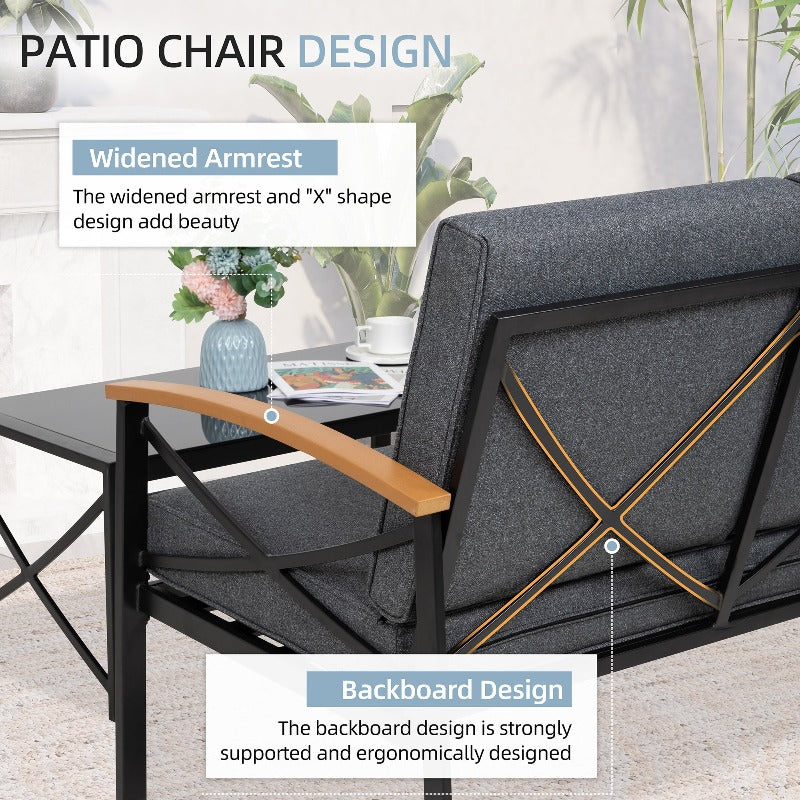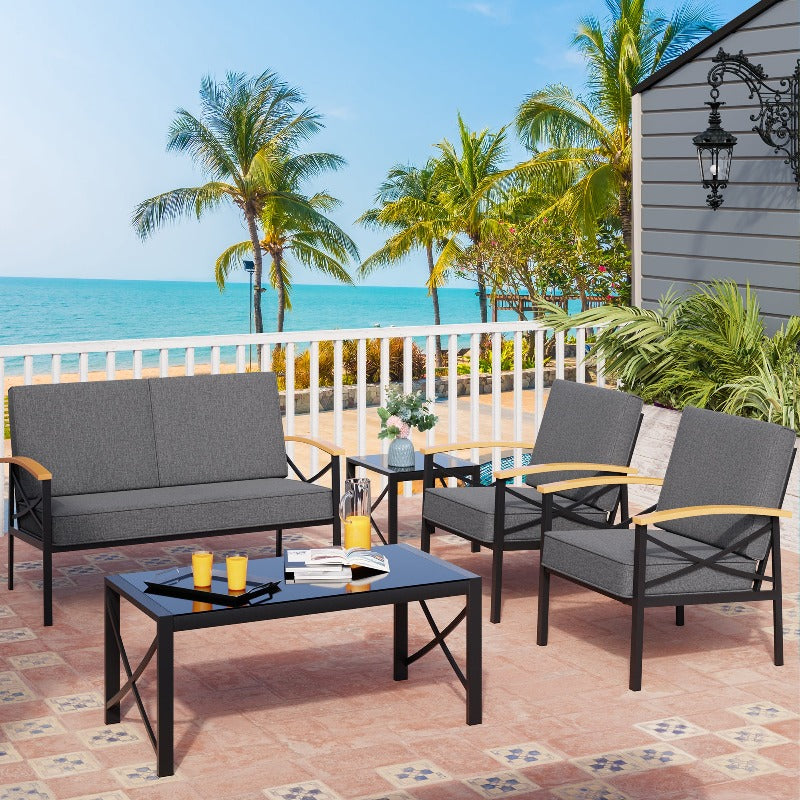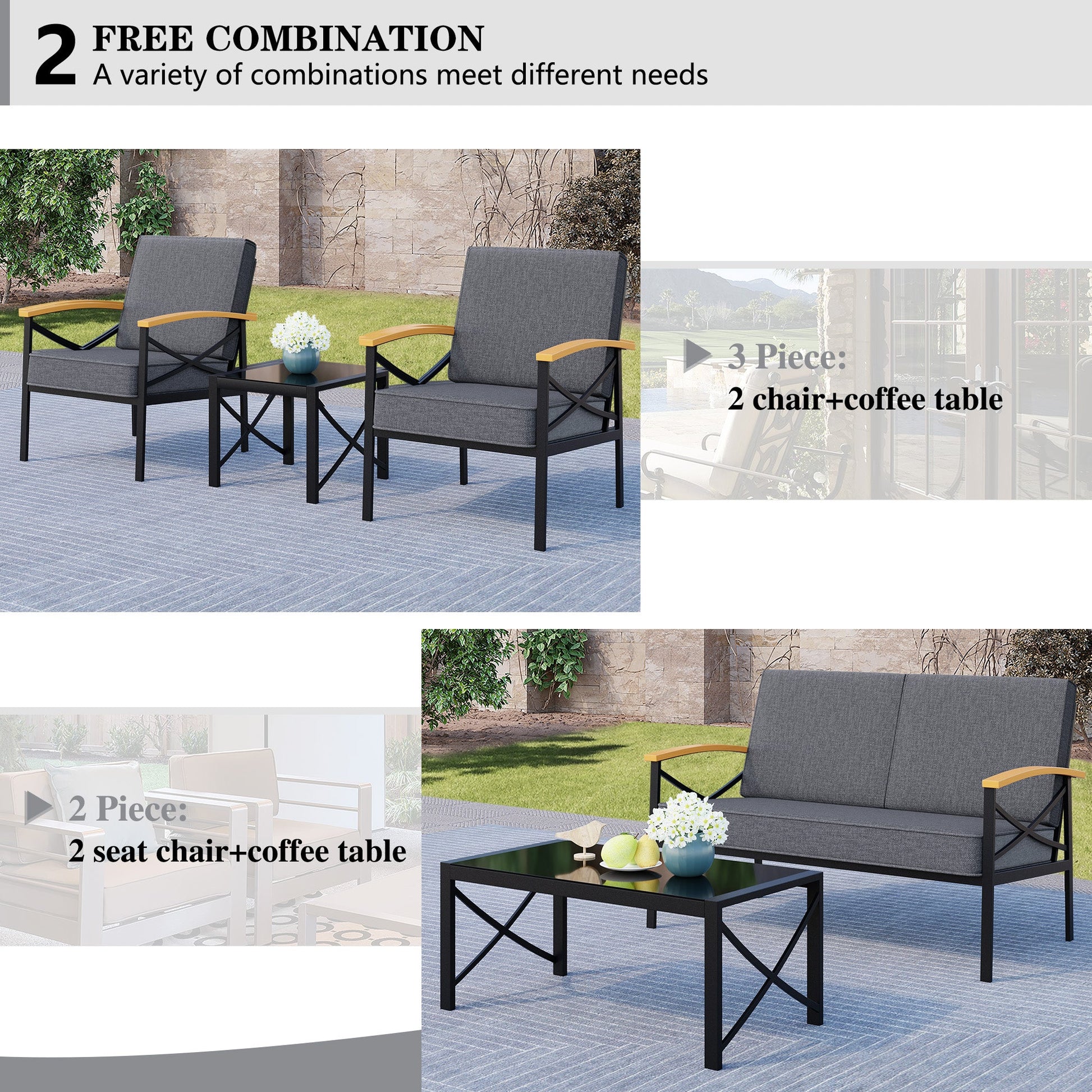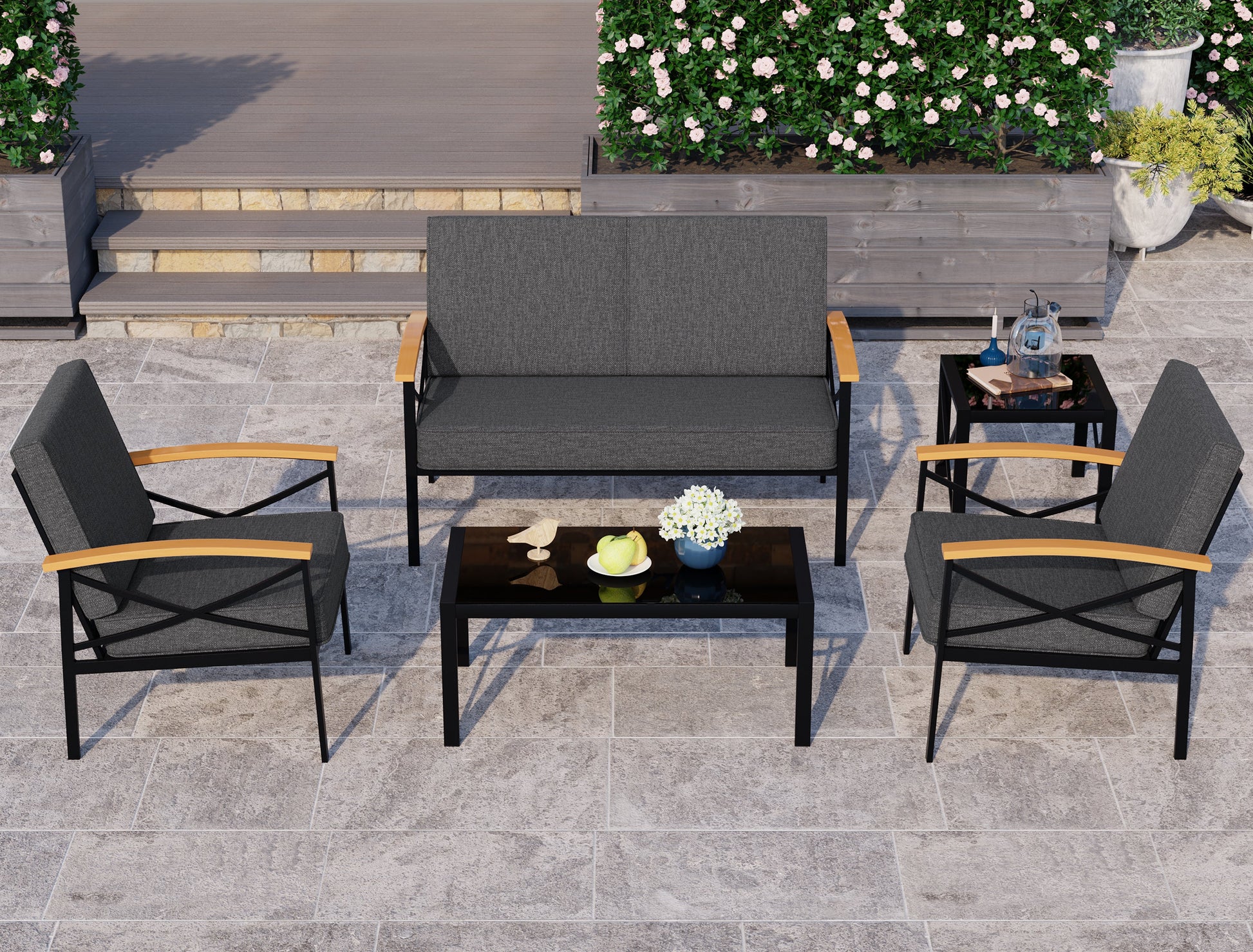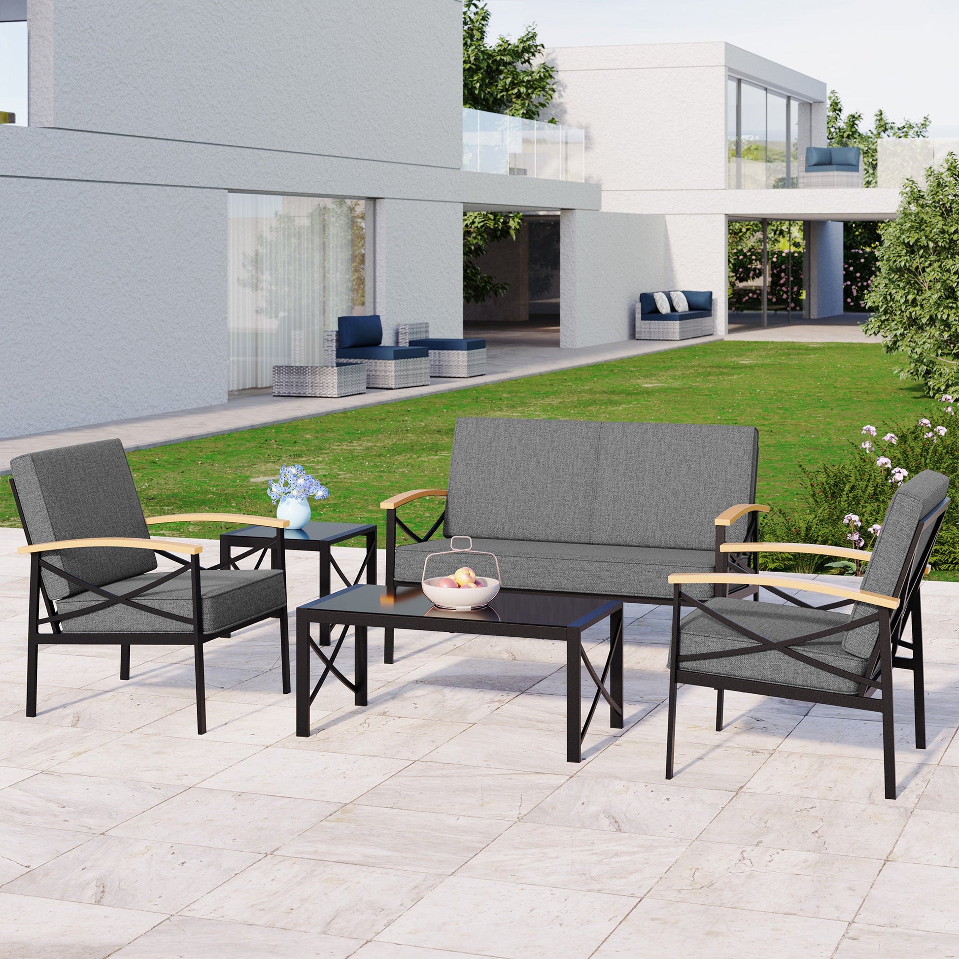 Walsunny Patio Furniture 5 Pieces Outdoor Metal Conversation Sets Chair Sets