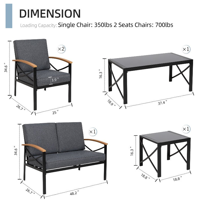 - Single Chair Dimension: 25"(L) x 26.7"(W) x 34.6"(H)