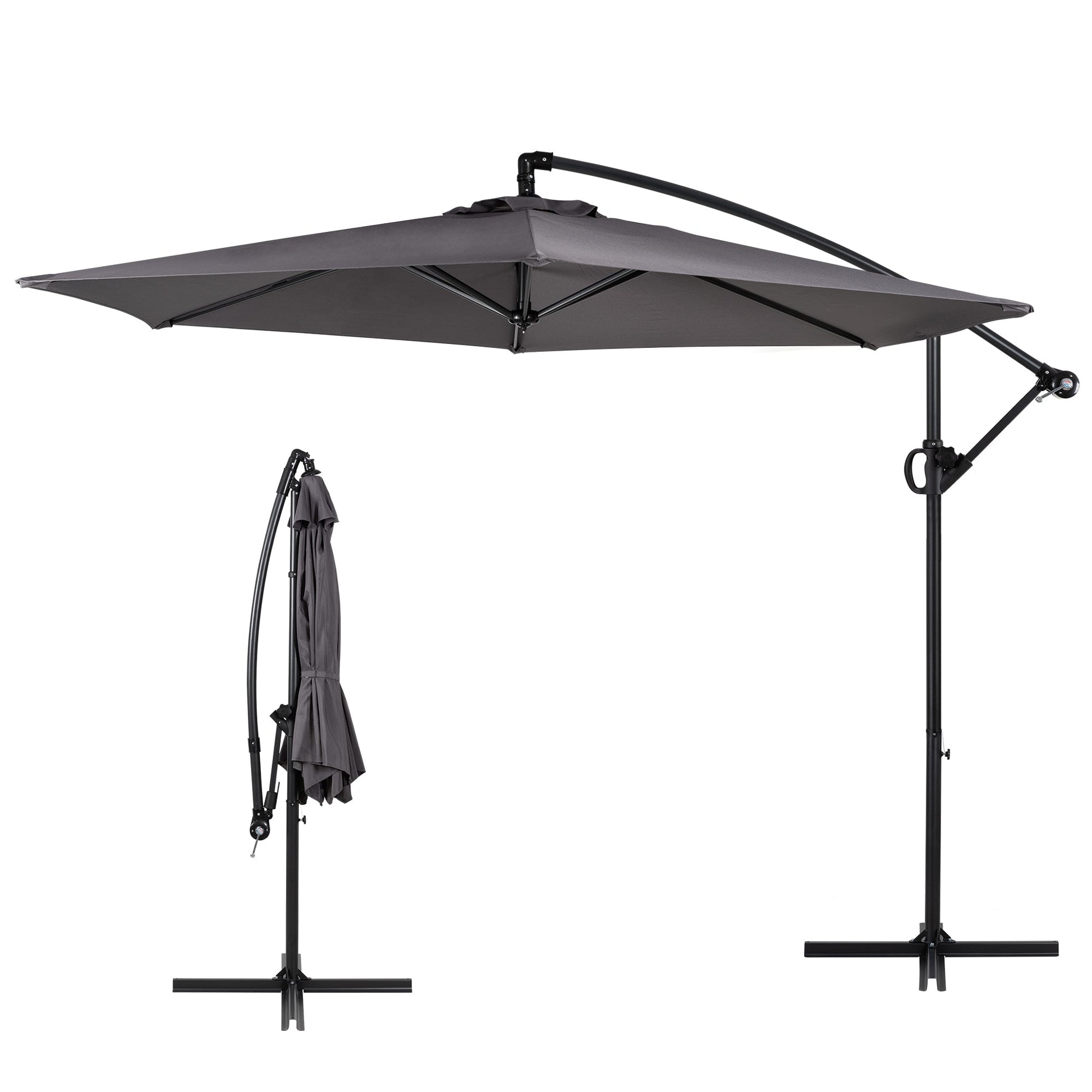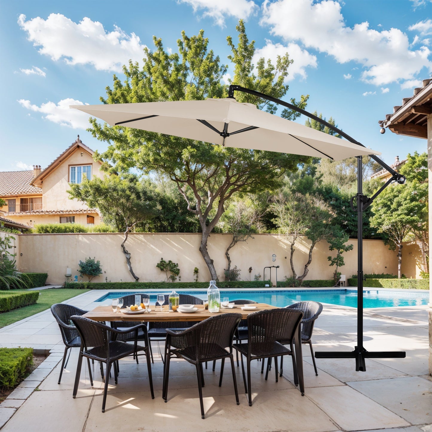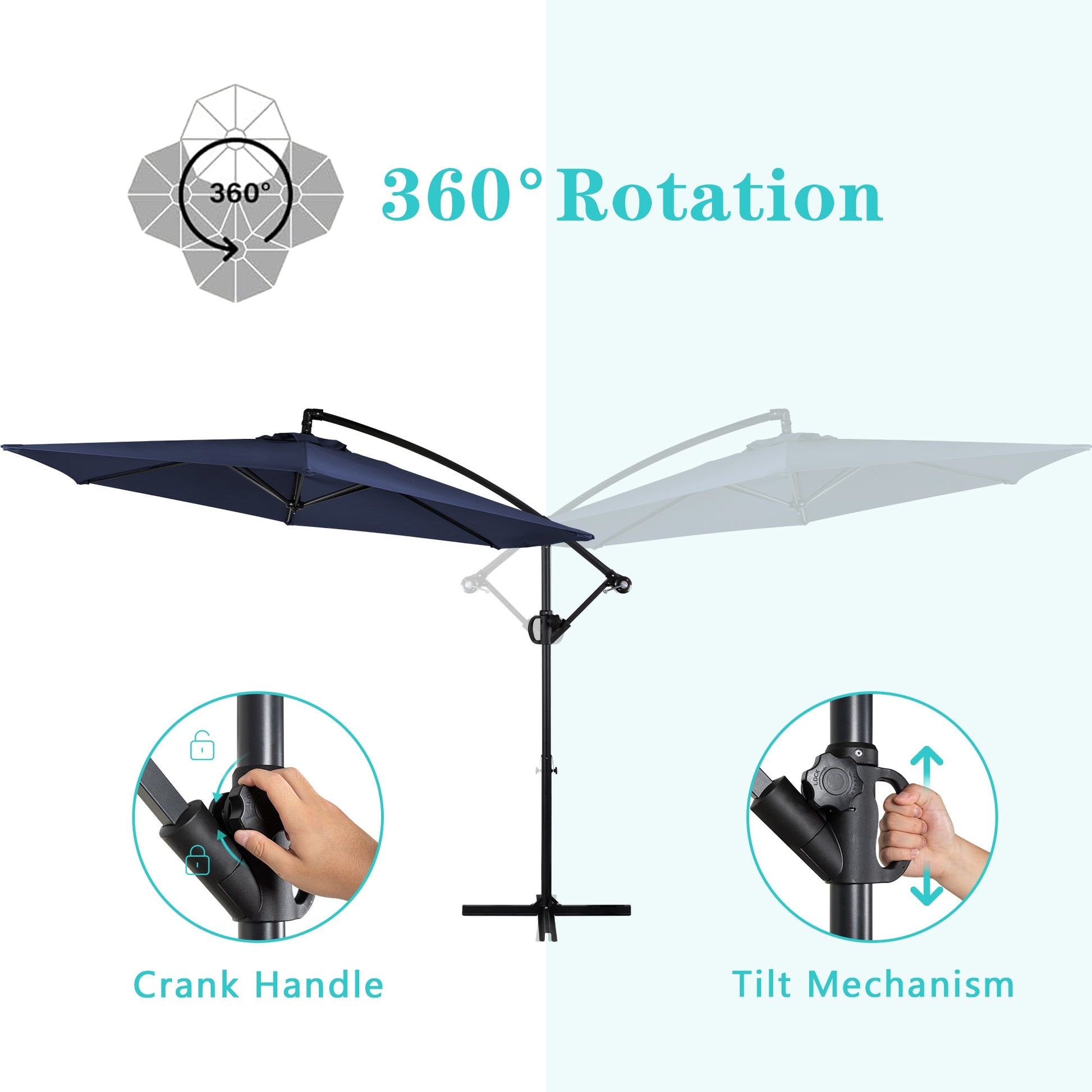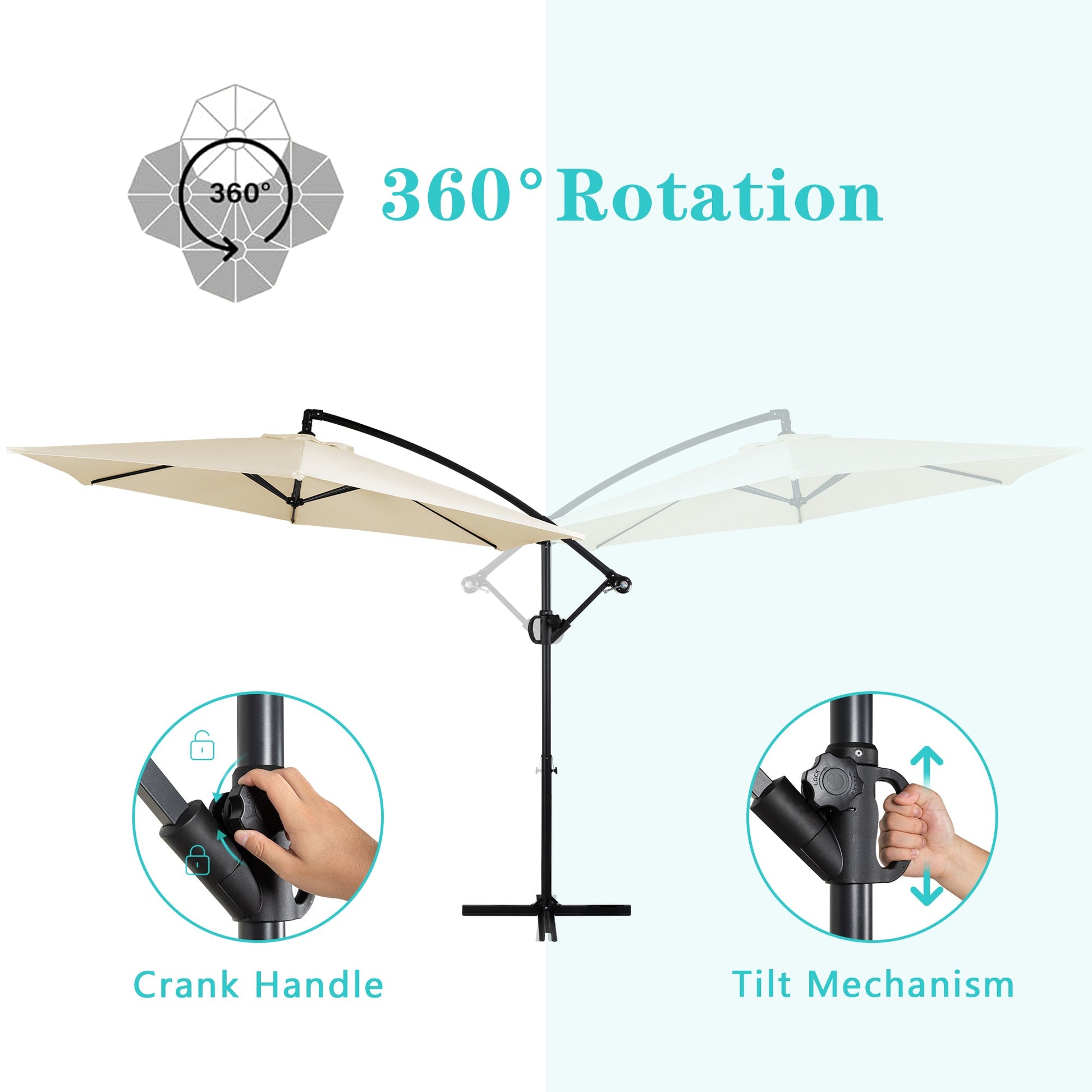 Walsunny 9FT Patio Offset Umbrella Easy Tilt Adjustment,Crank and Cross Base, Outdoor Cantilever Hanging Umbrella with 6 Ribs