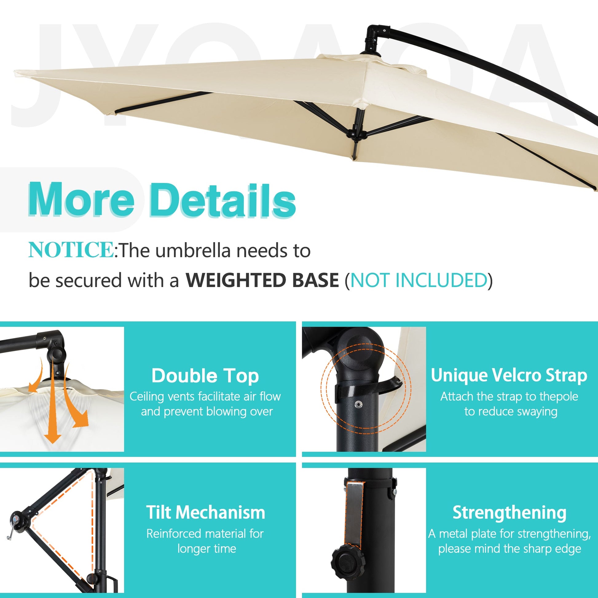 - Perfect Shading:The Offset Umbrella is ideal for both commercial and residential use. The large size will cover more space and keep you cool and comfortable when you are in outdoor. Nice choice for your Lawn, garden and poolside.