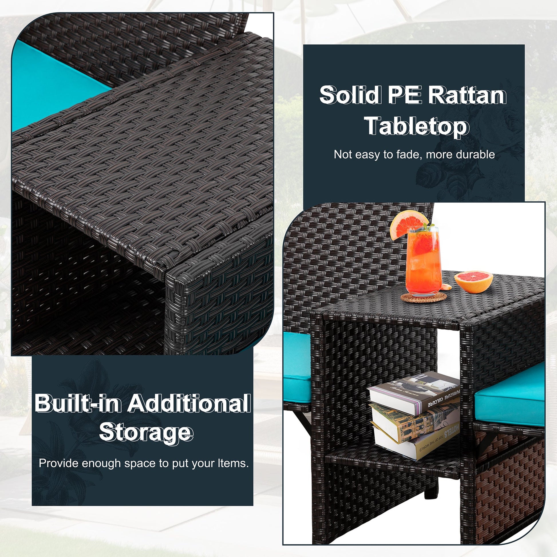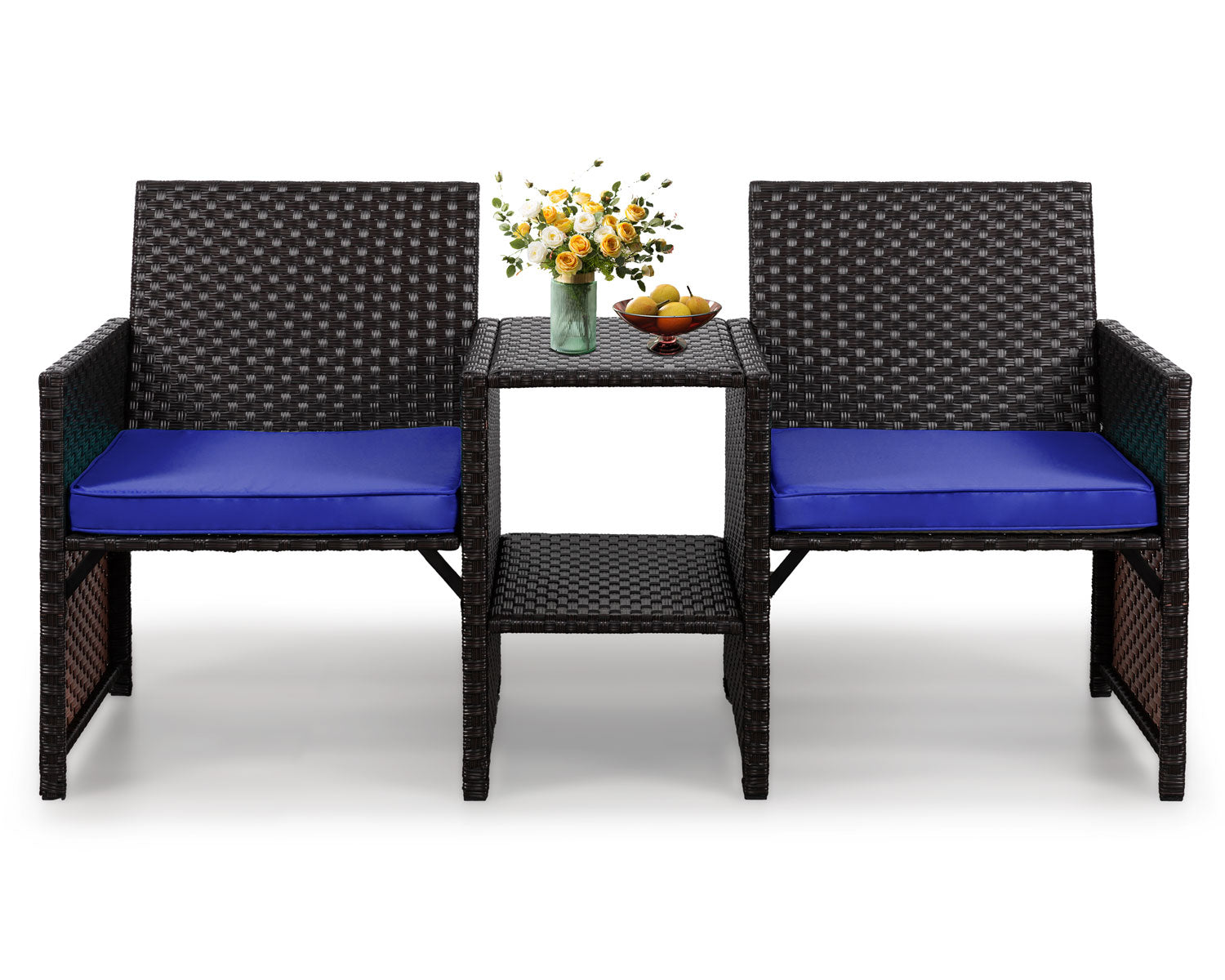 Walsunny Patio Rattan Conversation Set Seat Sofa Cushioned Loveseat Table Chairs Dark Blue