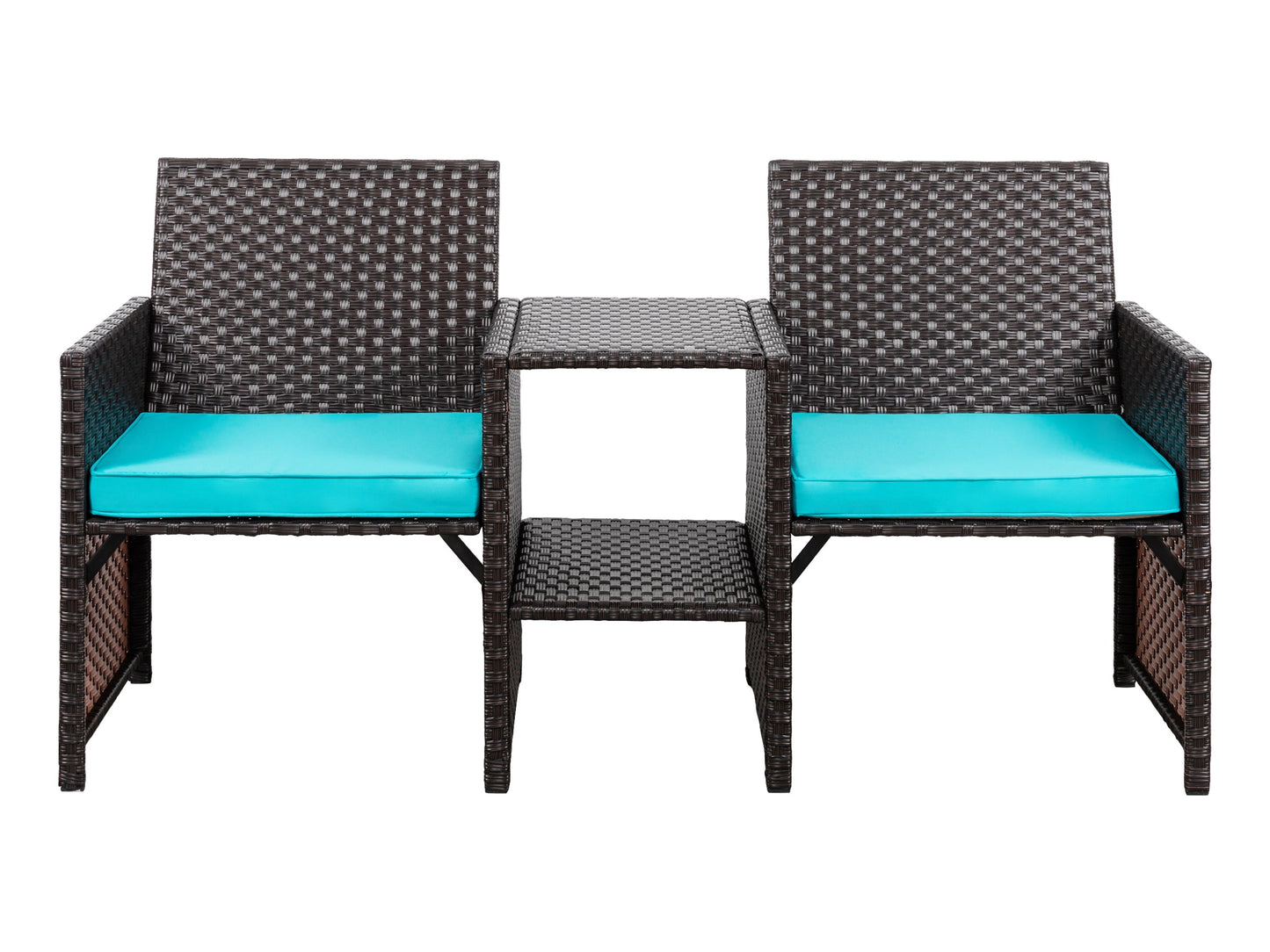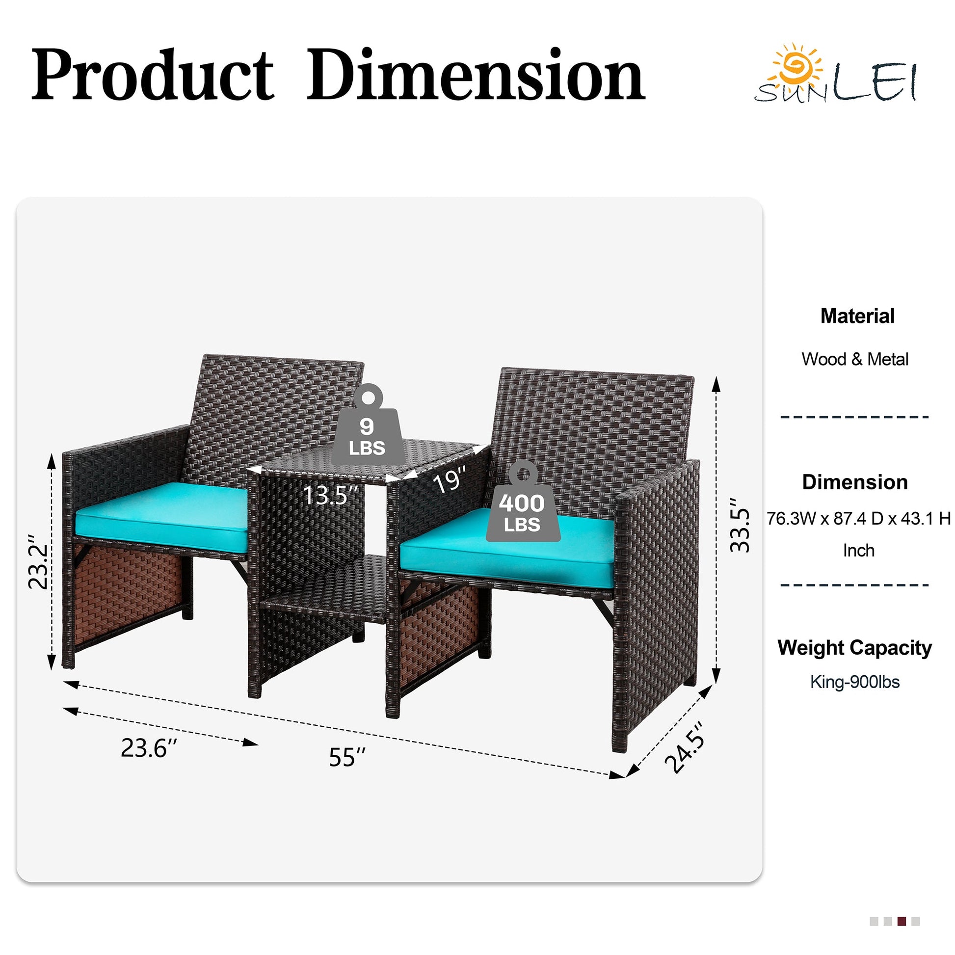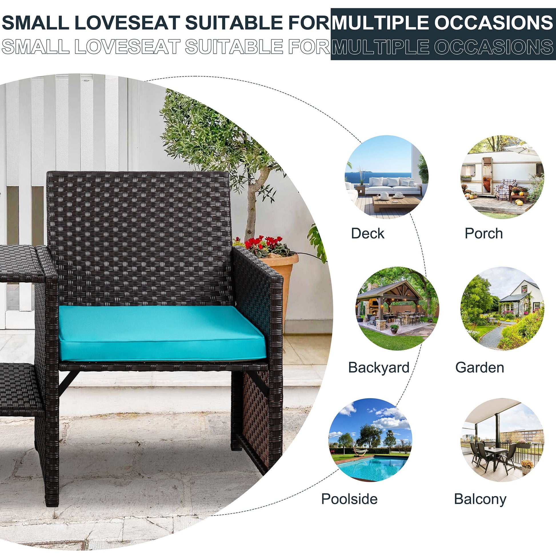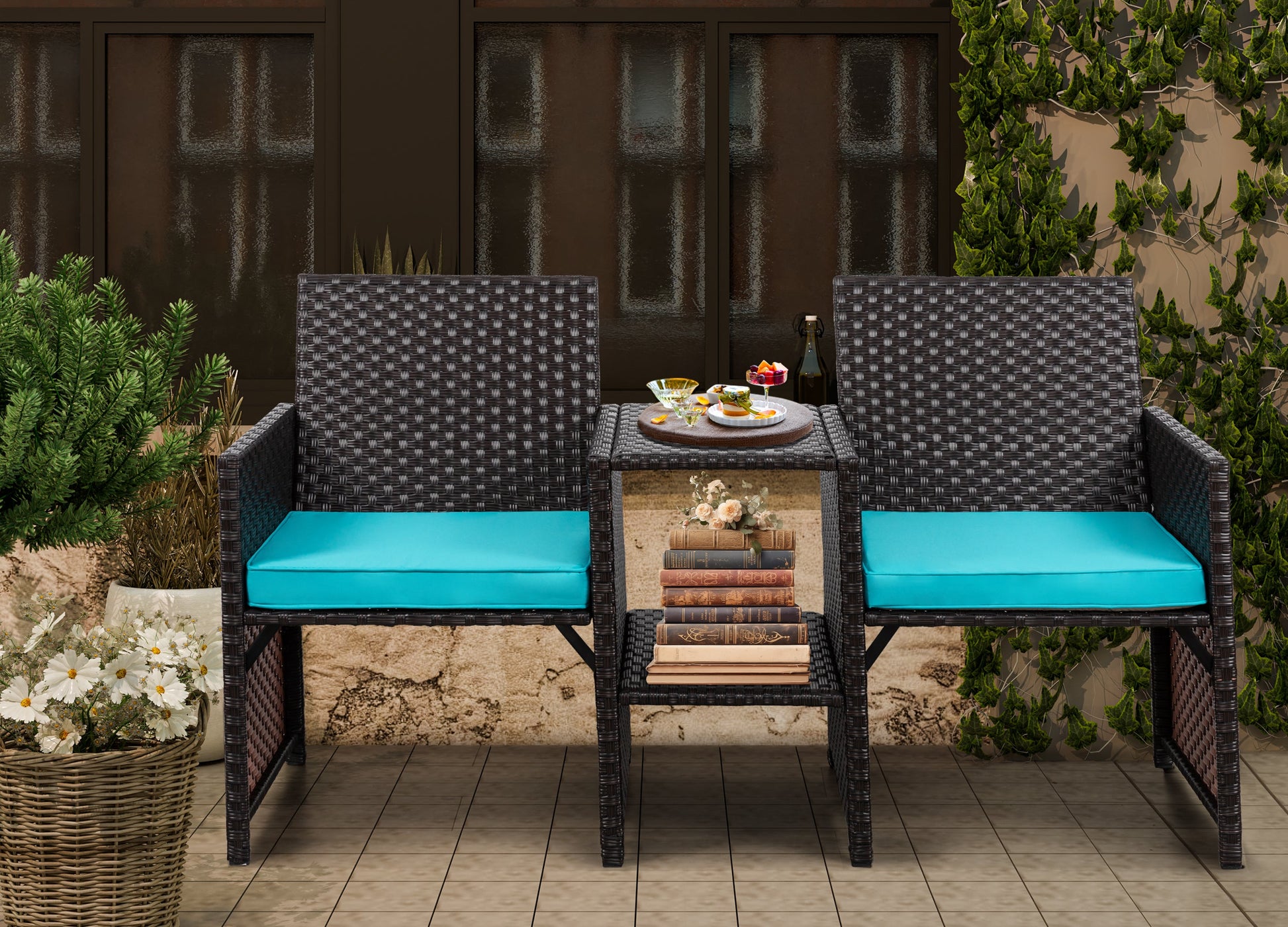 - CONVENIENT CHAT TABLE: Featuring a chat table between two seats, this patio conversation table provides plenty of room for books and cups without taking up floor space.