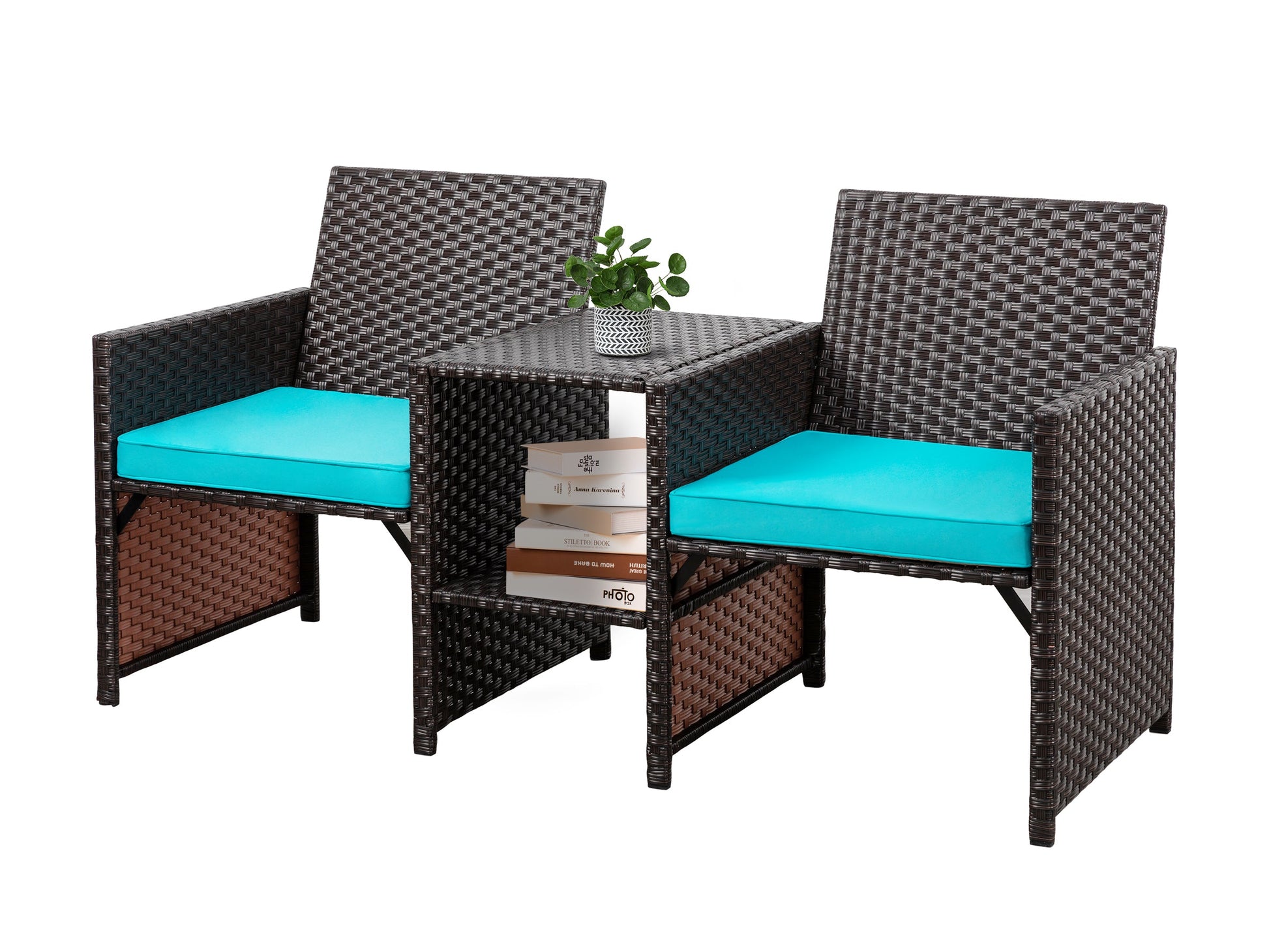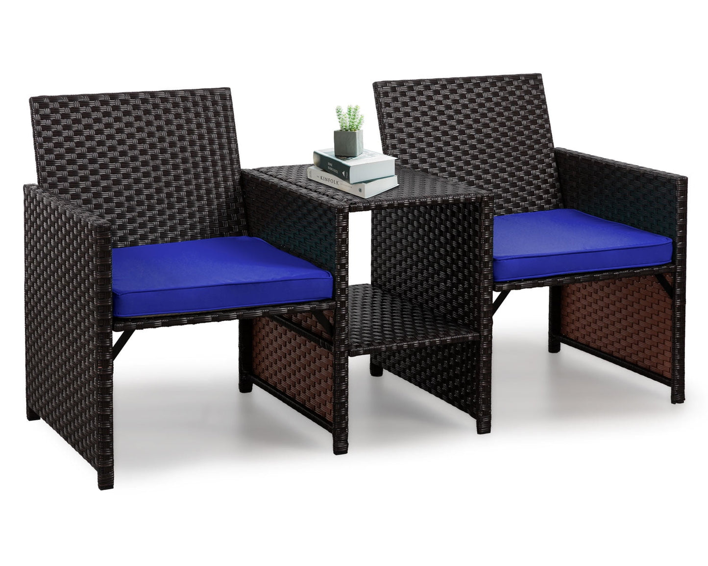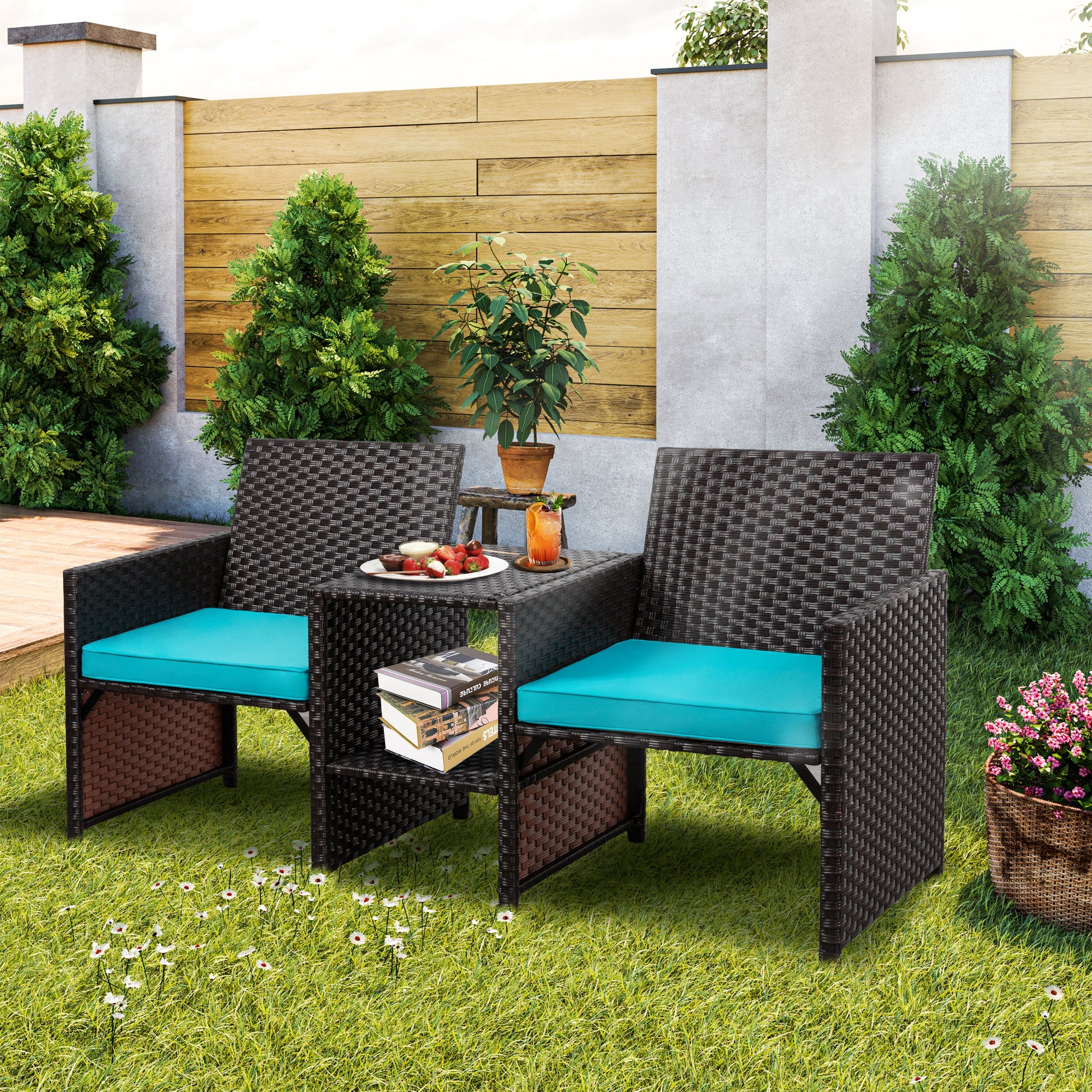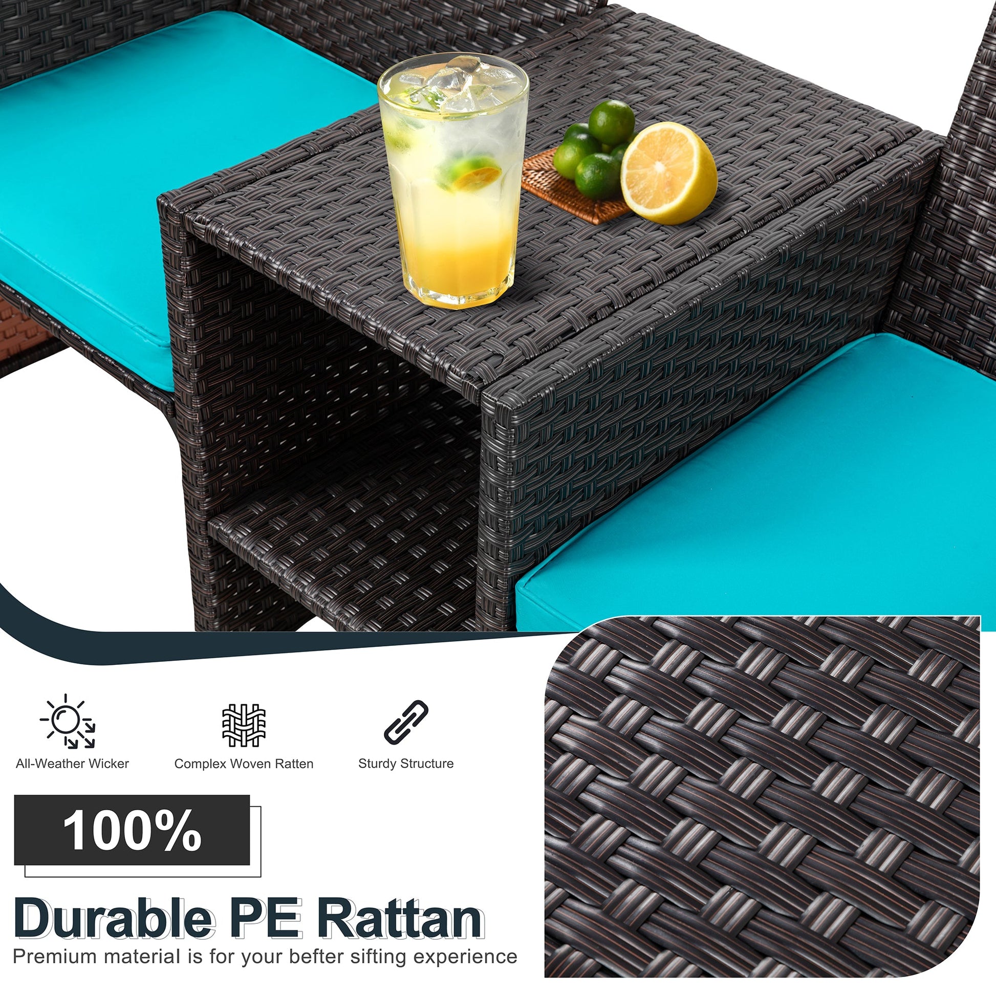 - CONVENIENT CHAT TABLE: Featuring a chat table between two seats, this patio conversation table provides plenty of room for books and cups without taking up floor space.
