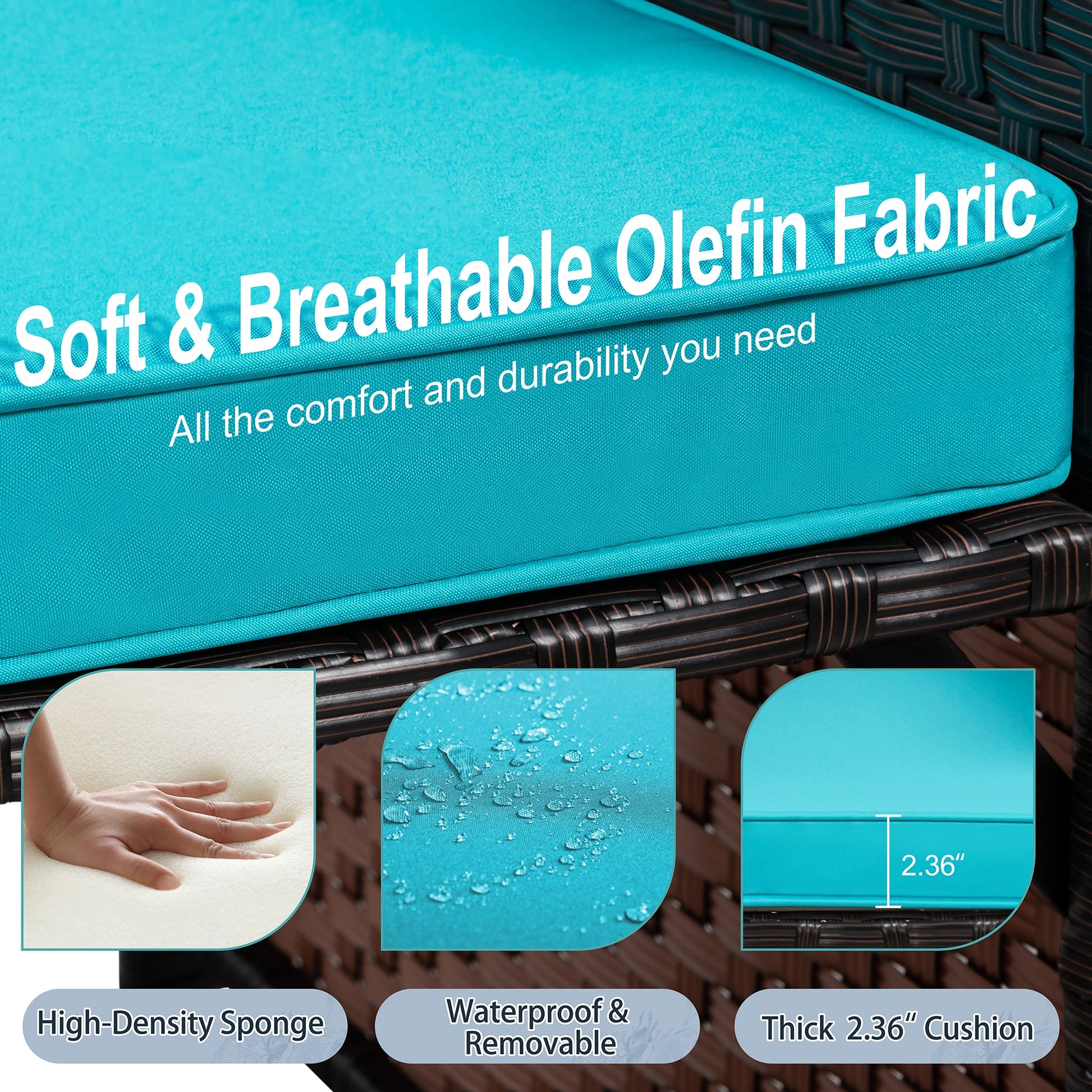 - COMFORTABLE AND SOFT SEAT Cushions: This patio talk set comes with two super comfortable seat cushions that are comfy and soft. Additionally, this zipper cushion is filled with high-density sponge and covered with high-quality polyester fiber for optimal comfort and relaxation. For easy cleaning, the cover is removable and washable.
