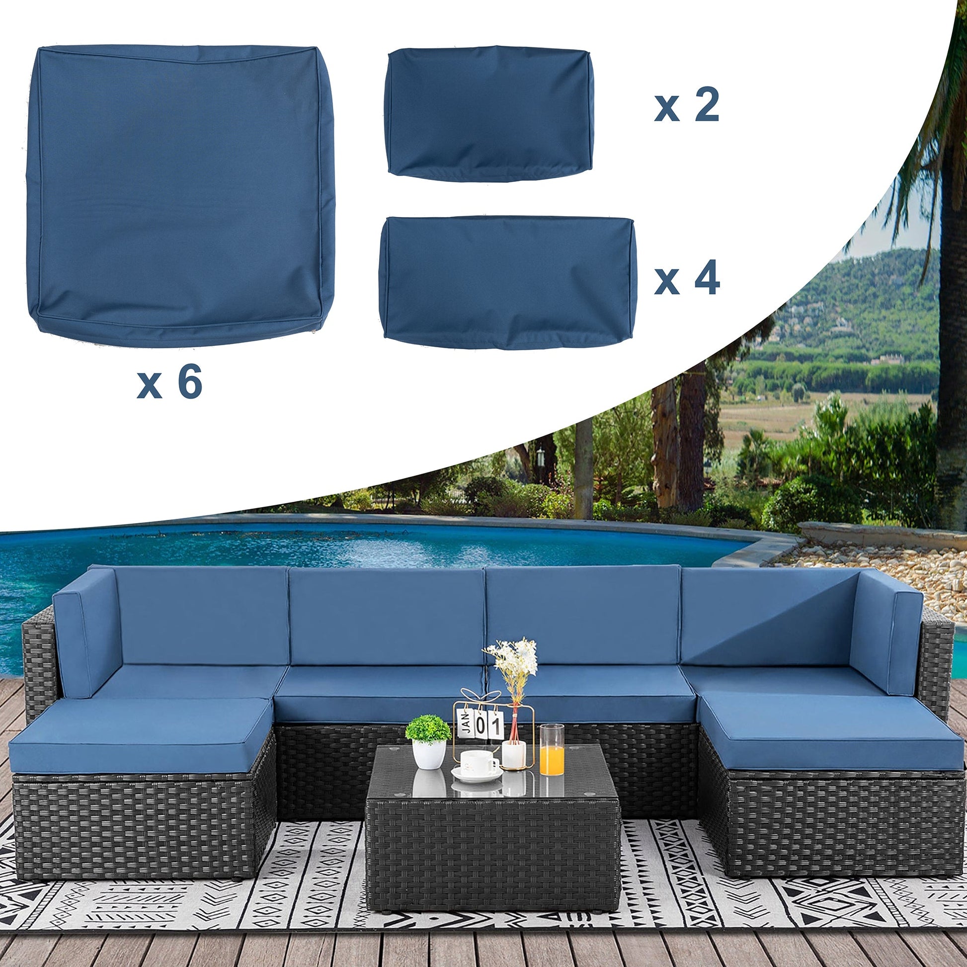 Walsunny Replacement Covers For 7 Pieces Outdoor Sectional Sofa Set